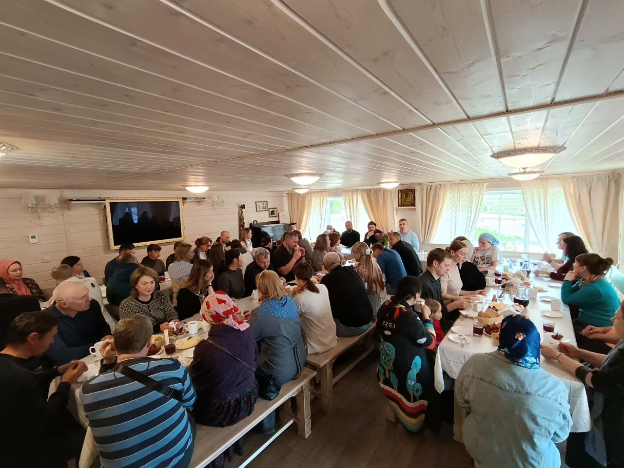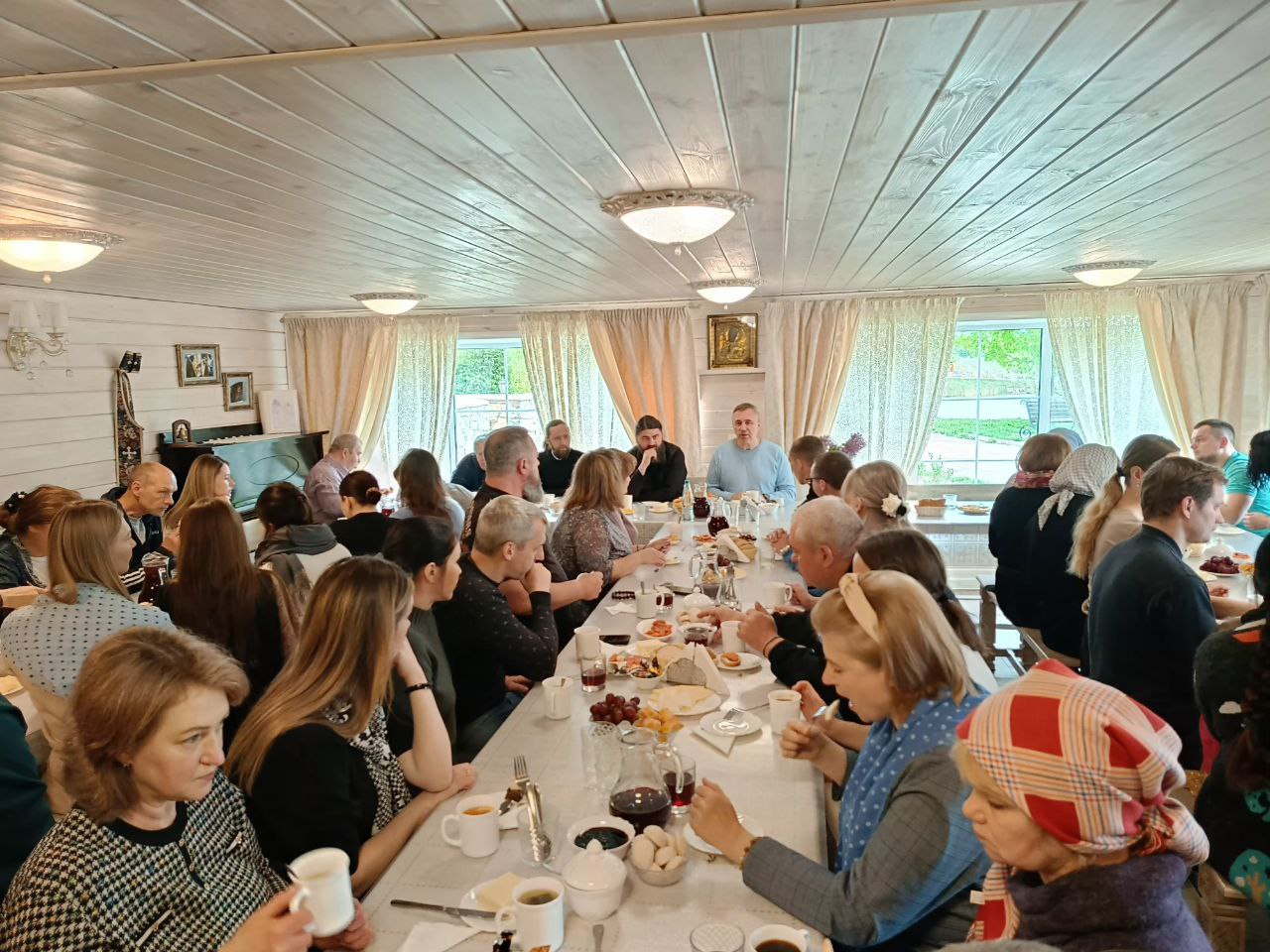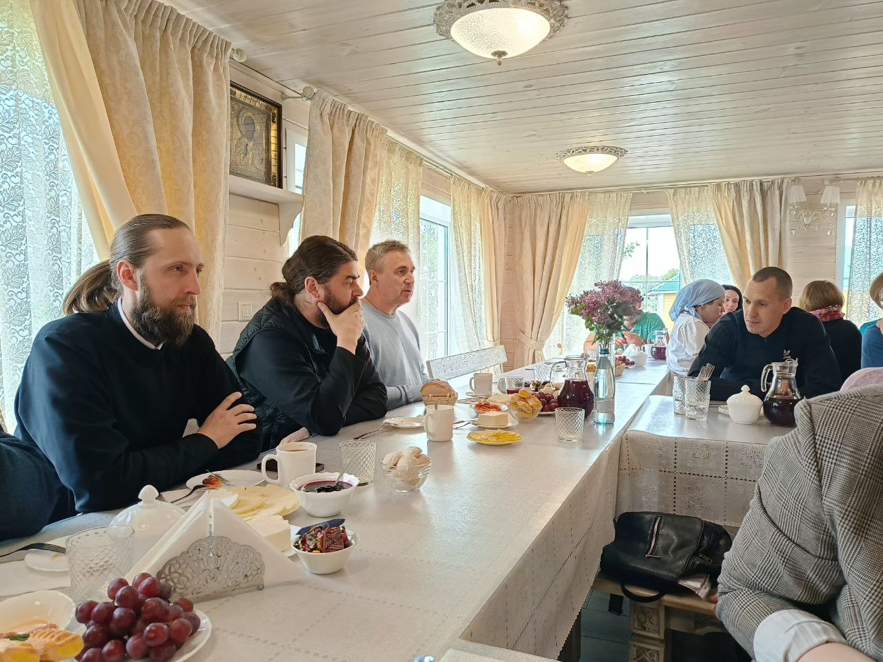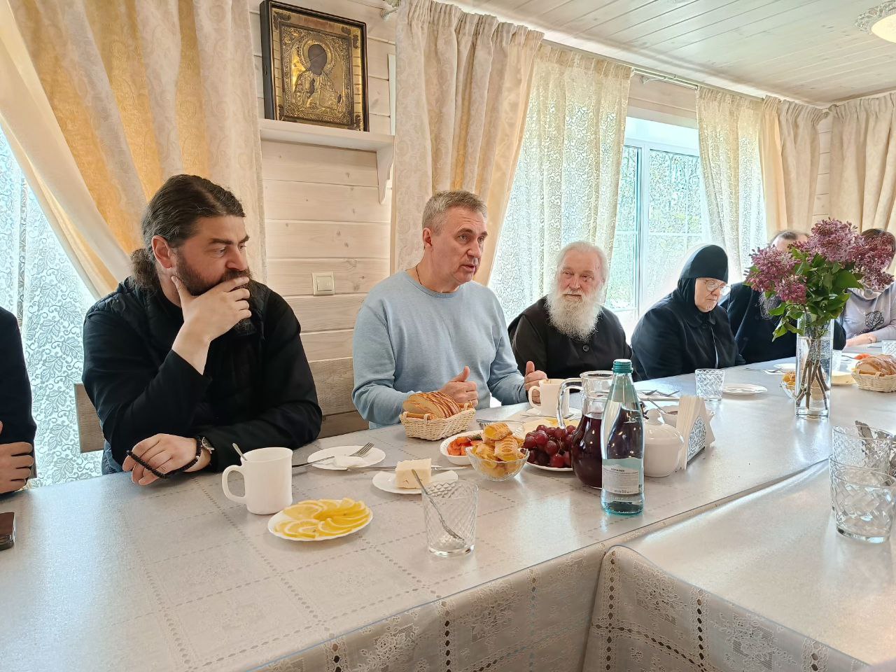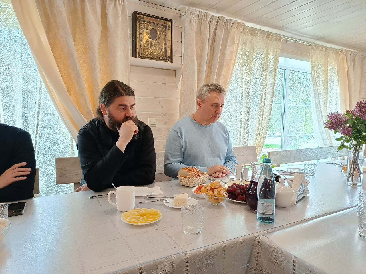 30 апреля в Губино прошла интереснейшая встреча гостей и жителей села с доктором Вячеславом Владимировичем Боровских директором православного центра медико-социальной реабилитации «Подвижник». На встрече присутствовали духовник Козельской епархии иеромонах Тихон (Клинов) и другие представители Козельской епархии. В беседе поднимались вопросы семьи, воспитания детей, а также самые важные вопросы современности СВО и будущее России. За чаепитием в теплой дружеской атмосфере доктор Вячеслав Владимирович делился мнением о мире сегодня, о работе своей клинике в Екатеринбурге, о современной молодёжи. Также поделился своим впечатлением о селе Губино, заметил, что такие проекты очень важны в России сейчас. В завершении встречи Вячеслав Владимирович подарил свою книгу в библиотеку гостевого дома в Губино.