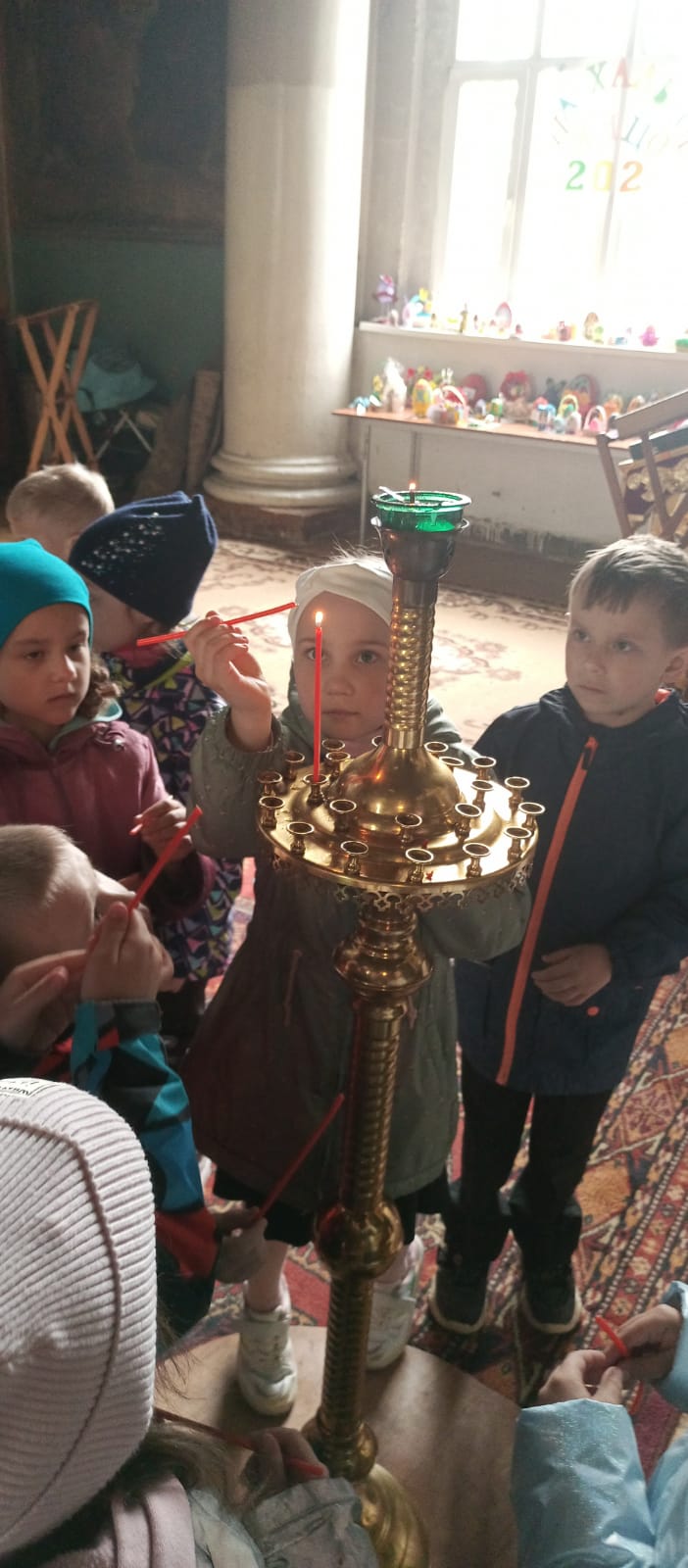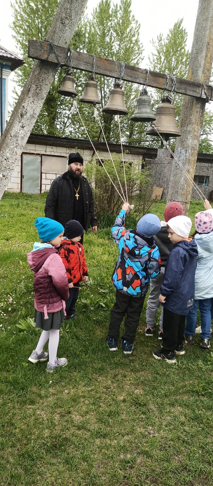 5 мая подготовительная группа детского сада «Солнышко» посетила храм Воскресения Христова в селе Ульяново. Встретил детишек настоятель храма протоиерей Максим Садовников и рассказал им о том, как, и для чего, нужно посещать храм. Священник показал и рассказывал о внутреннем убранстве храма, алтаре, иконостасе, Распятии, иконах и подсвечниках. Ребята поставили свечи перед иконами Спасителя с детьми, Николая Чудотворца, других святых, а также о упокоении погибших воинов и почивших сродников. Особенно интересно было посмотреть выставку ‘Пасхальное Яйцо 2023’, кто-то увидел свою работу, а кто-то очень заинтересовался другими. В конце экскурсии все дети звонили в колокола, и возвращались в садик радостные и под впечатлением посещения храма.
