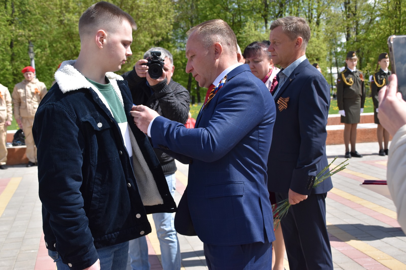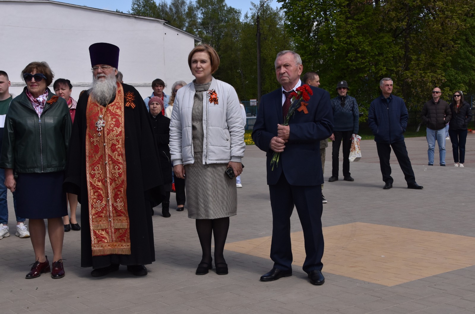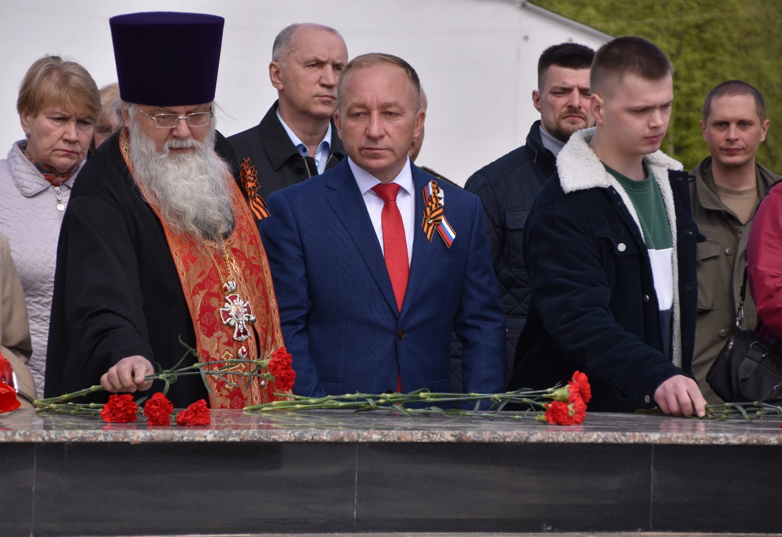 На торжественном мероприятии присутствовали благочинный Людиновского округа Козельской епархии настоятель Казанского собора города Людиново протоиерей Алексий Жиганов, глава администрации «город Людиново и Людиновский район» Дмитрий Сергеевич Удалов, глава района «Город Людиново и Людиновский район» Любовь Васильевна Гончарова, ветеран Великой Отечественной войны Мария Матвеевна Власенкова, официальные лица администрации, депутаты, родные погибших в СВО воинов, жители города.