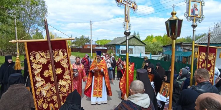 В Неделю 4-ю по Пасхе о расслабленном, 7 мая 2023 года, после воскресной Божественной литургии в женском монастыре Успенская Феклина пустынь, состоялся пасхальный крестный ход по улице Центральной деревни Сенино-Первое.