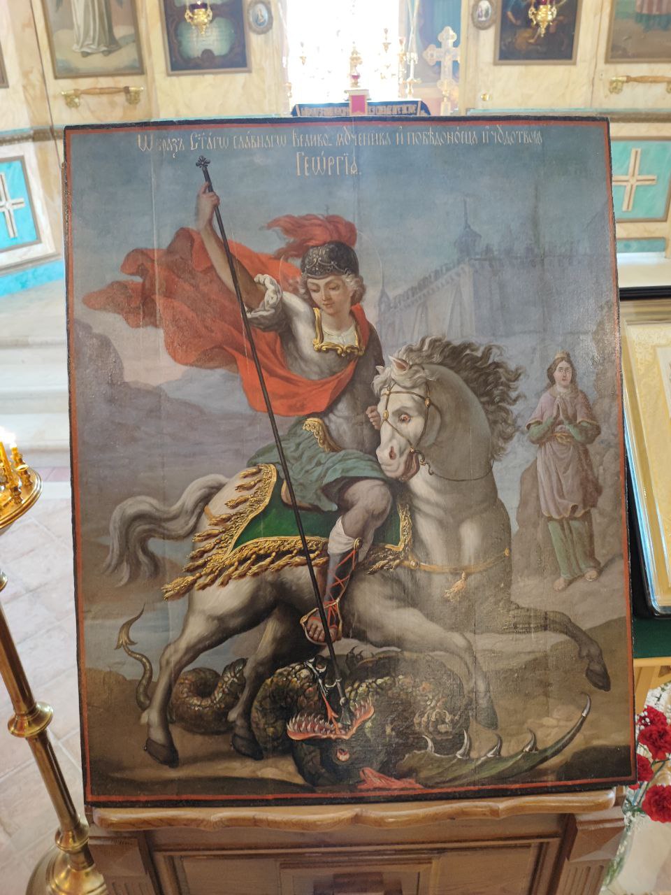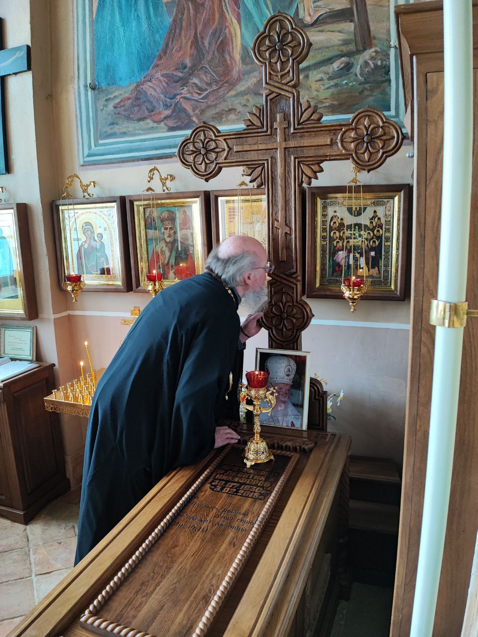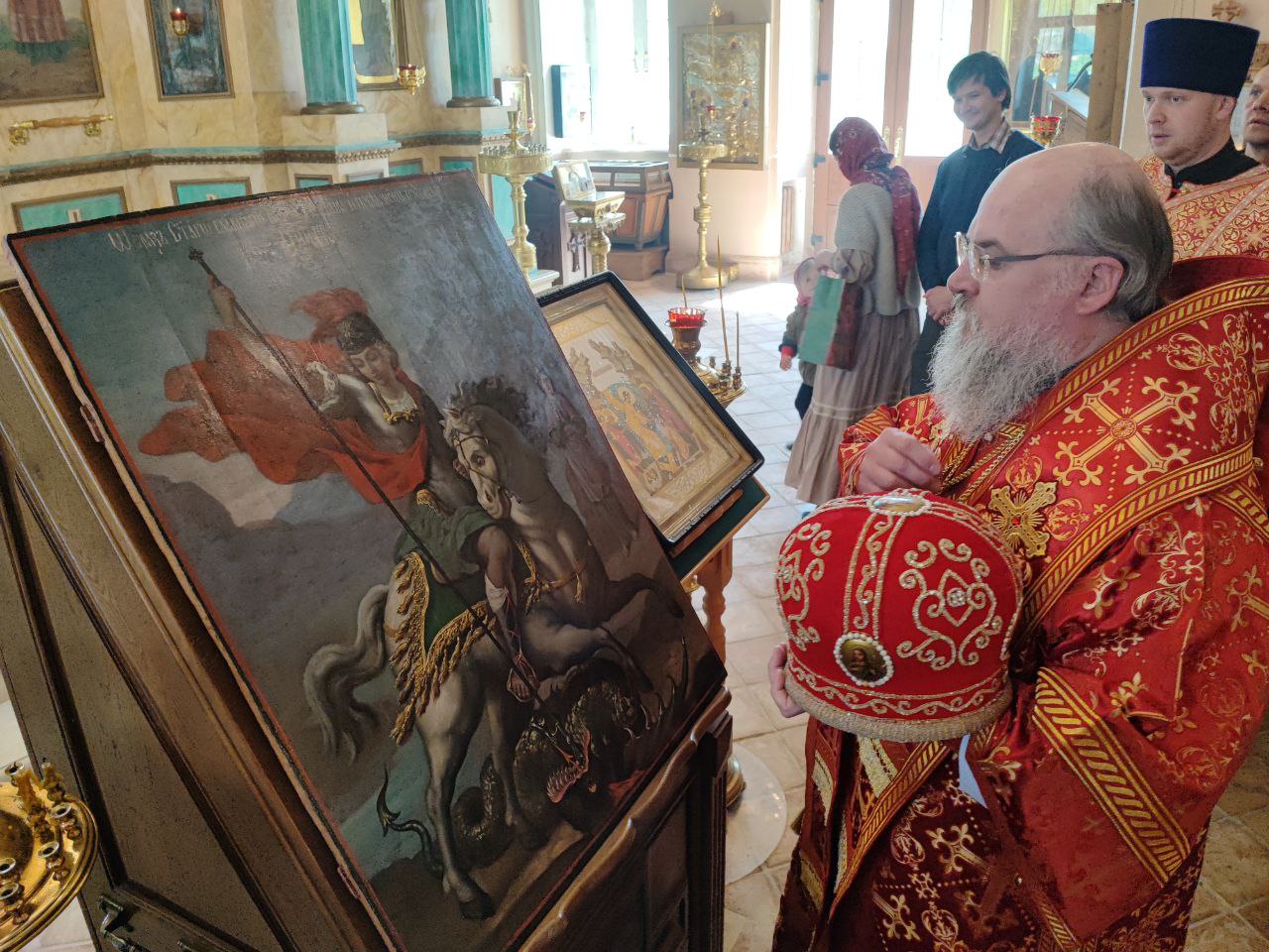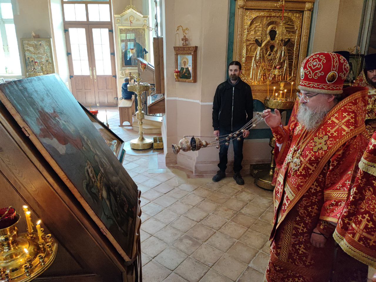 По заамвонной молитве архипастырь совершил освящение отреставрированного образа святого великомученика Георгия Победоносца после чего состоялся пасхальный крестный ход вокруг храма. Затем была совершена заупокойная лития по почившему протоиерею Леонтию Никифорову, погребенному у алтаря храма и всем от века скончавшимся православным христианам.