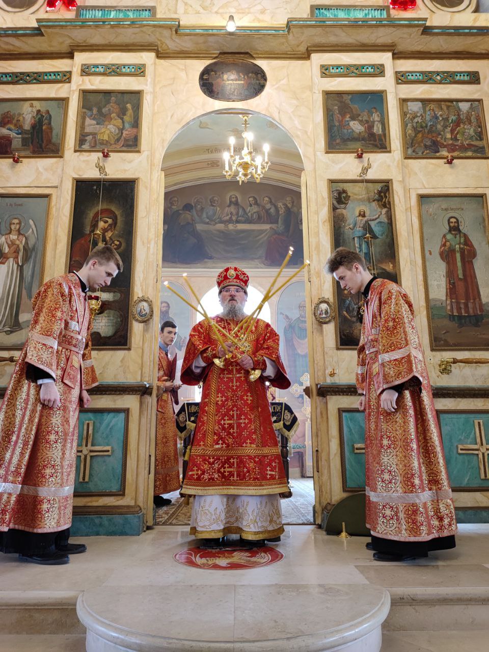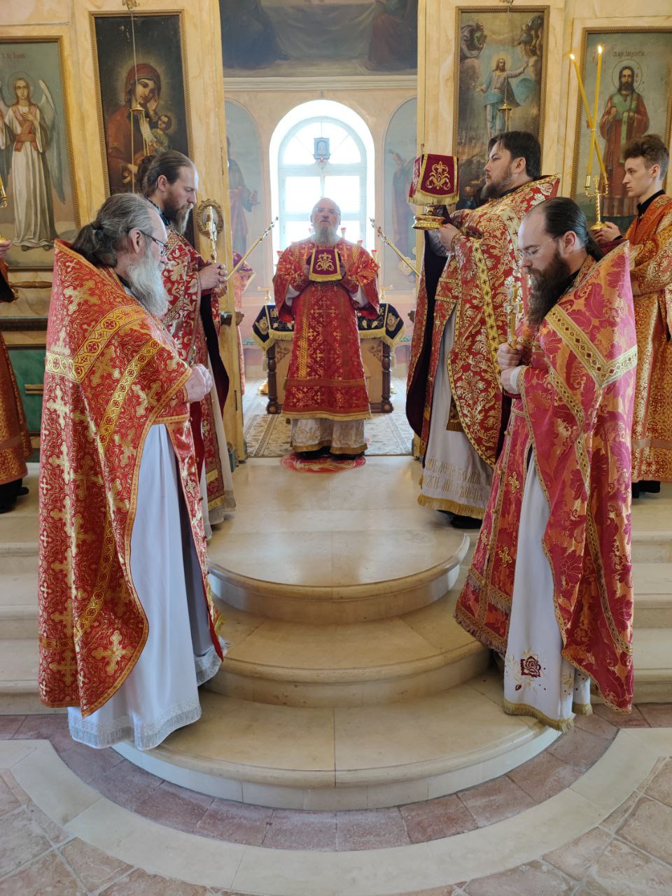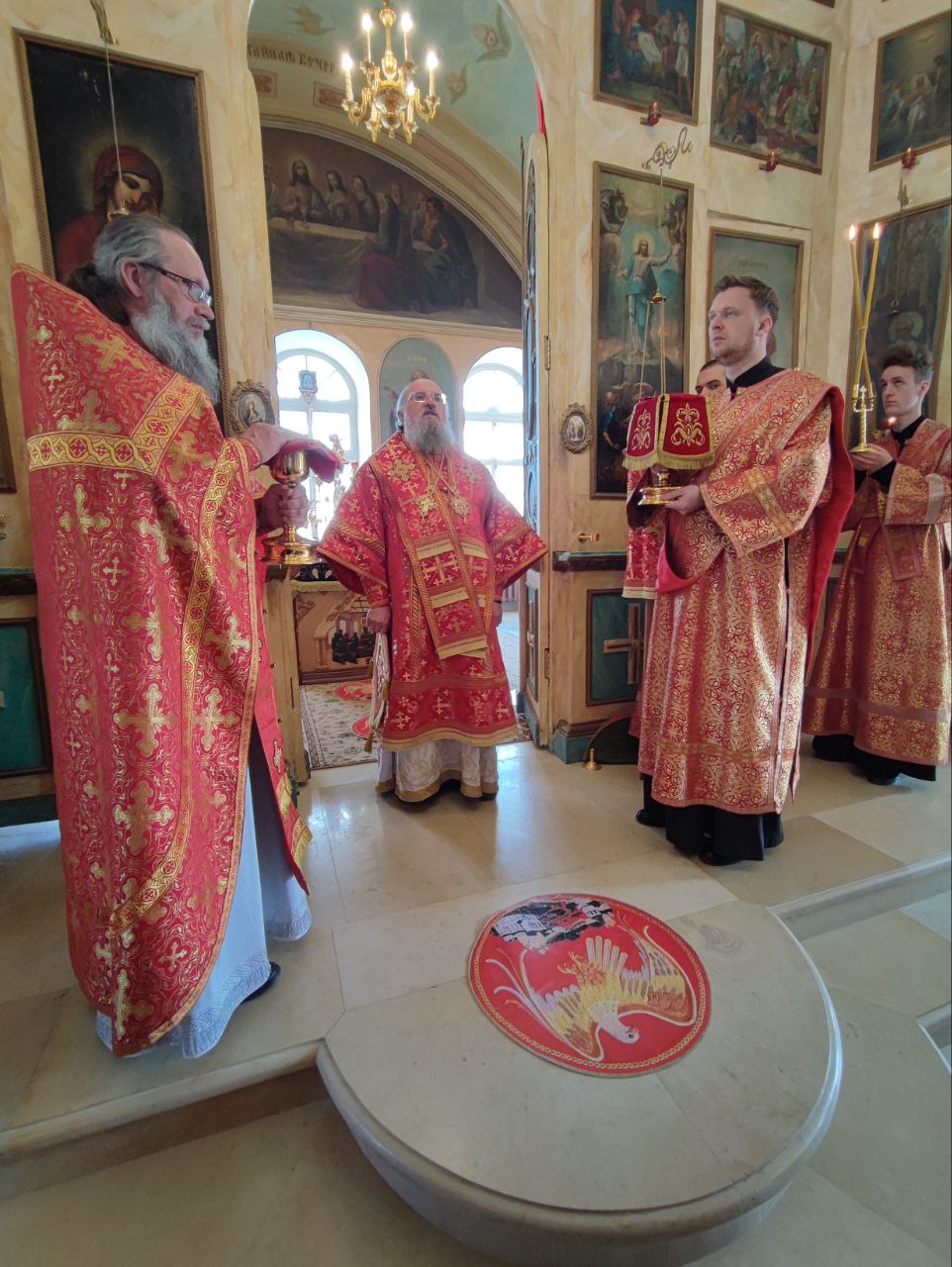 Архипастырю сослужили: протоиерей Антоний Хатунцев, иерей Симеон Худяков, иерей Тихон Худяков – настоятель прихода, иеромонах Ефрем (Ястребов), диакон Евгений Ковригин и диакон Валерий Волков.
