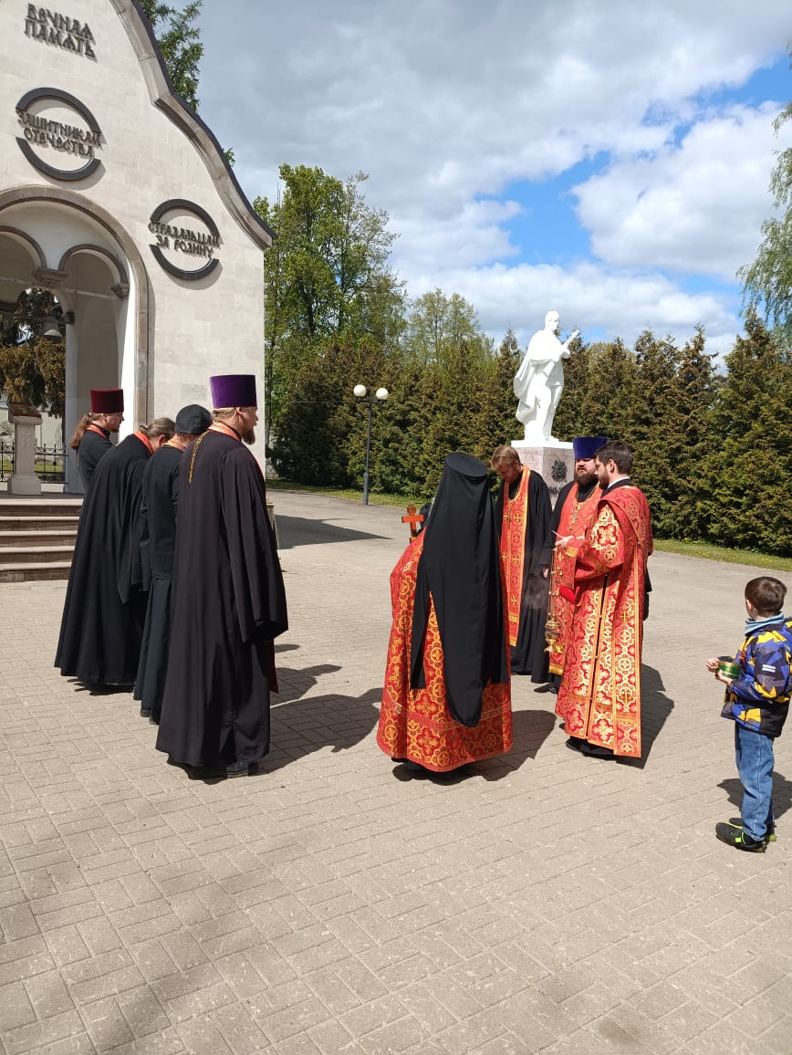 На площади у Вечного огня было торжественное возложение цветов. Затем клирики Козельской епархии отслужили молебен пред часовней Павшим Воинам.