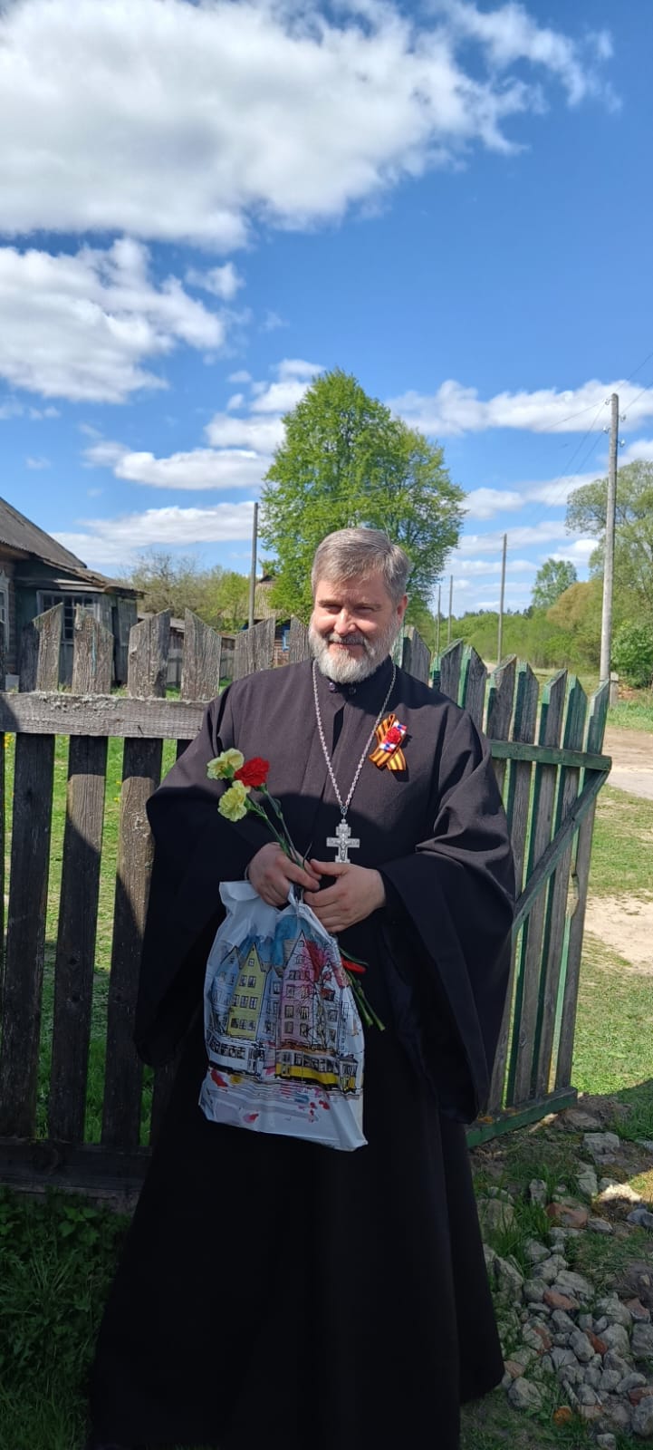 8 мая настоятель храма Покрова Пресвятой Богородицы в селе Кудрявец Хвастовичского района Козельской епархии иерей Константин Кривунов посетил своих прихожан и поздравил их с Днём Победы в Великой Отечественной войне, вручив им цветы и памятные подарки.
