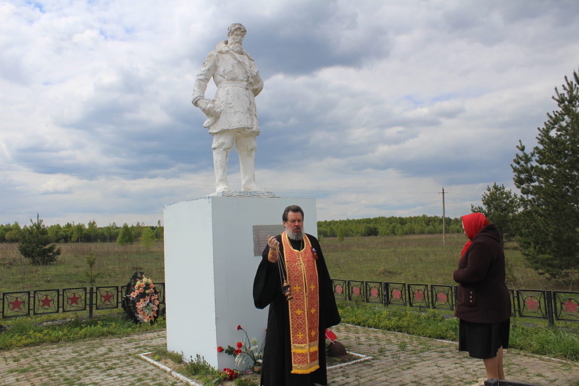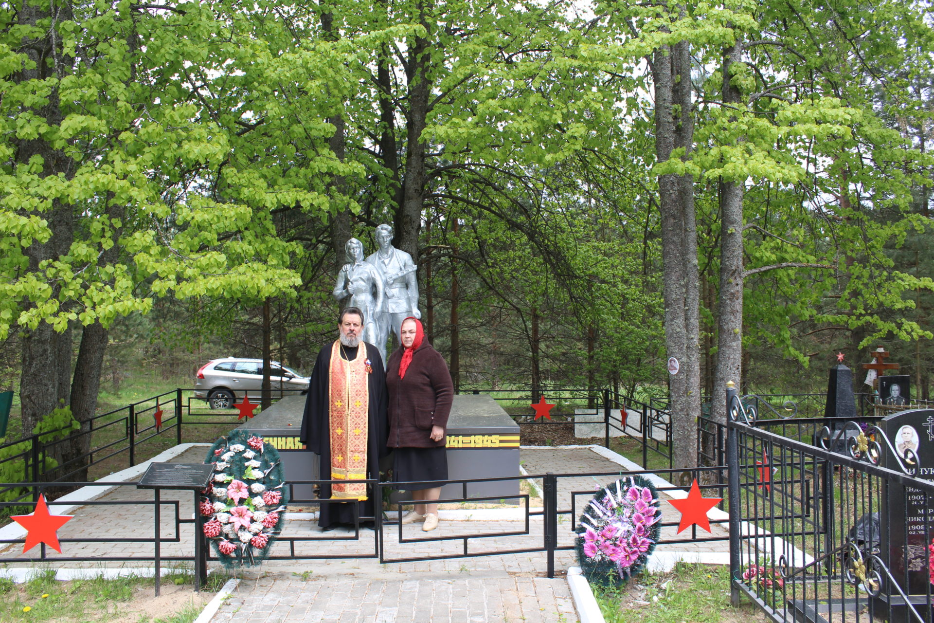 Затем отец Василий отслужи панихиду об усопших воинах на братской могиле у стен храма. Поминались все те воины, которые положили свою жизнь за мир и благополучие страны и всего народа в целом. Так же в этот день протоиереем Василием Биляк были совершены панихиды на братских могилах Людиновского района.
