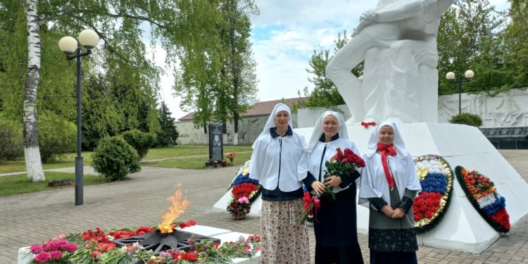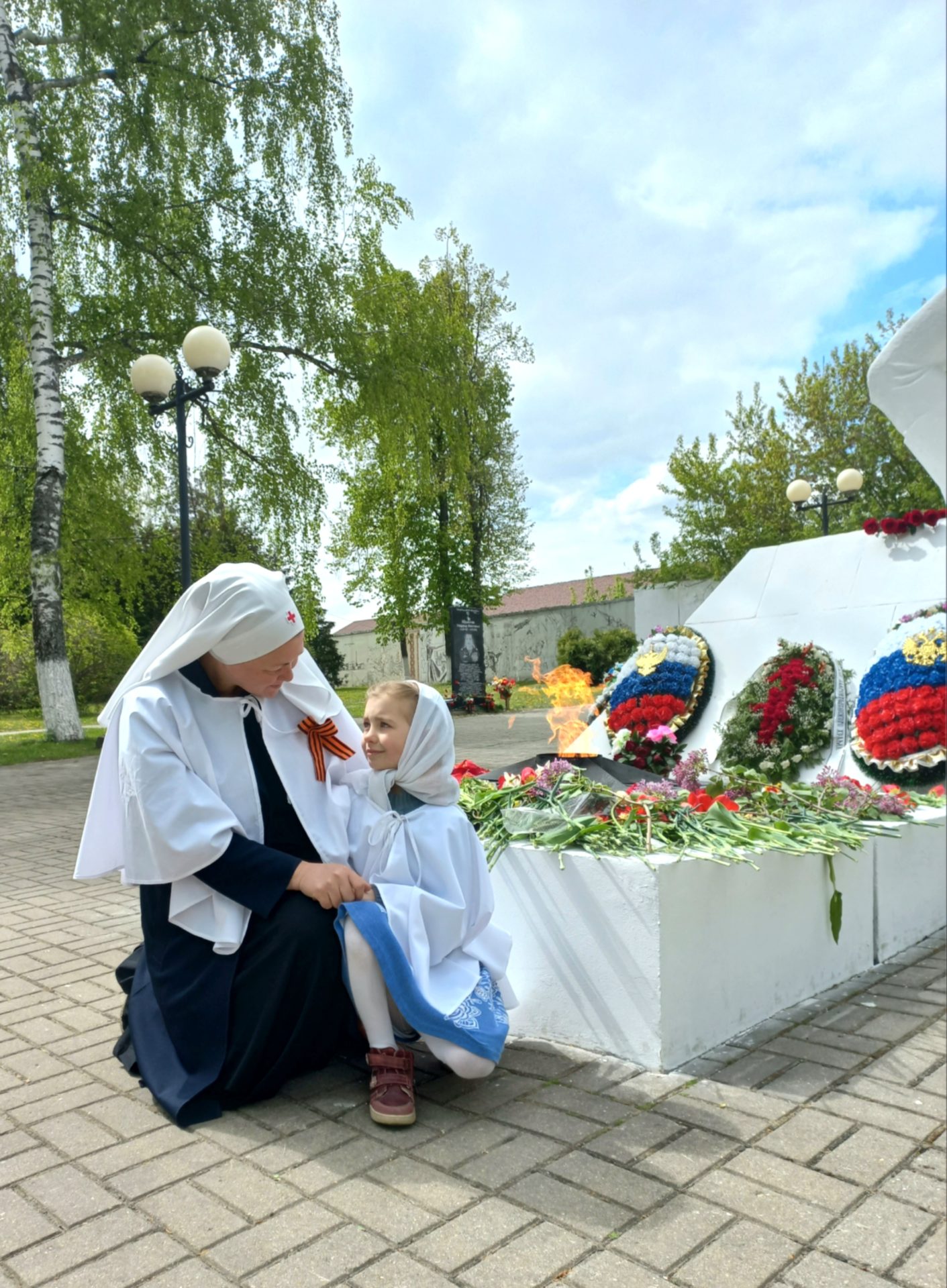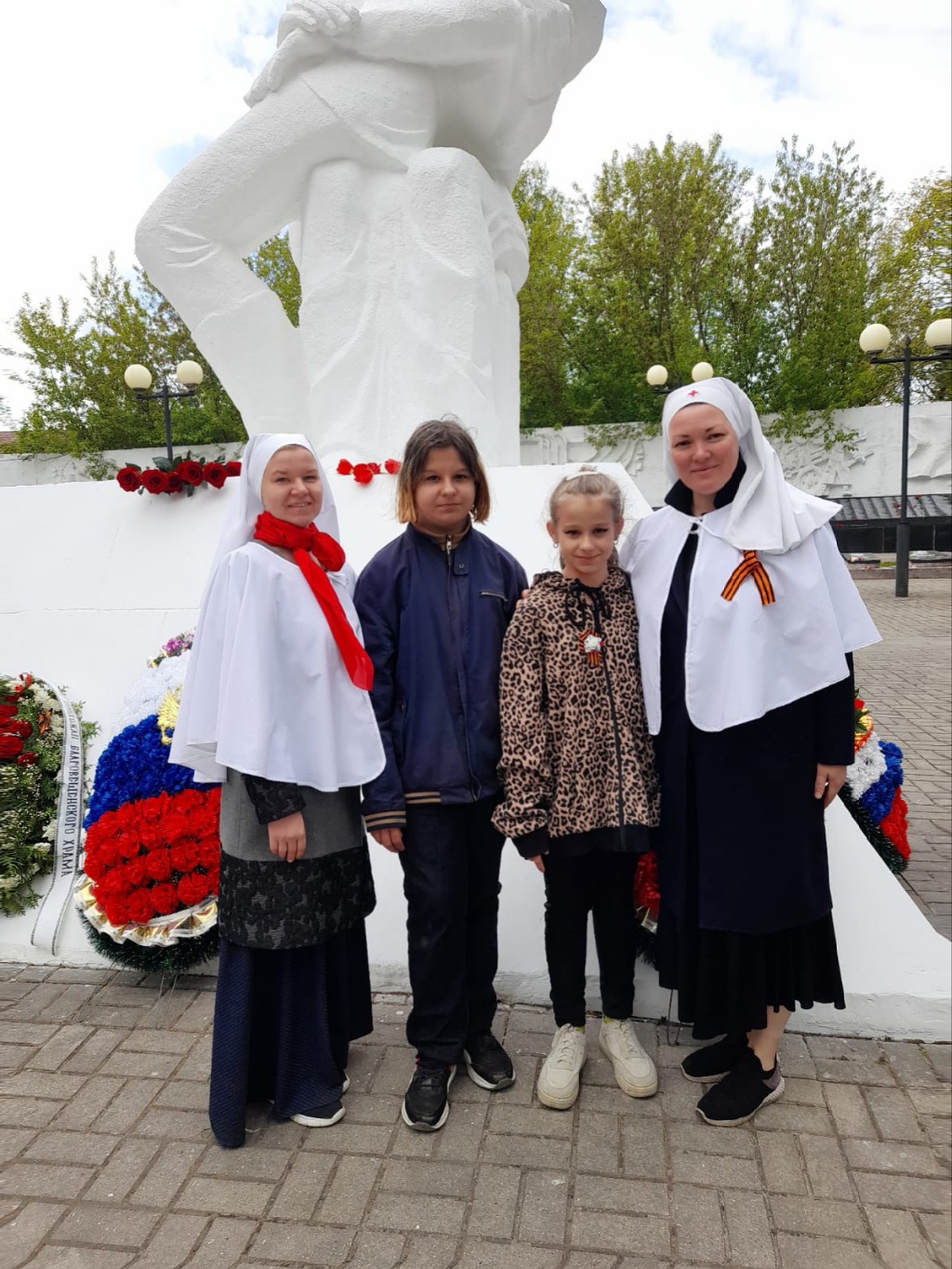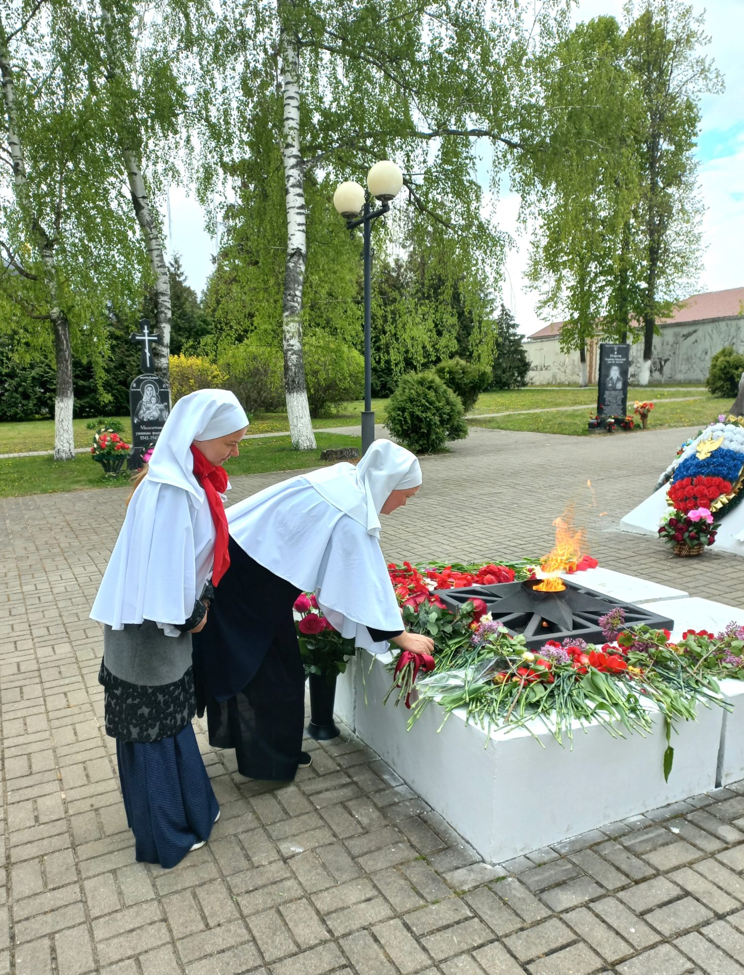 Официальную часть Дня Победы Епархиальное Сестричество Милосердия начало с возложения цветов к Вечному огню. Сестры почтили память павших воинов минутой молчания. В продолжение памятного дня с музыкальной программой, сладостями и цветочными букетами Сестричество навестило своих пожилых подопечных, которые застали время Великой Отечественной Войны. Бабушки – дети войны. кто-то был даже узником. Вместе с сестрами путешествовали дети, делившиеся чистотой и добротой своих сердец с теми, кто особо в этом нуждается.