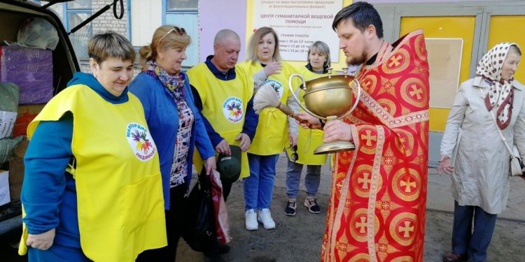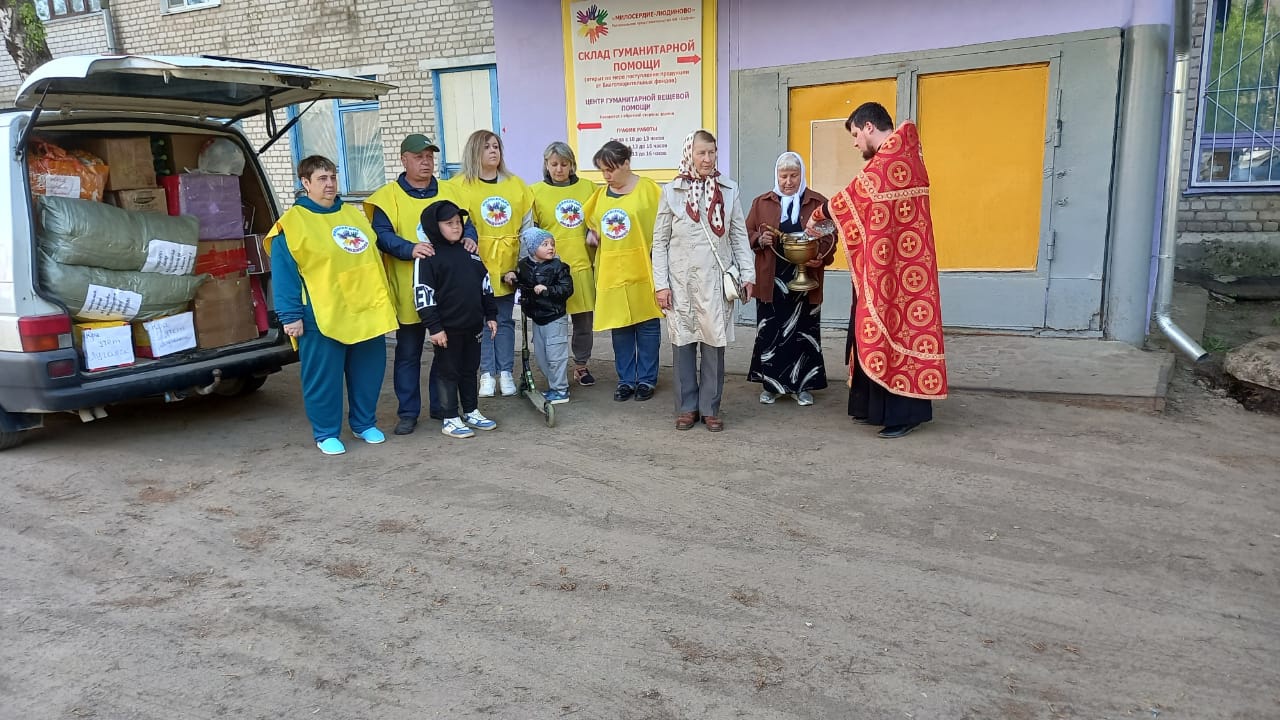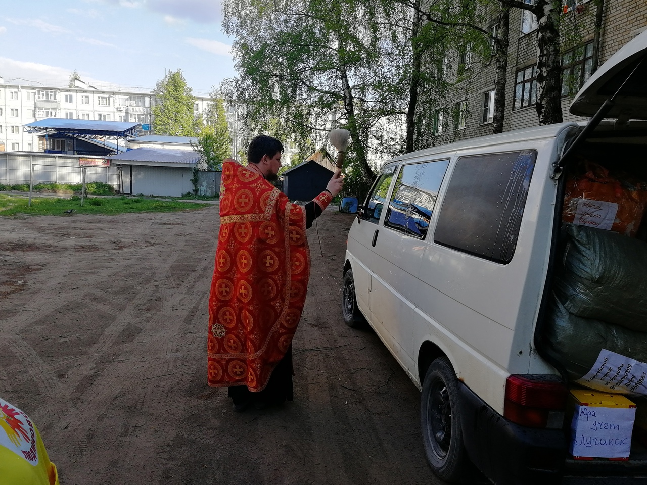Перед отправкой был совершен молебен. Клирик храма в честь святого праведного Лазаря иерей Иоанн Майоров напутствовал водителя и волонтеров, сопровождающих груз, отслужив молебен и окропив всех святой водой. Отец Иоанн пожелал всем волонтерам Божией помощи в трудах во благо людей и благословил путешествующих.