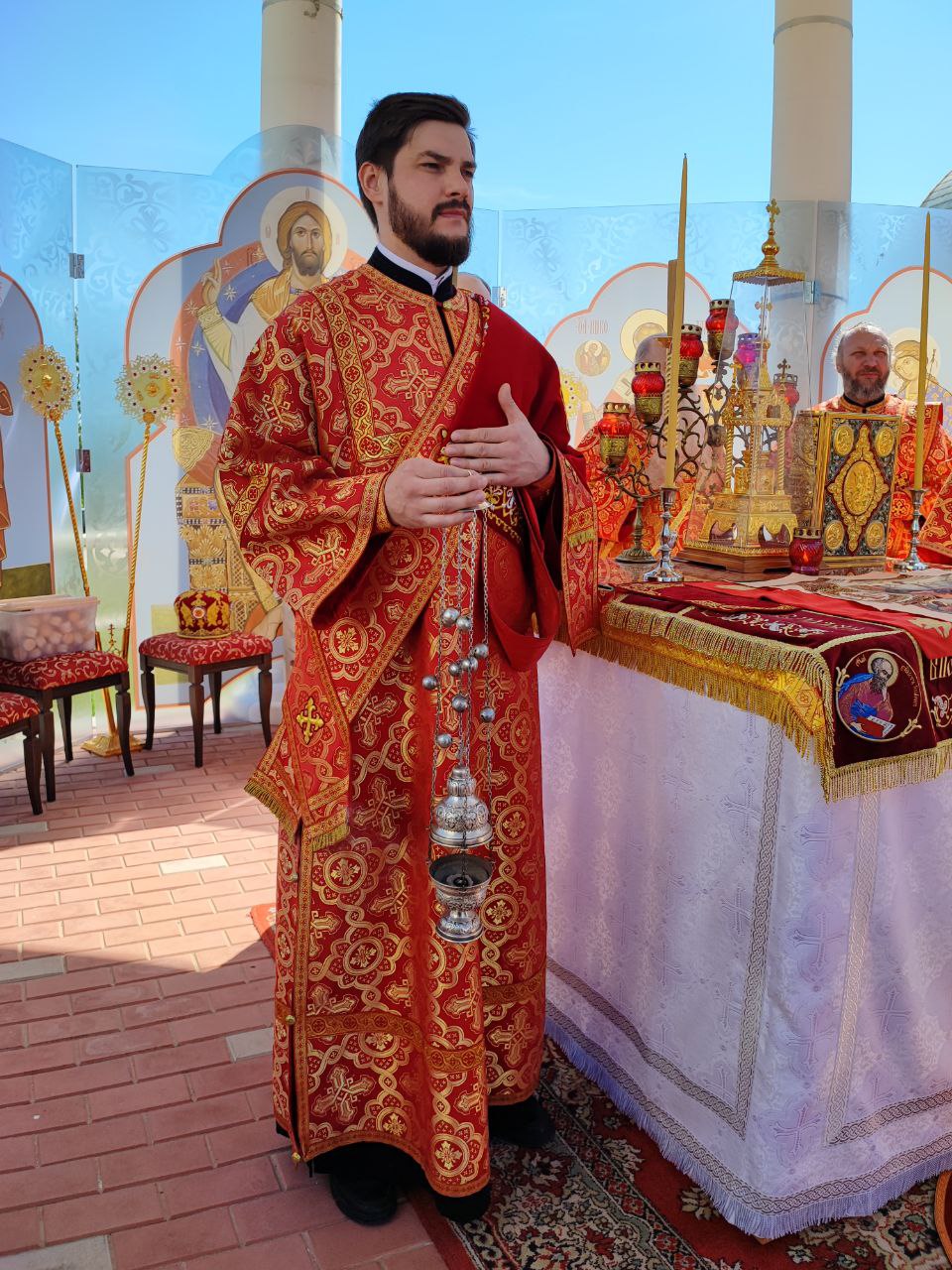 На Малом входе насельник монастыря иеромонах Филарет (Пчелов) был удостоен права ношения набедренника.