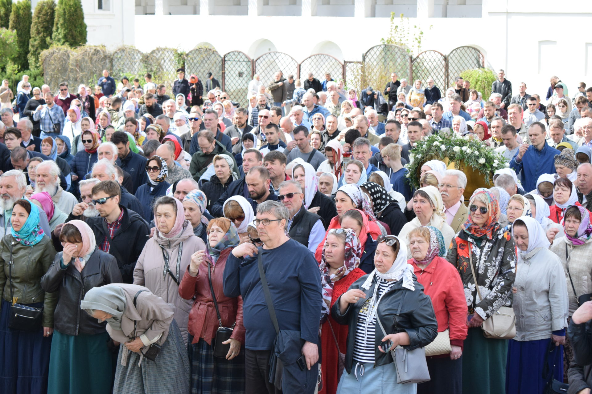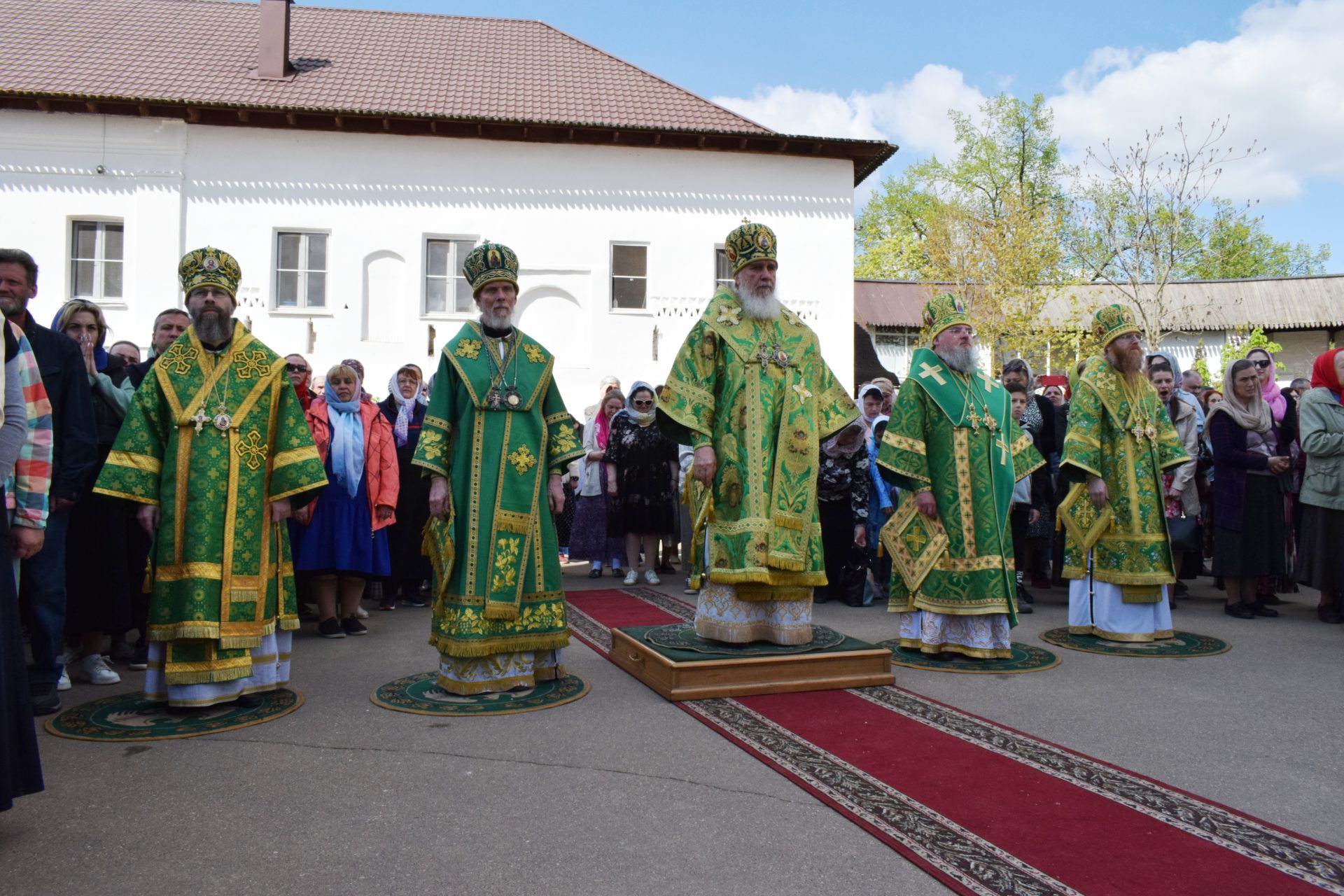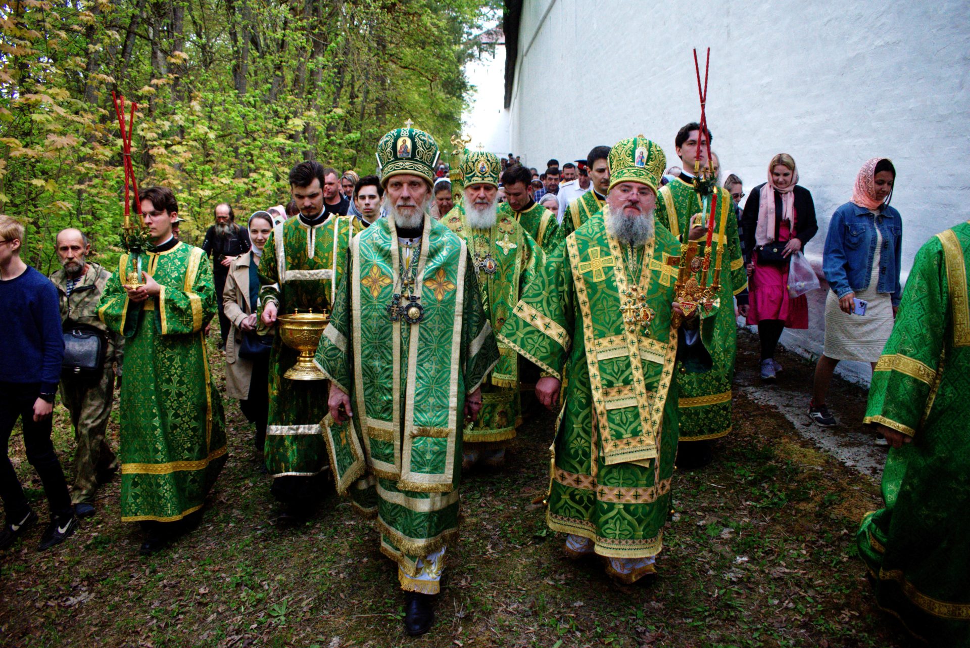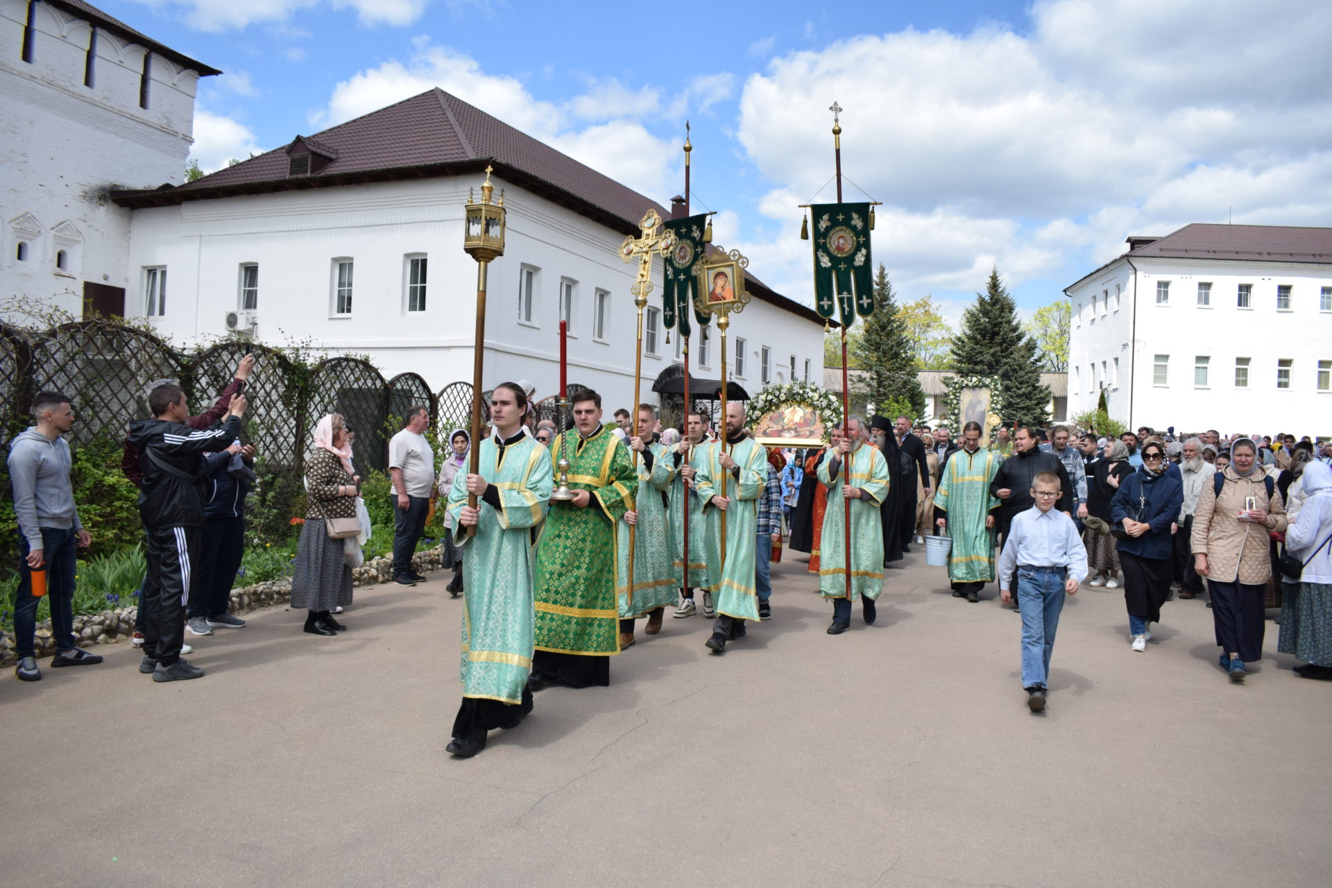 По окончании Литургии вокруг обители был совершен праздничный крестный ход до монастырского источника, где было совершено малое освящения воды.