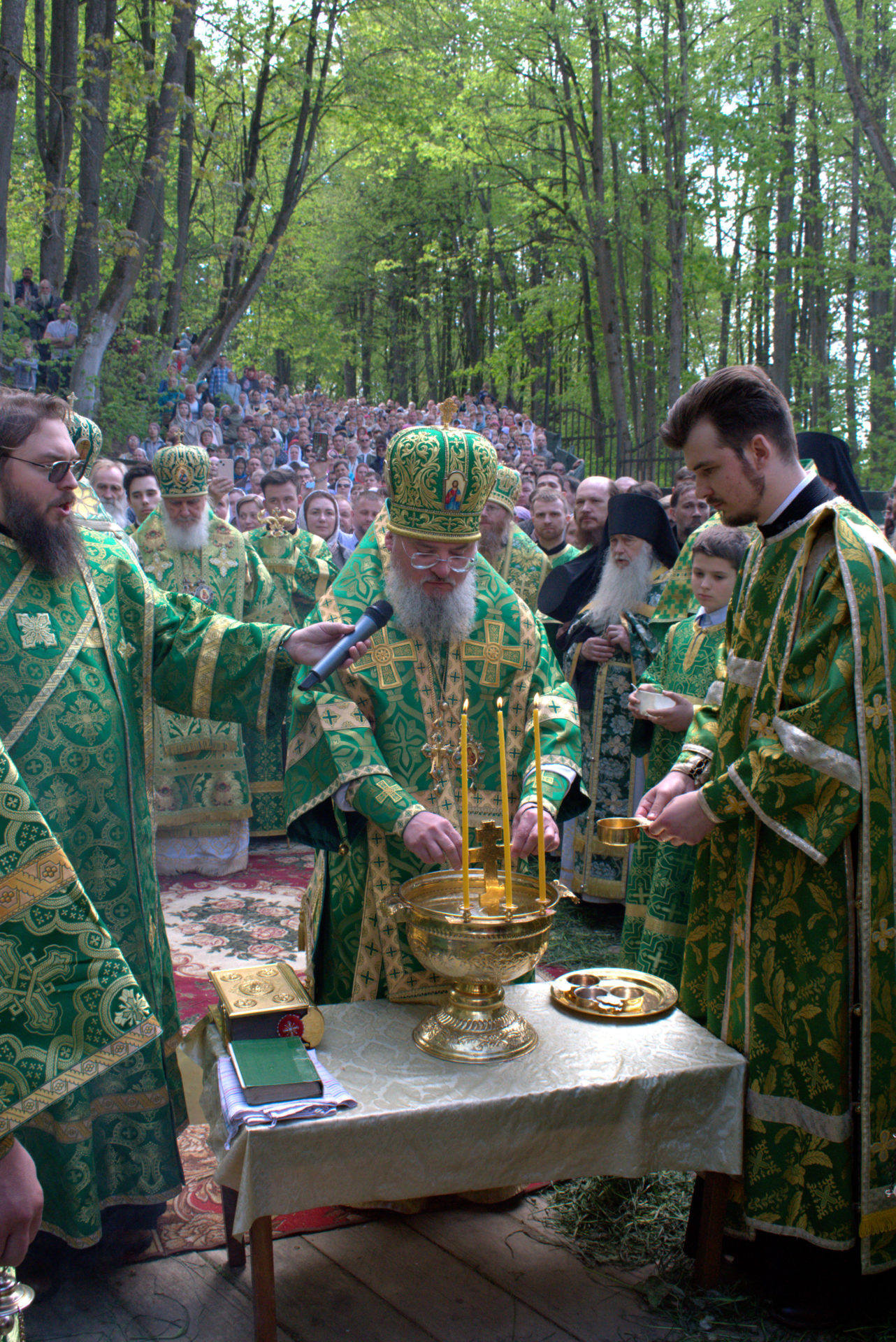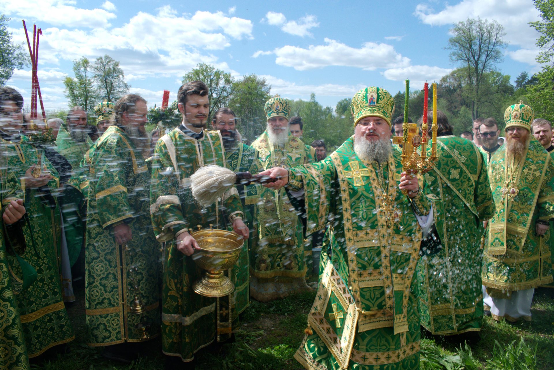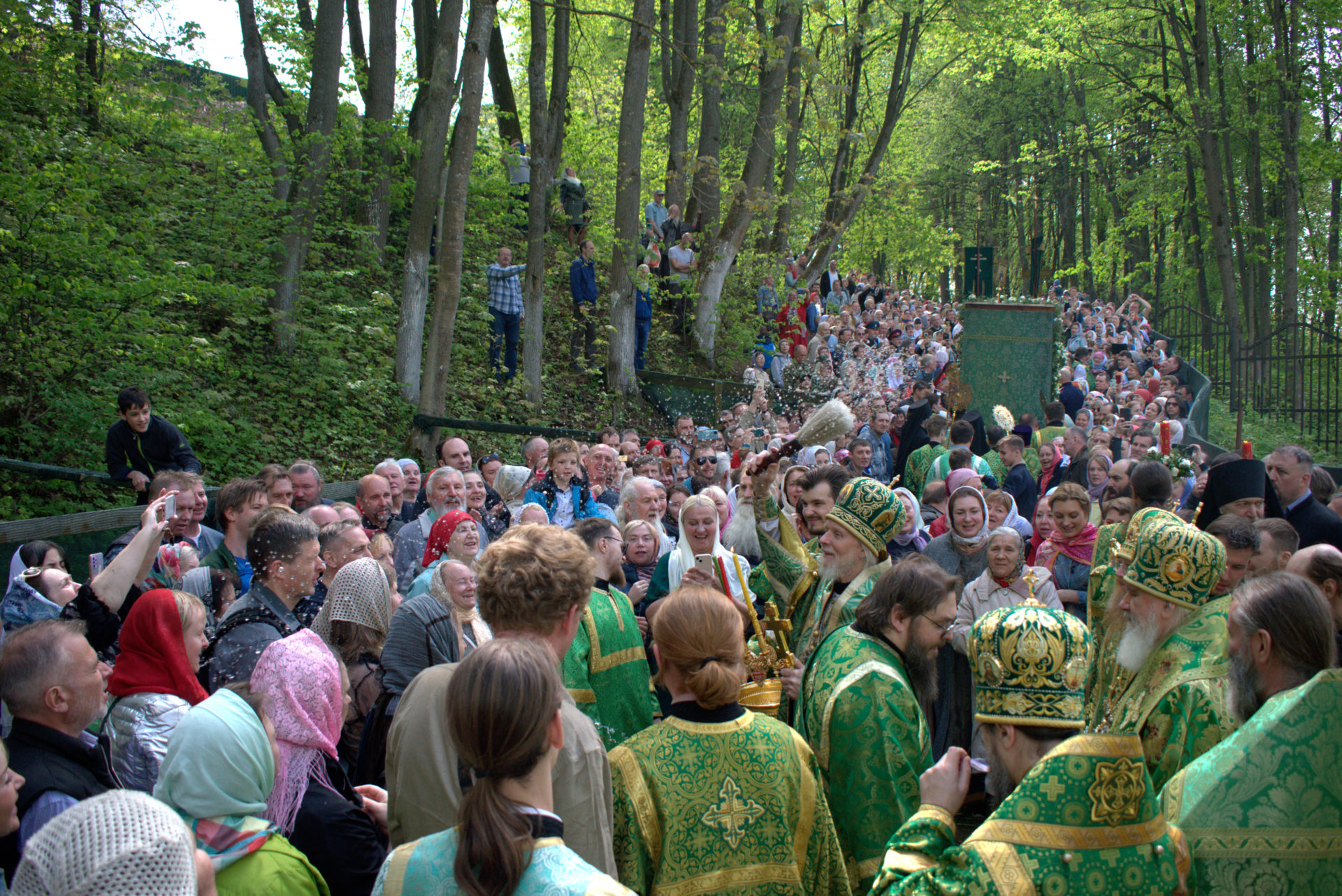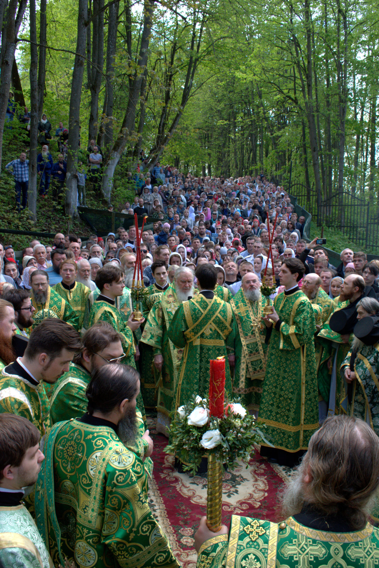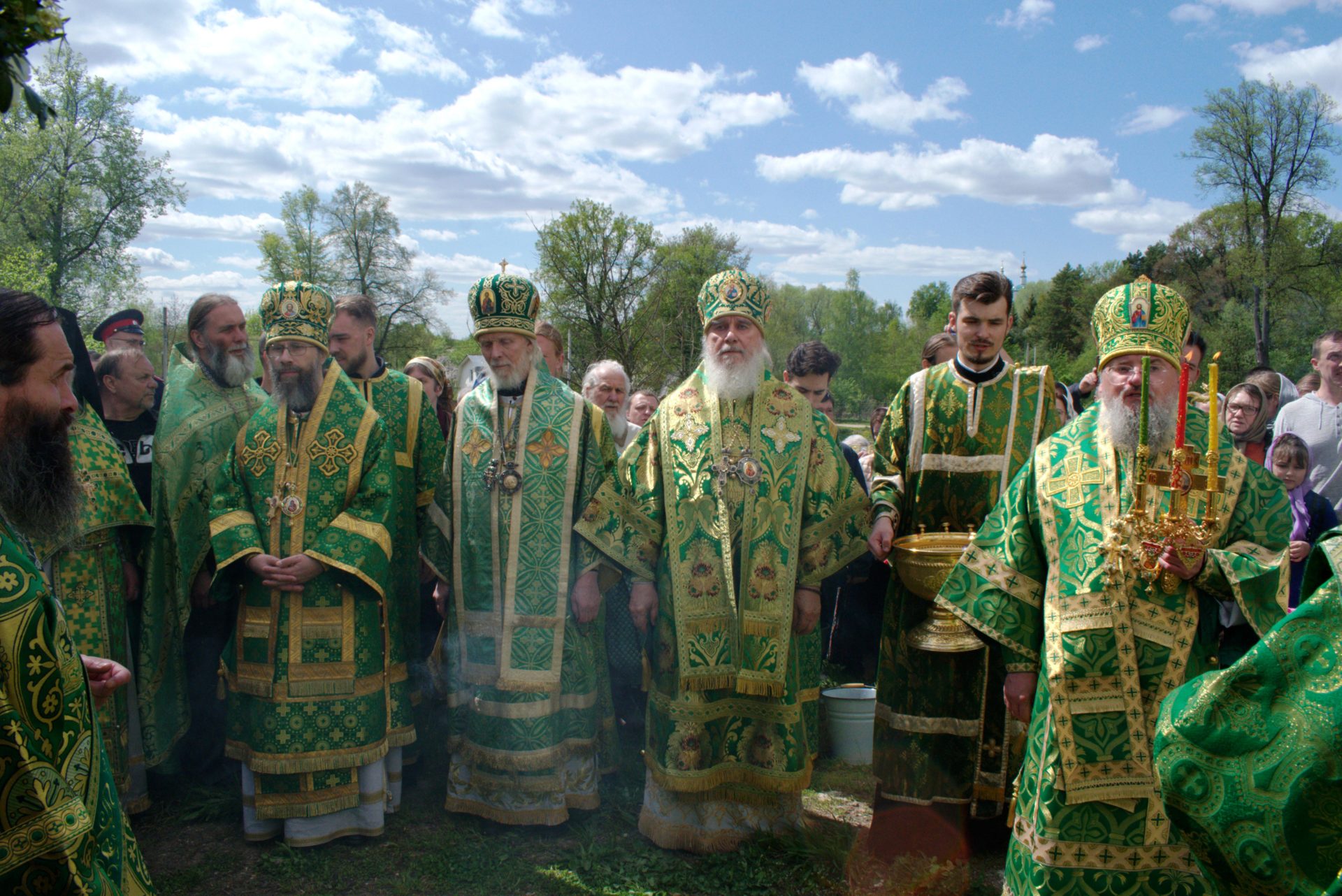 По окончании Литургии вокруг обители был совершен праздничный крестный ход до монастырского источника, где было совершено малое освящения воды.