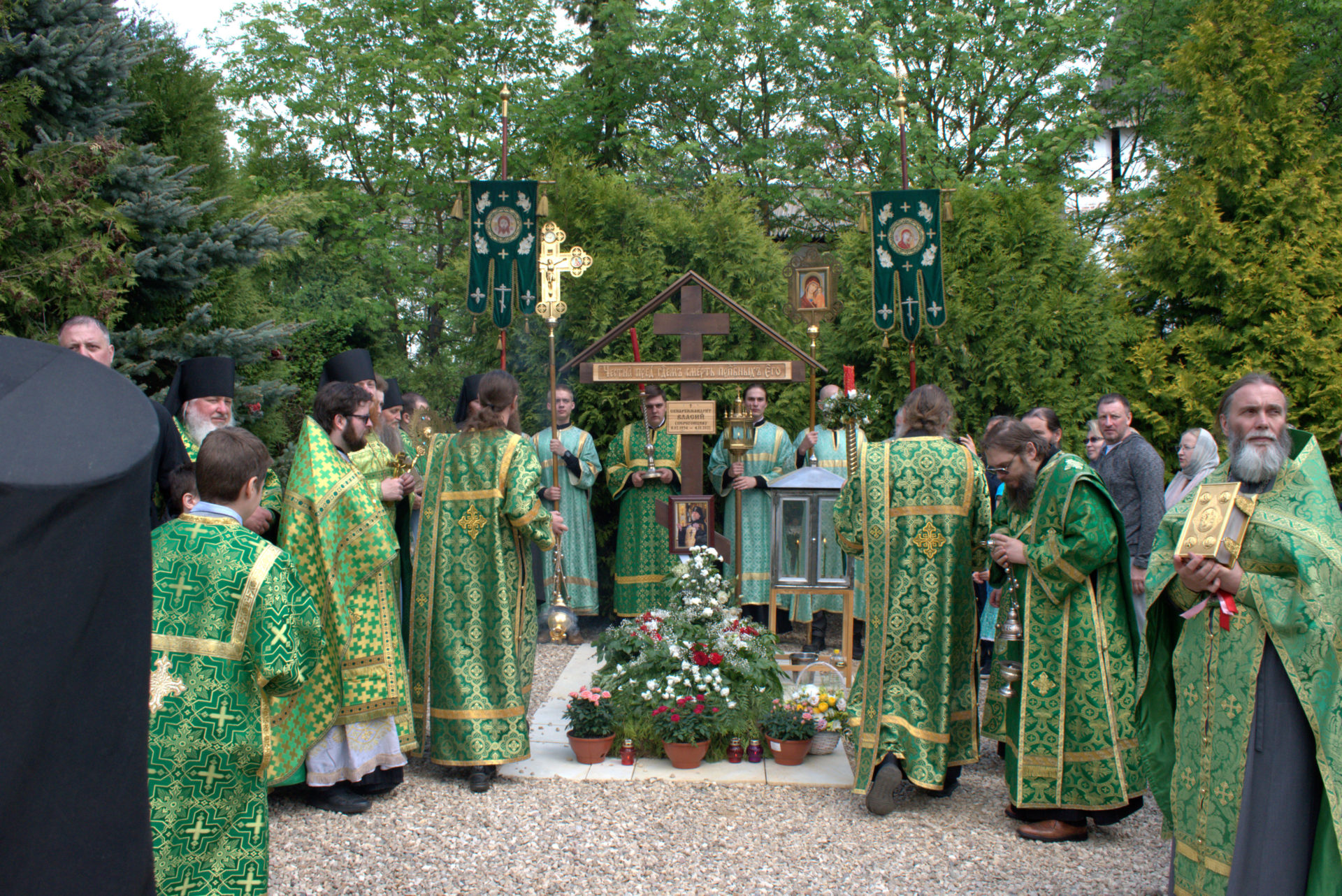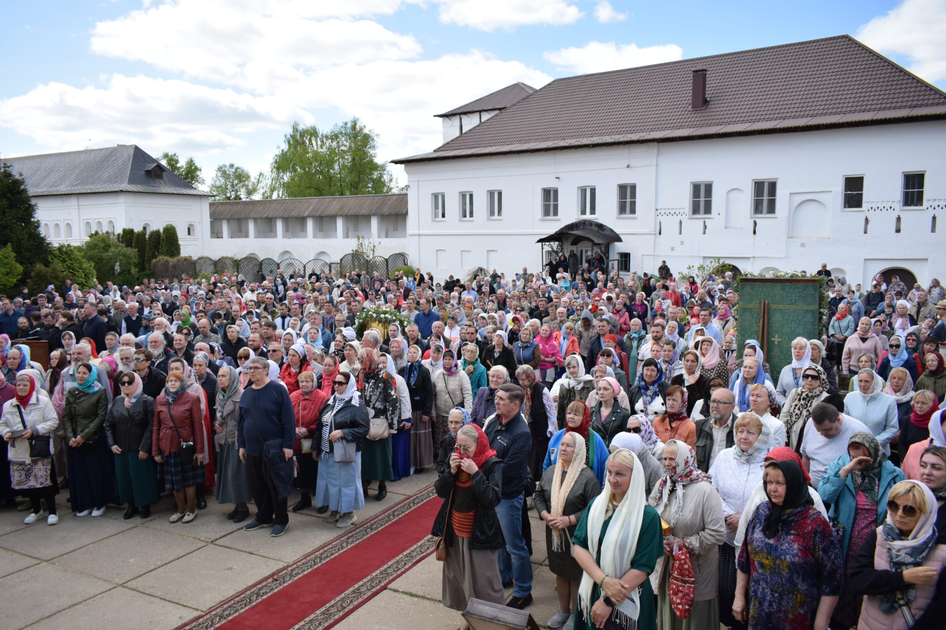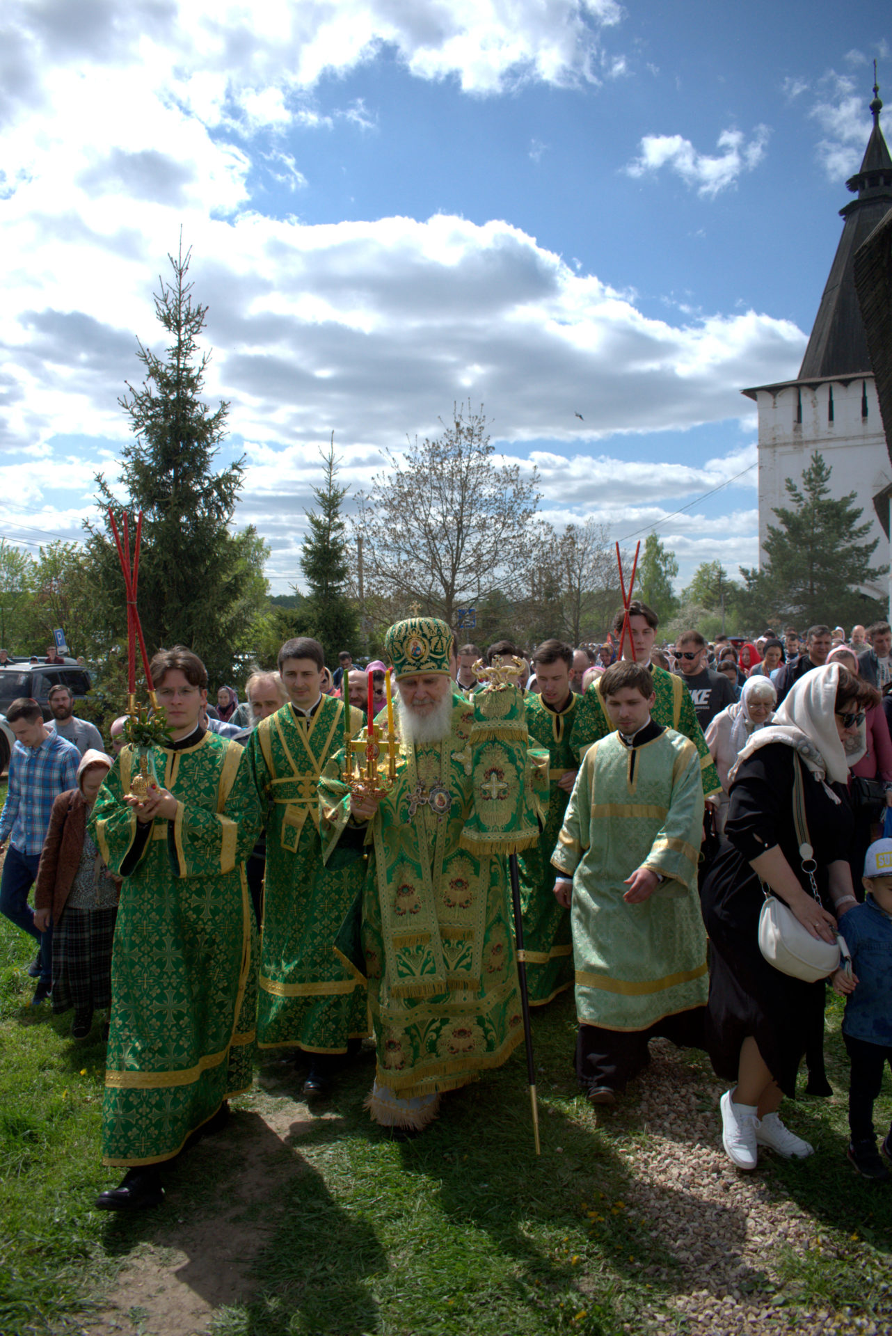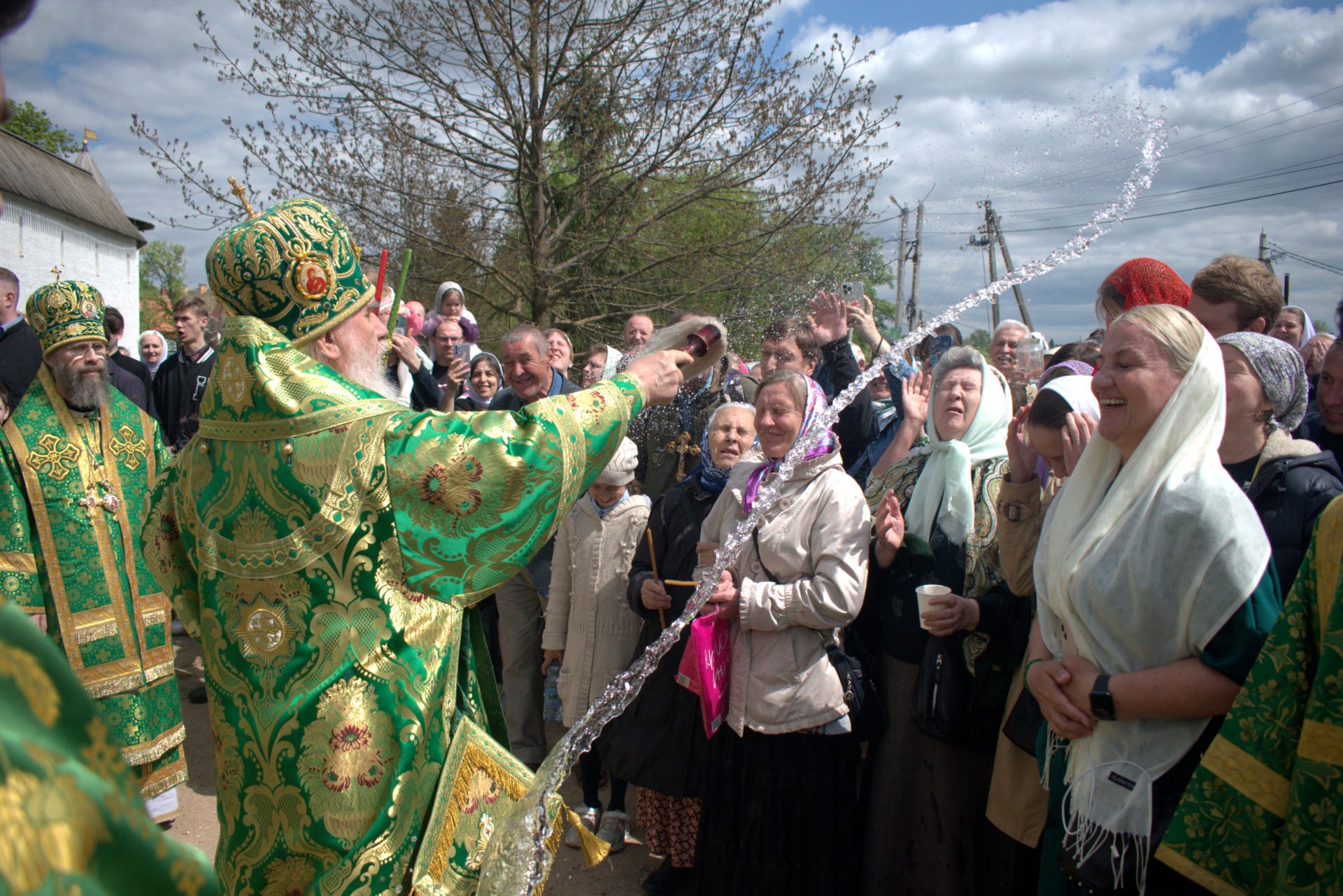 По окончании Литургии вокруг обители был совершен праздничный крестный ход до монастырского источника, где было совершено малое освящения воды.