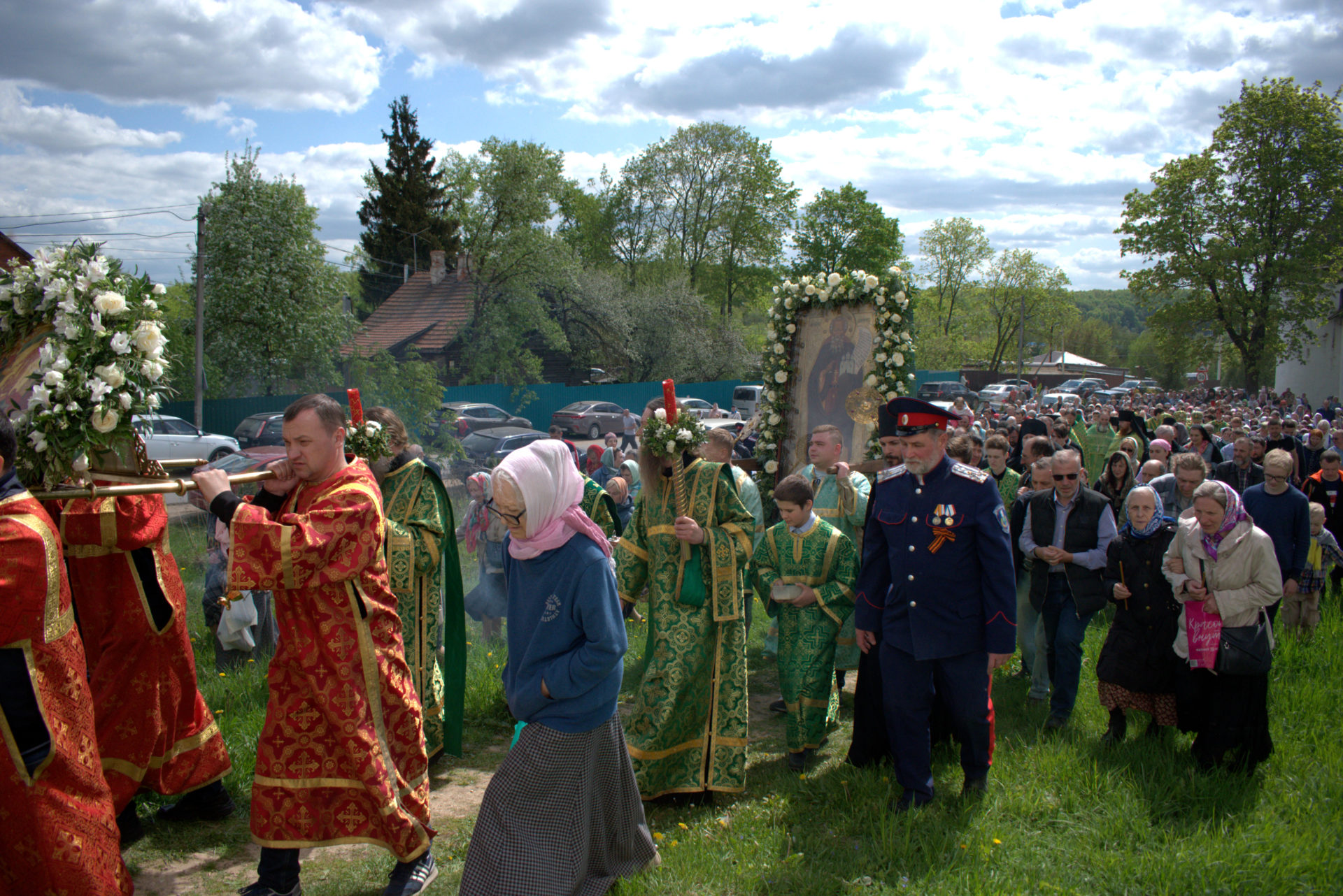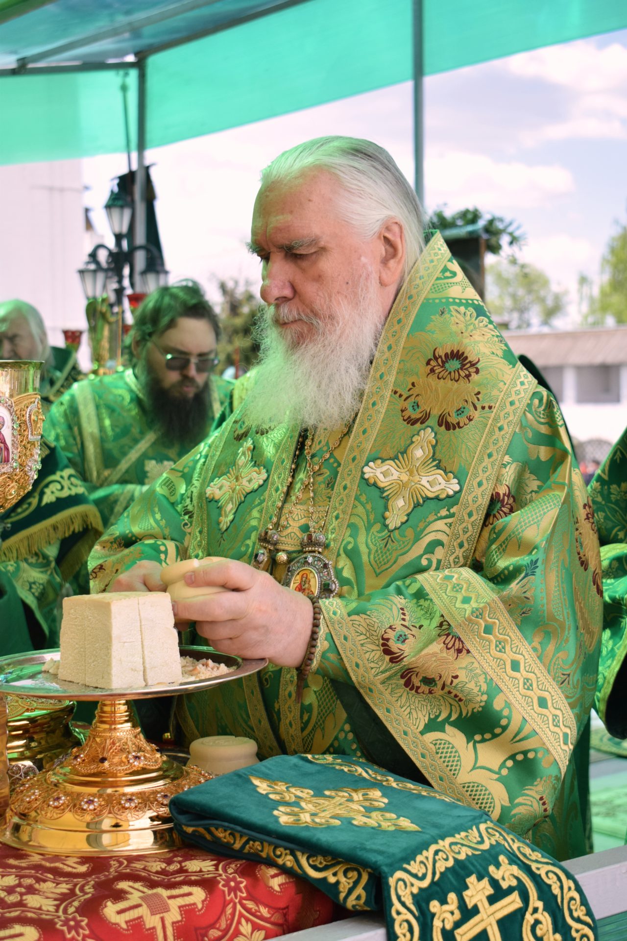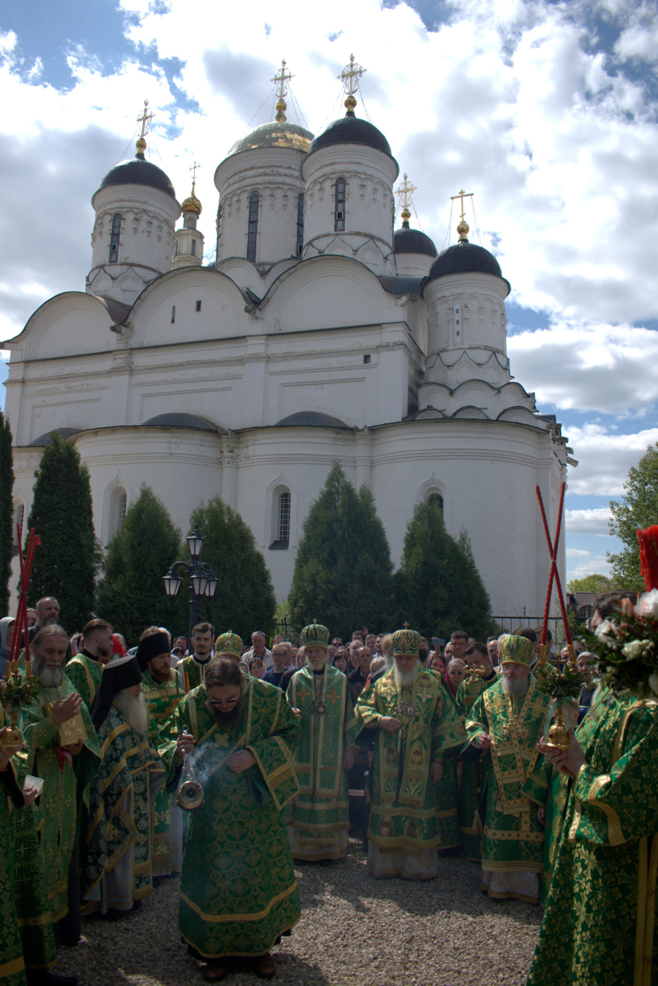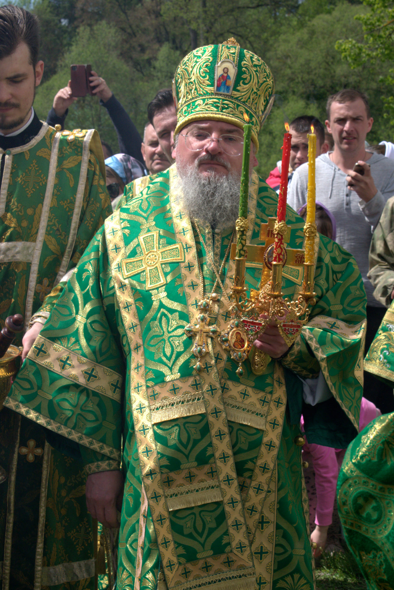 По окончании Литургии вокруг обители был совершен праздничный крестный ход до монастырского источника, где было совершено малое освящения воды.