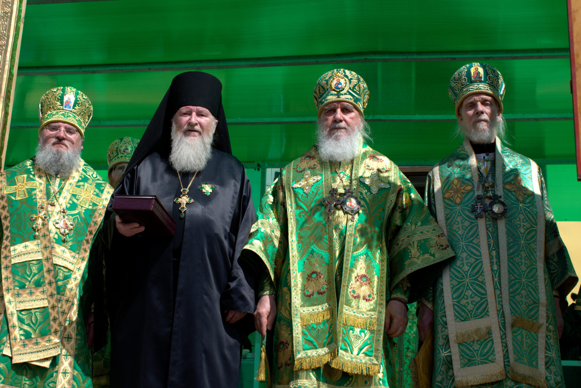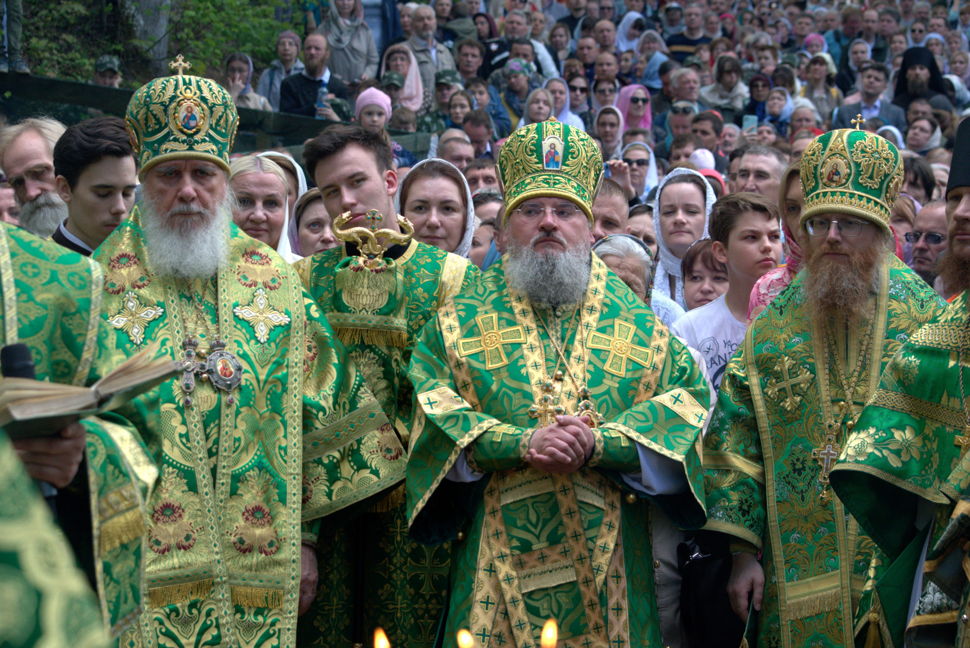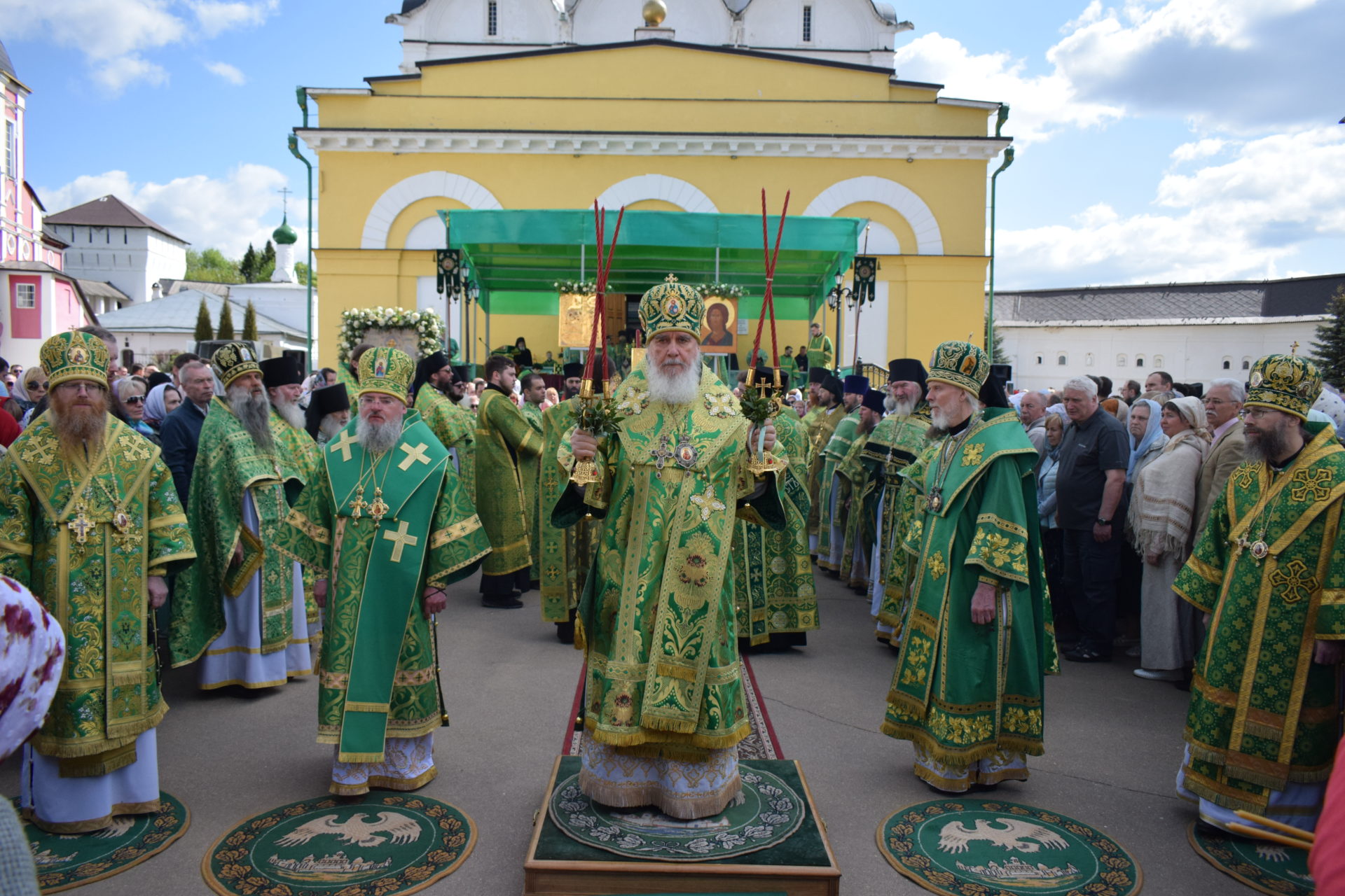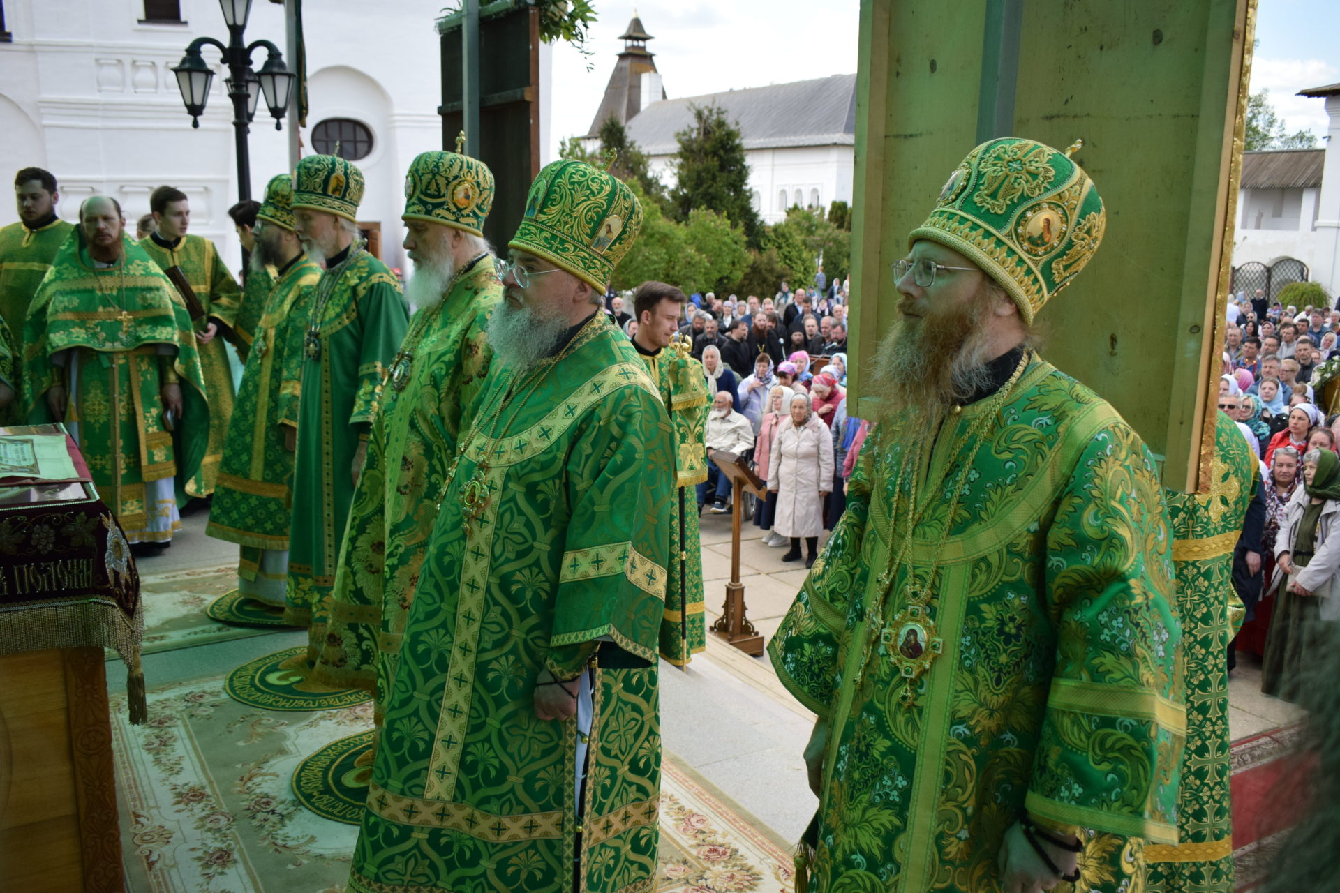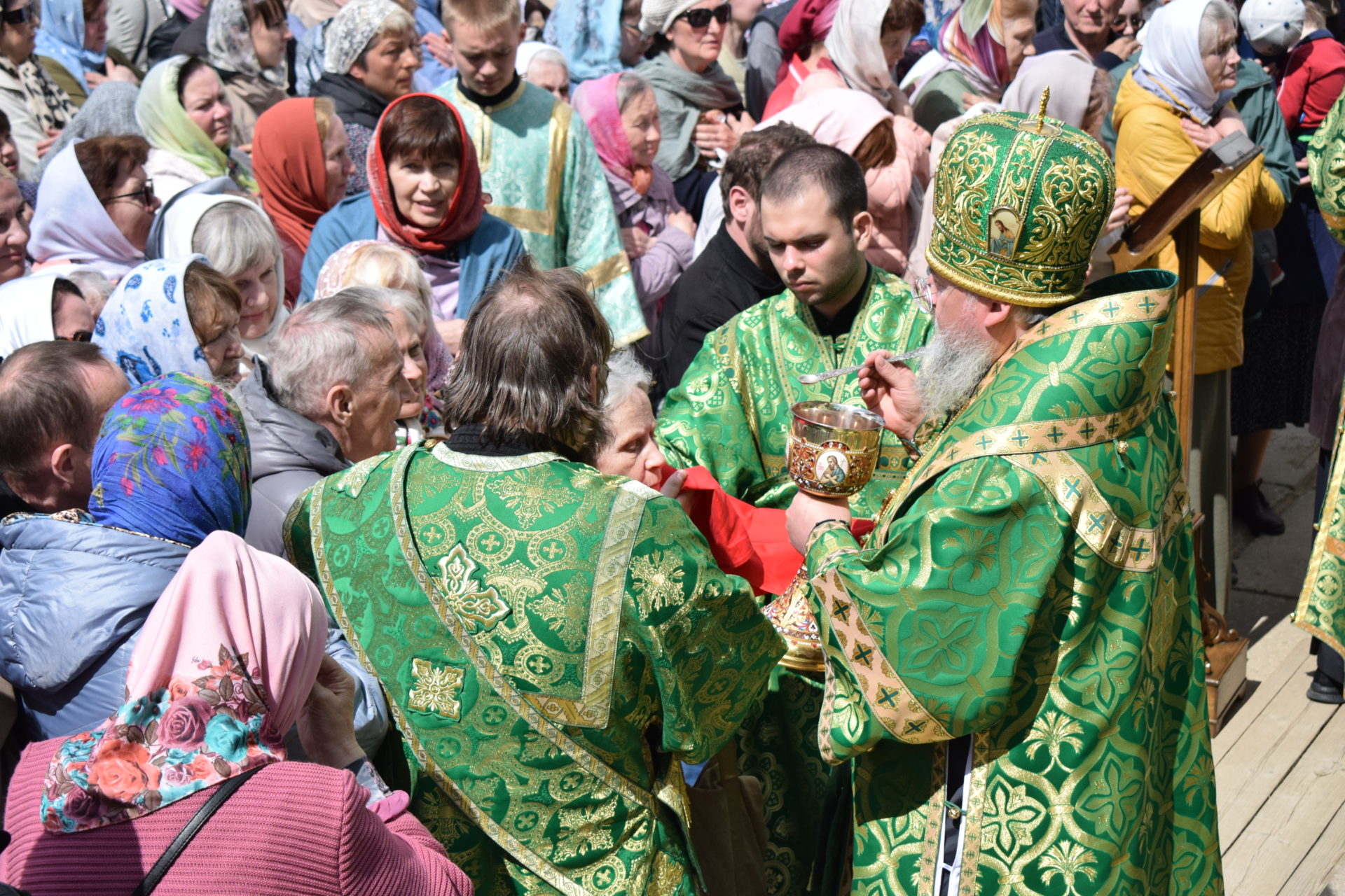 По окончании Литургии вокруг обители был совершен праздничный крестный ход до монастырского источника, где было совершено малое освящения воды.