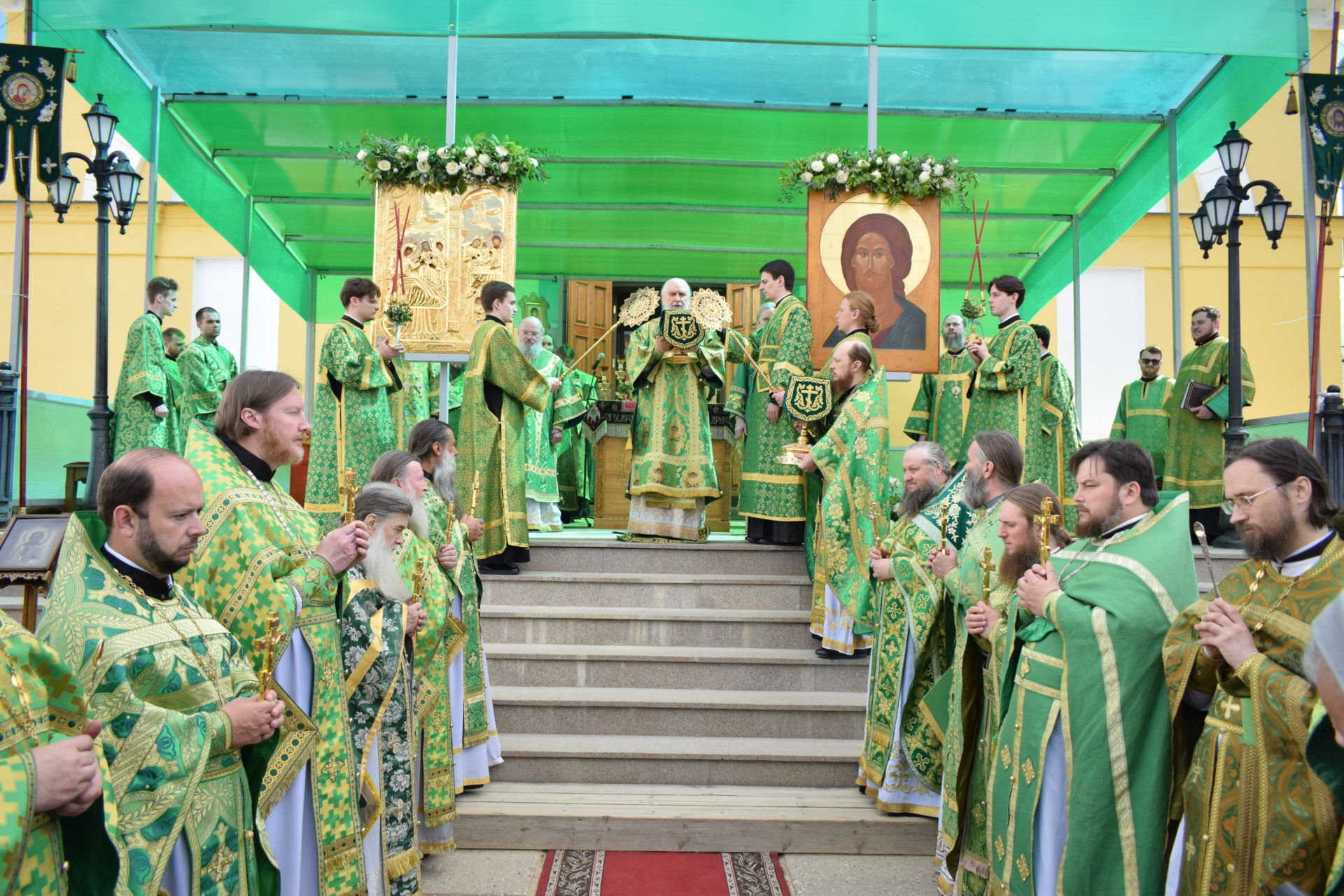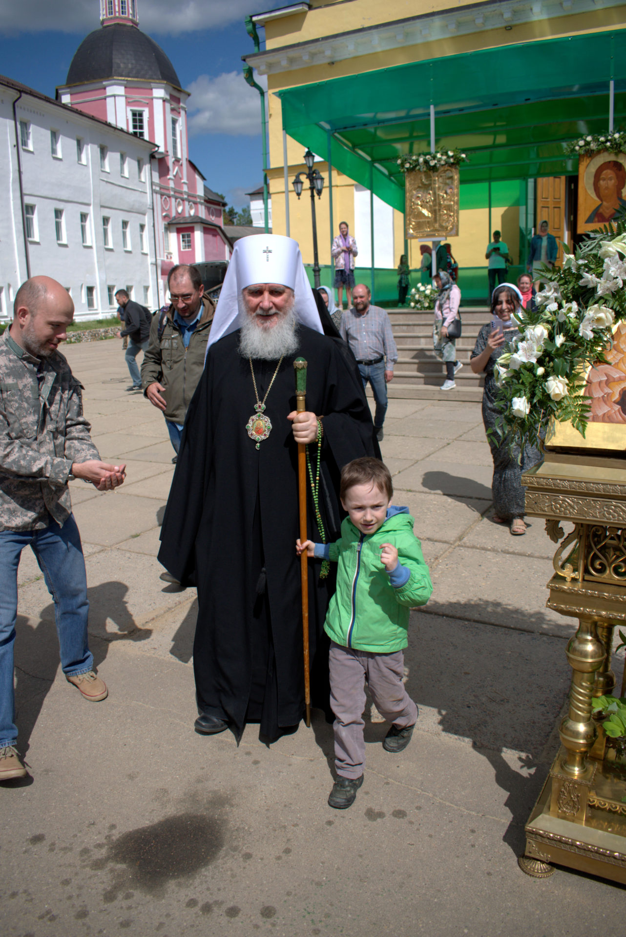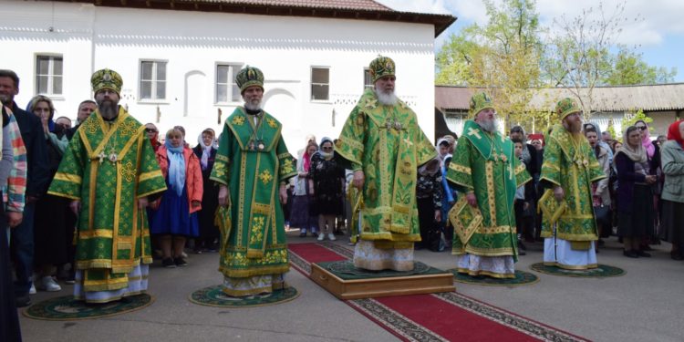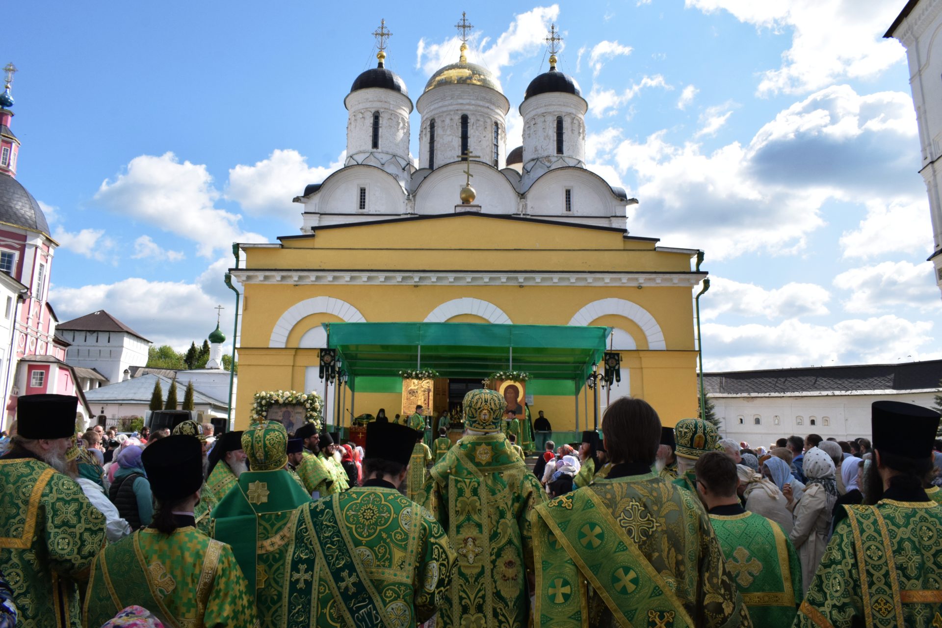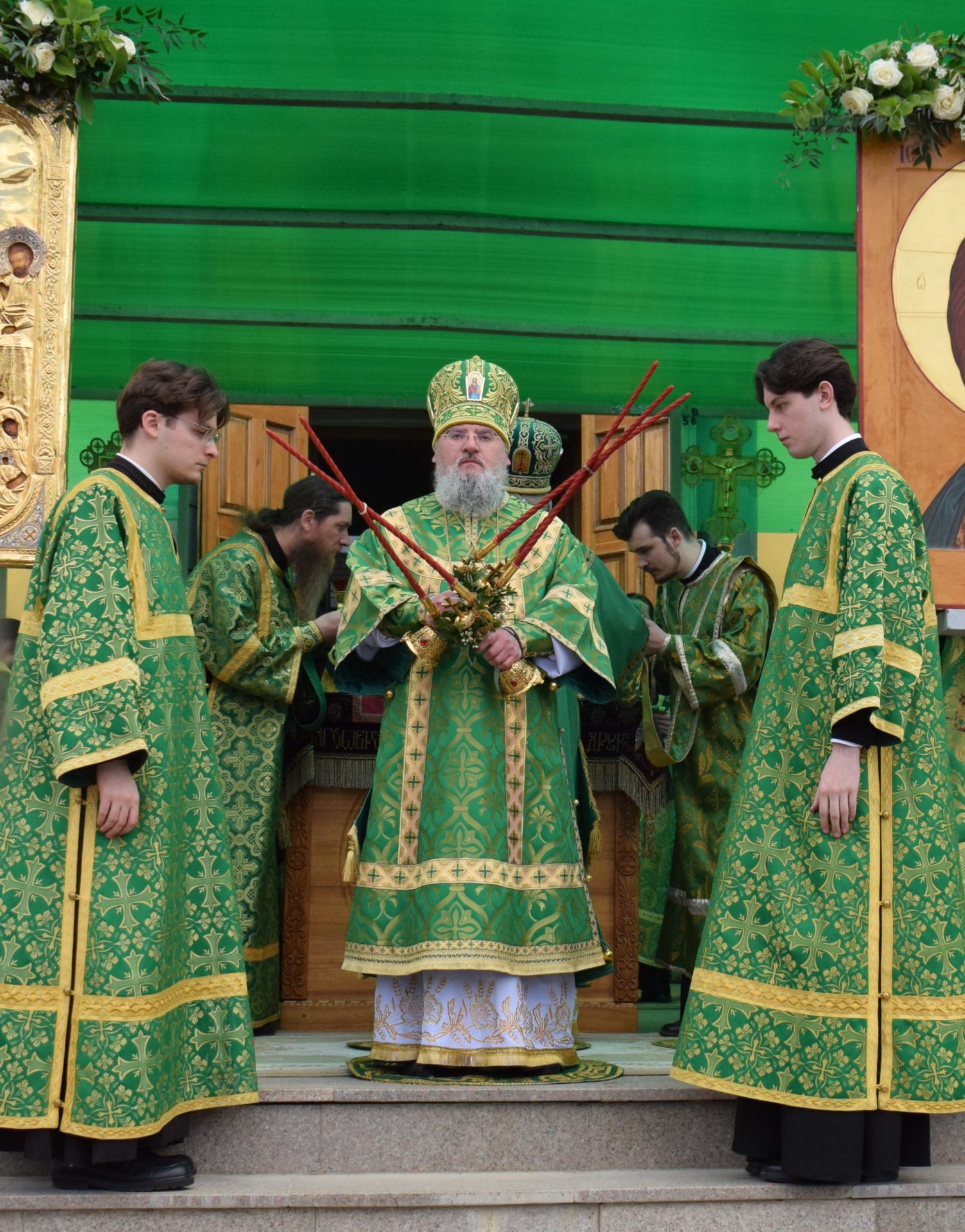 По окончании Литургии вокруг обители был совершен праздничный крестный ход до монастырского источника, где было совершено малое освящения воды.