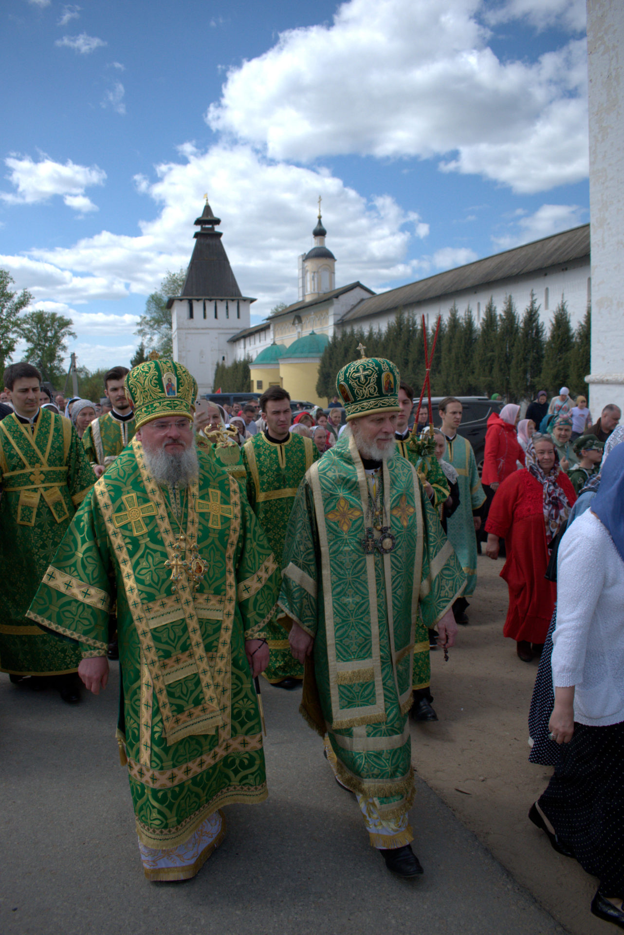 Завершая богослужение, митрополит Климент поздравил преосвященных архипастырей, братию монастыря и всех паломников с праздником Пасхи и днем памяти преподобного Пафнутия, игумена Боровского и всея России Чудотворца и произнес проповедь.