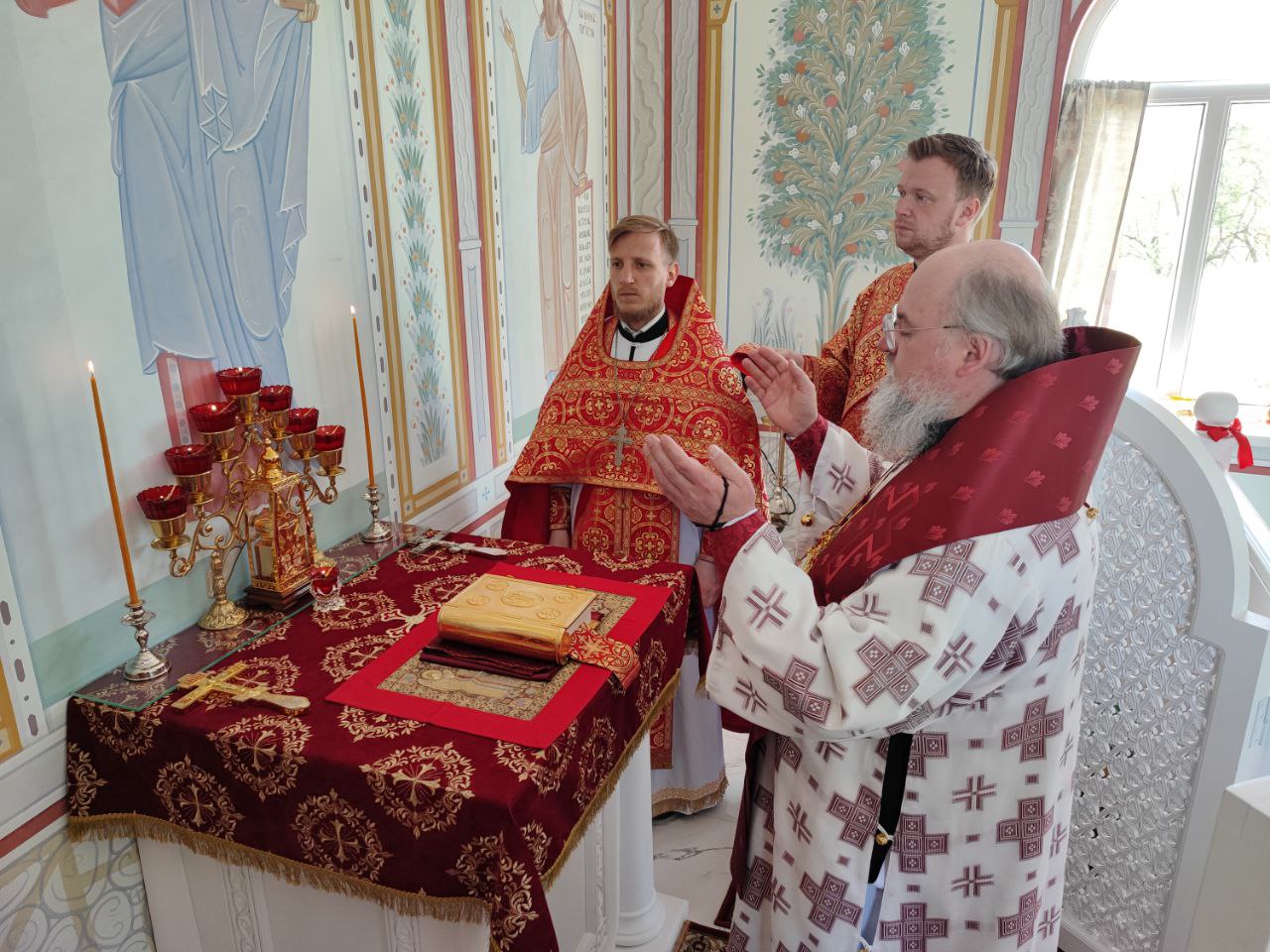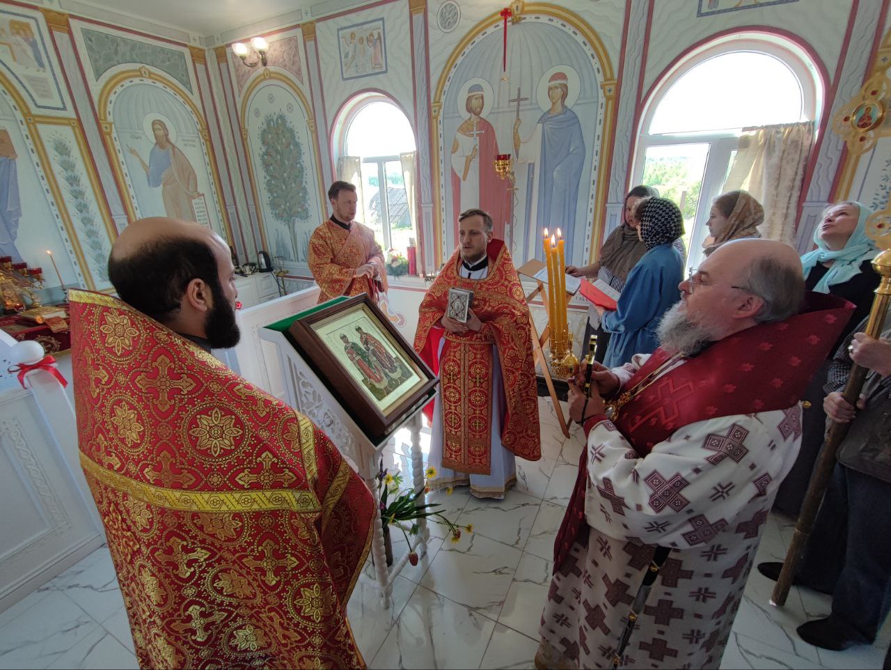 Весной 2017 года вставлены окна, и началась внутренняя отделка. Был сделан потолок, установлен теплый пол и оштукатурены стены. Весной и летом 2018 года полностью закончили внешнюю отделку. Первый молебен был проведен в середине декабря 2018 года. После чего раз в месяц священник Лев Шиповский, которому было поручено окормление прихода, совершал молебны для местного населения. Отцом Львом был найден человек, который взялся расписывать храм. Иконописец из Москвы, Олег. Им было полностью проработано внутреннее убранство и выбран стиль оформления алтаря.