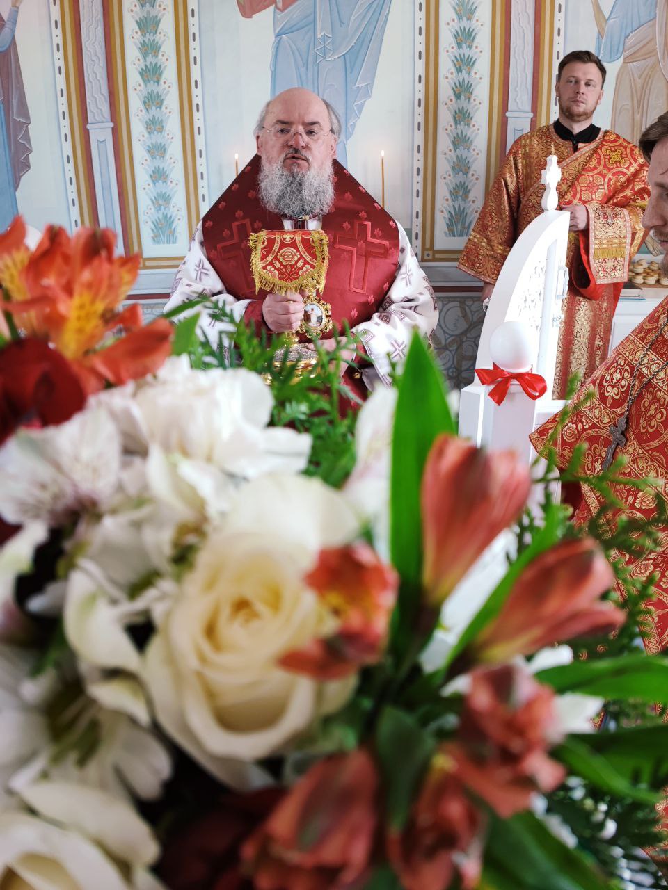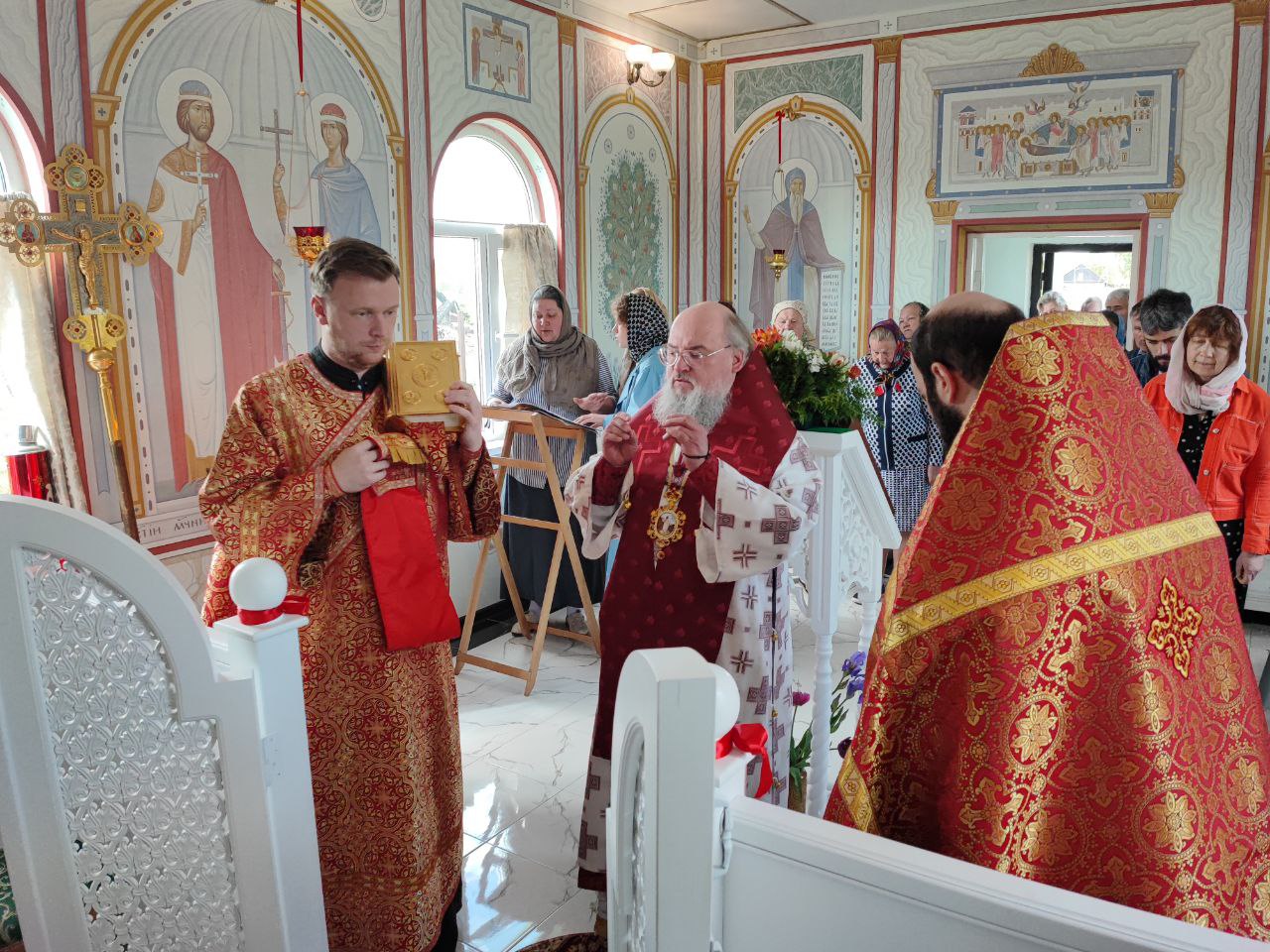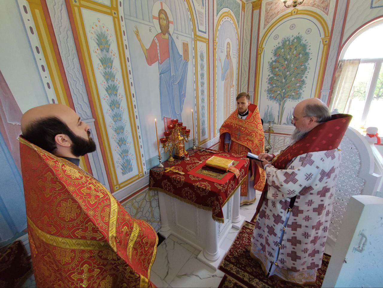 Архипастырю сослужили: иерей Лев Шиповский – настоятель храма, иерей Андрей Тавмосян и диакон Евгений Ковригин.