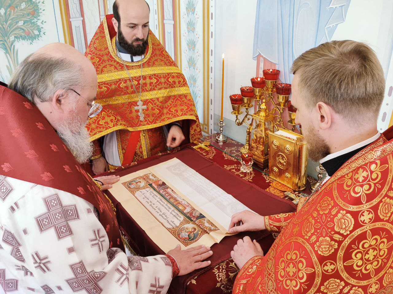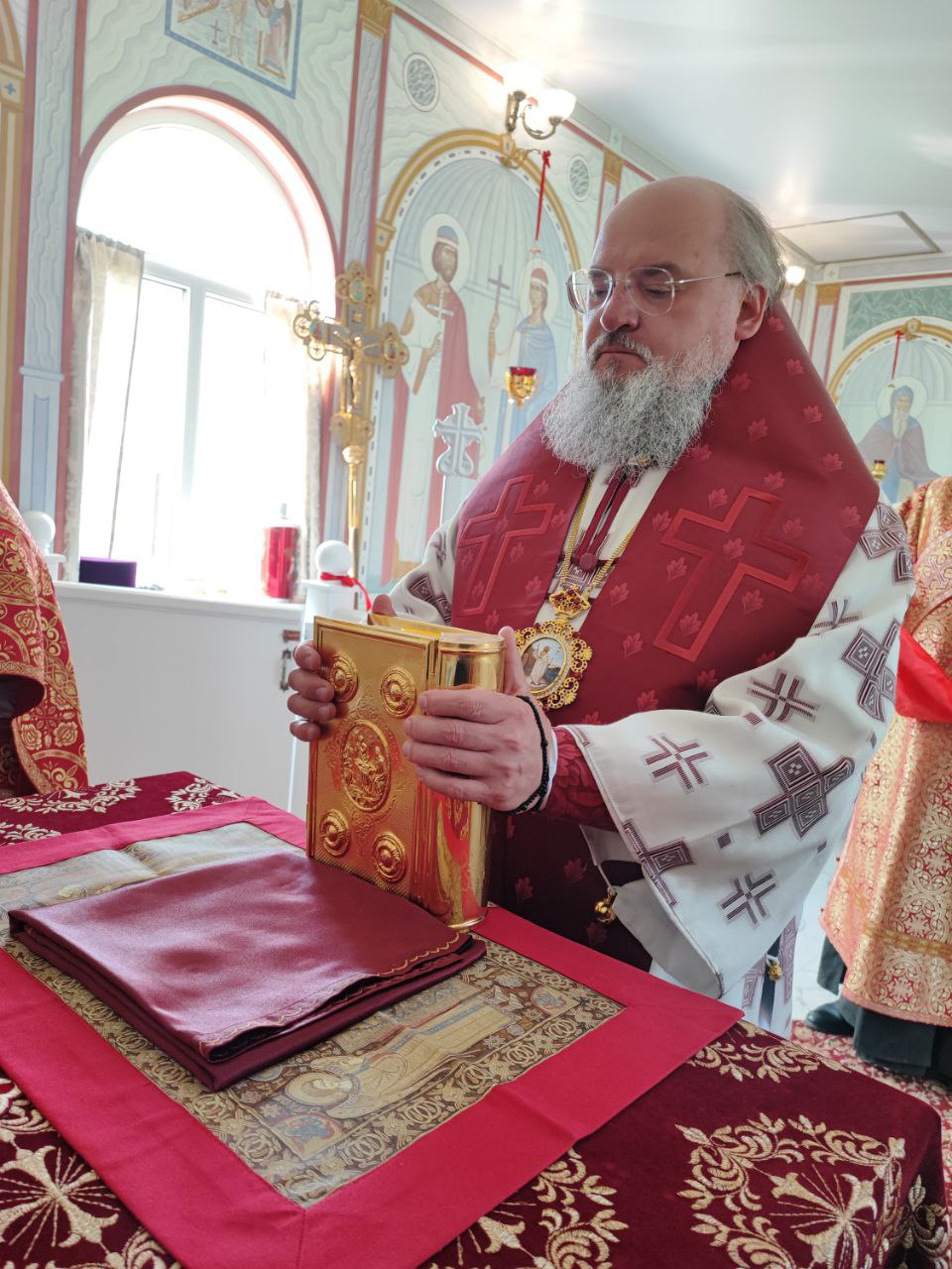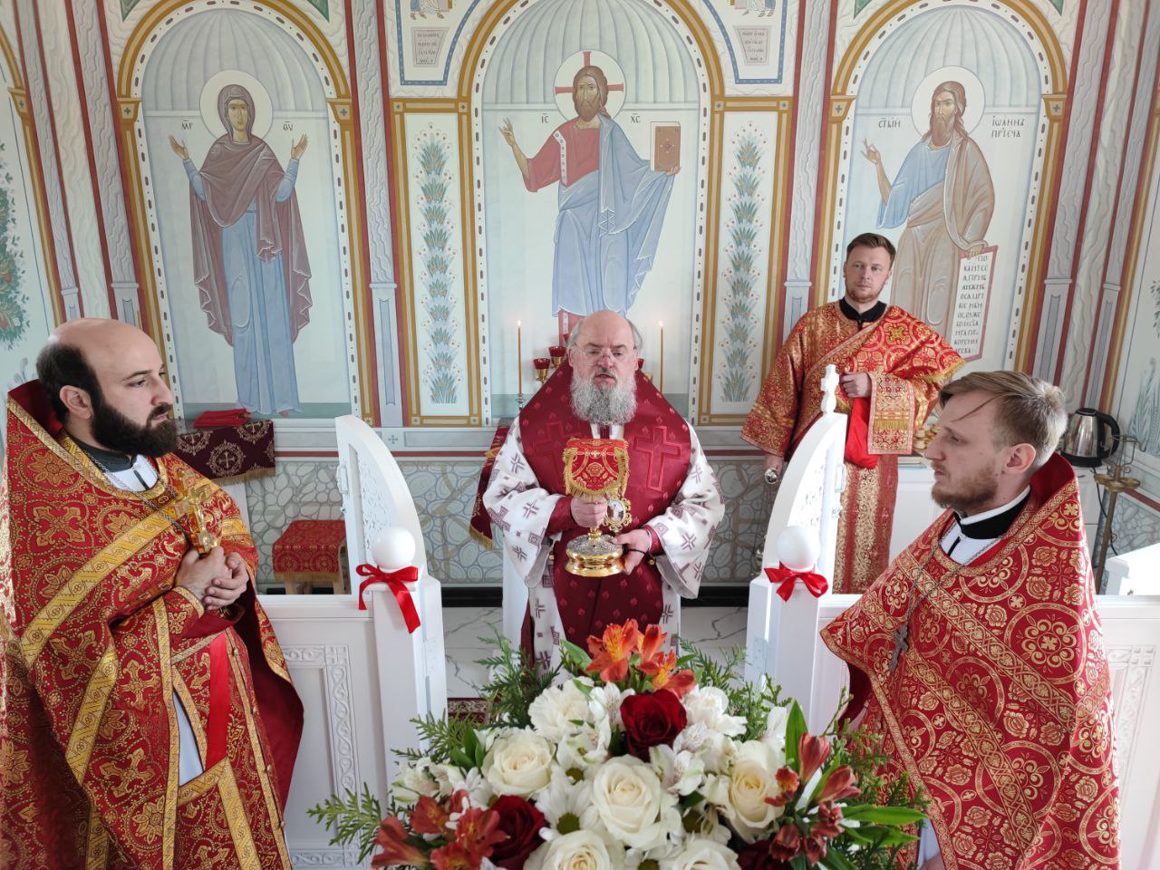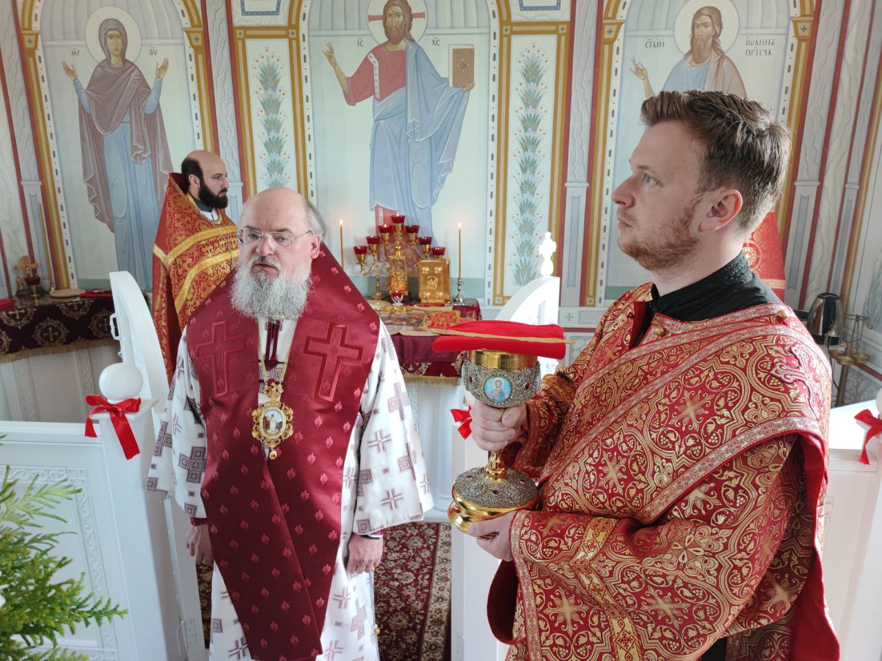 Архипастырю сослужили: иерей Лев Шиповский – настоятель храма, иерей Андрей Тавмосян и диакон Евгений Ковригин.