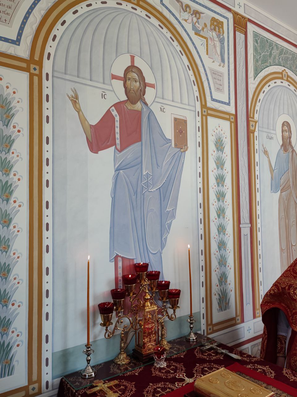 1-го мая 2019 года Олег приступил к росписи стен. 15 мая иереями  Львом Шиповским, Тихном Худяковым и Сергием Барыкиным был отслужен молебен в день памяти благоверных князей Бориса и Глеба и совершен крестный ход. Это событие совпало с Пасхальными днями. Летом были заказаны алтарная преграда и сам алтарь, изготовлением которых занимался мастер из Козельска. 9 июня была сделана отмостка и уложена плитка вокруг храма и вымощена тропинка к входу. В конце июля начало августа была закончена роспись стен и установлены алтарная преграда и сам алтарь. отец Лев постоянно проводил водоствятные молебны и требы для верующих.  Основные работы были закончены.