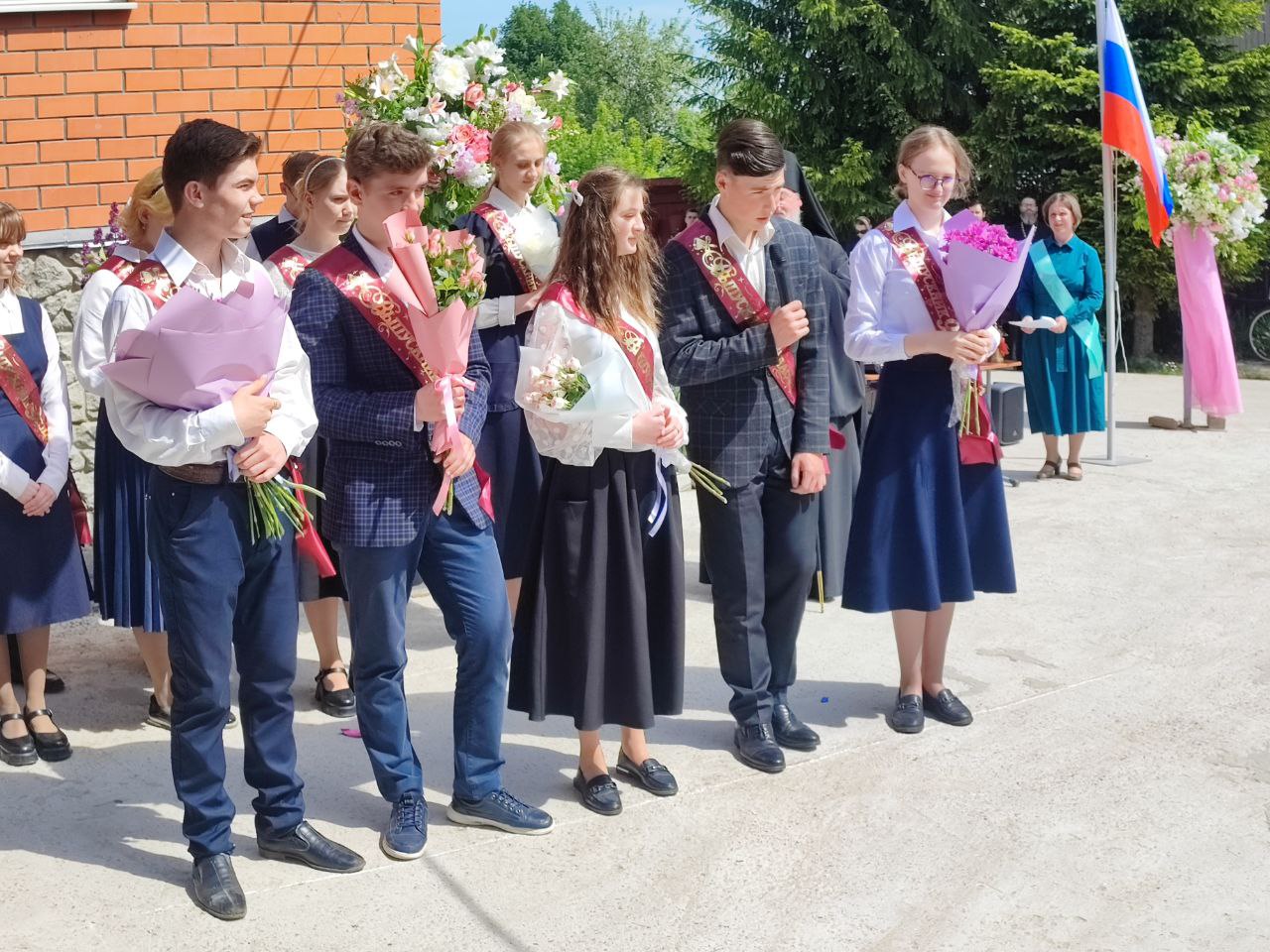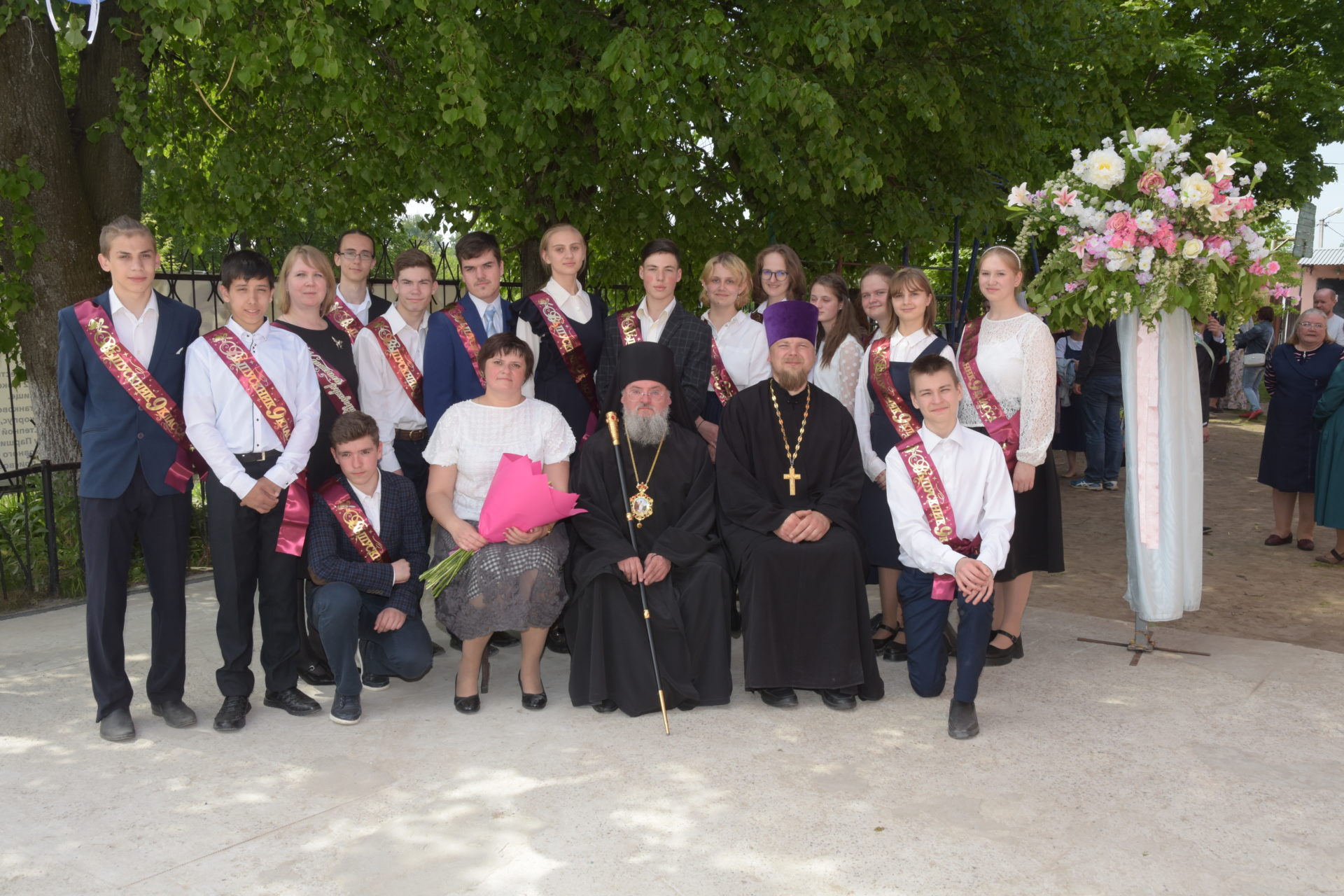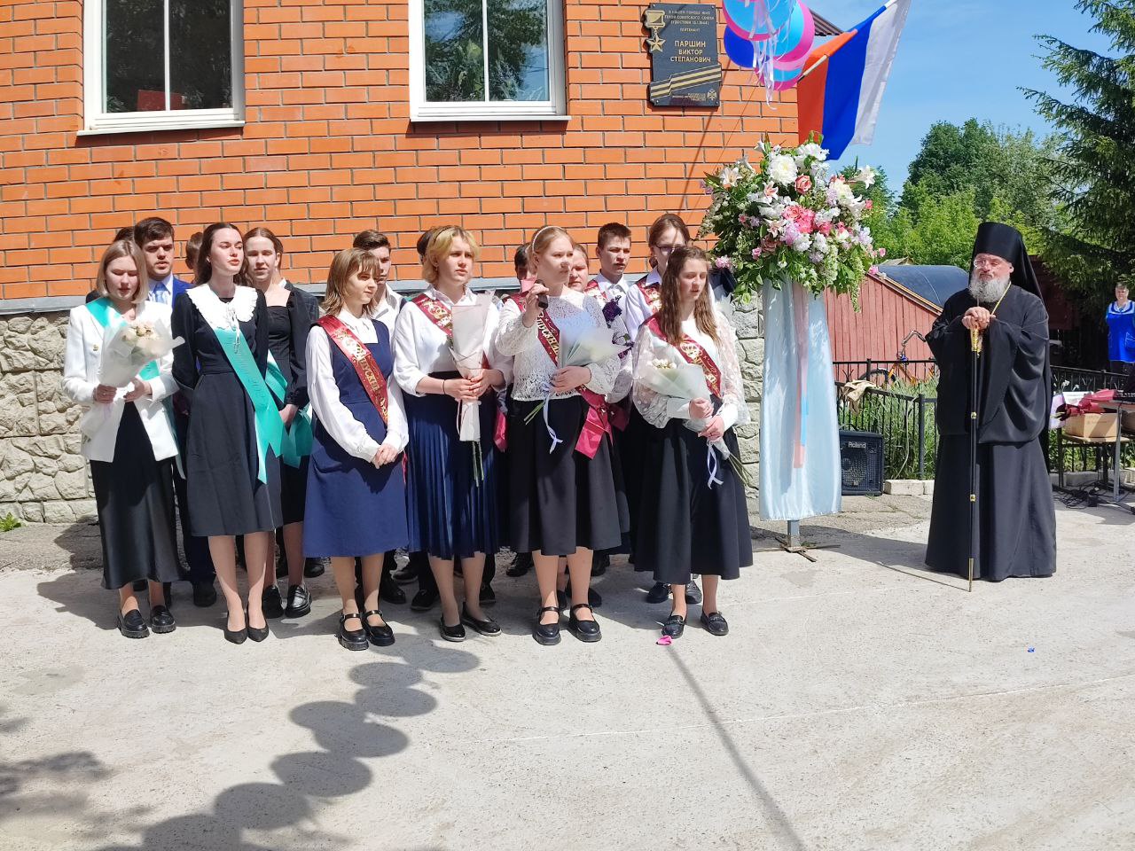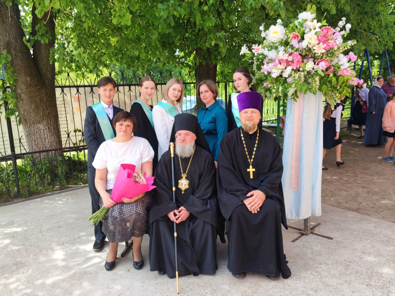 В ответ от выпускников прозвучали песня и благодарственные слова учителям и всем сотрудникам гимназии. По традиции, ребята подарили букеты цветов епископу, директору, духовнику и всем учителям.