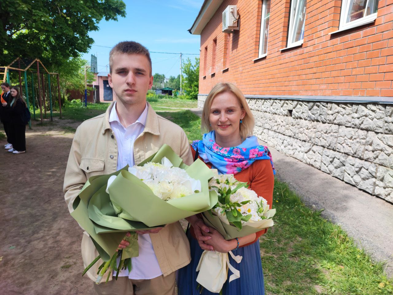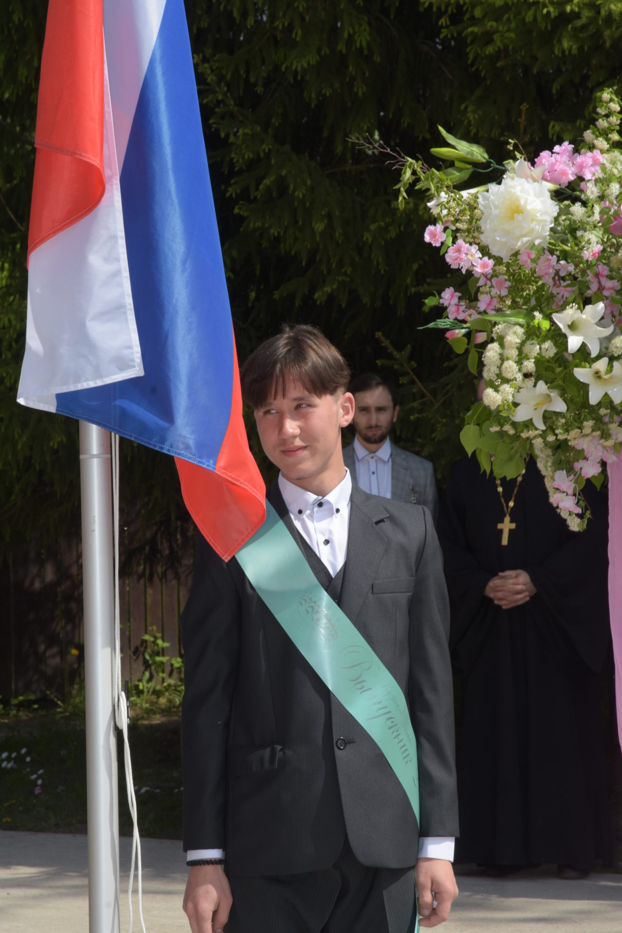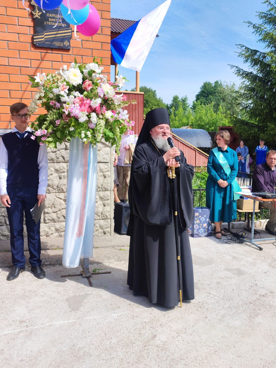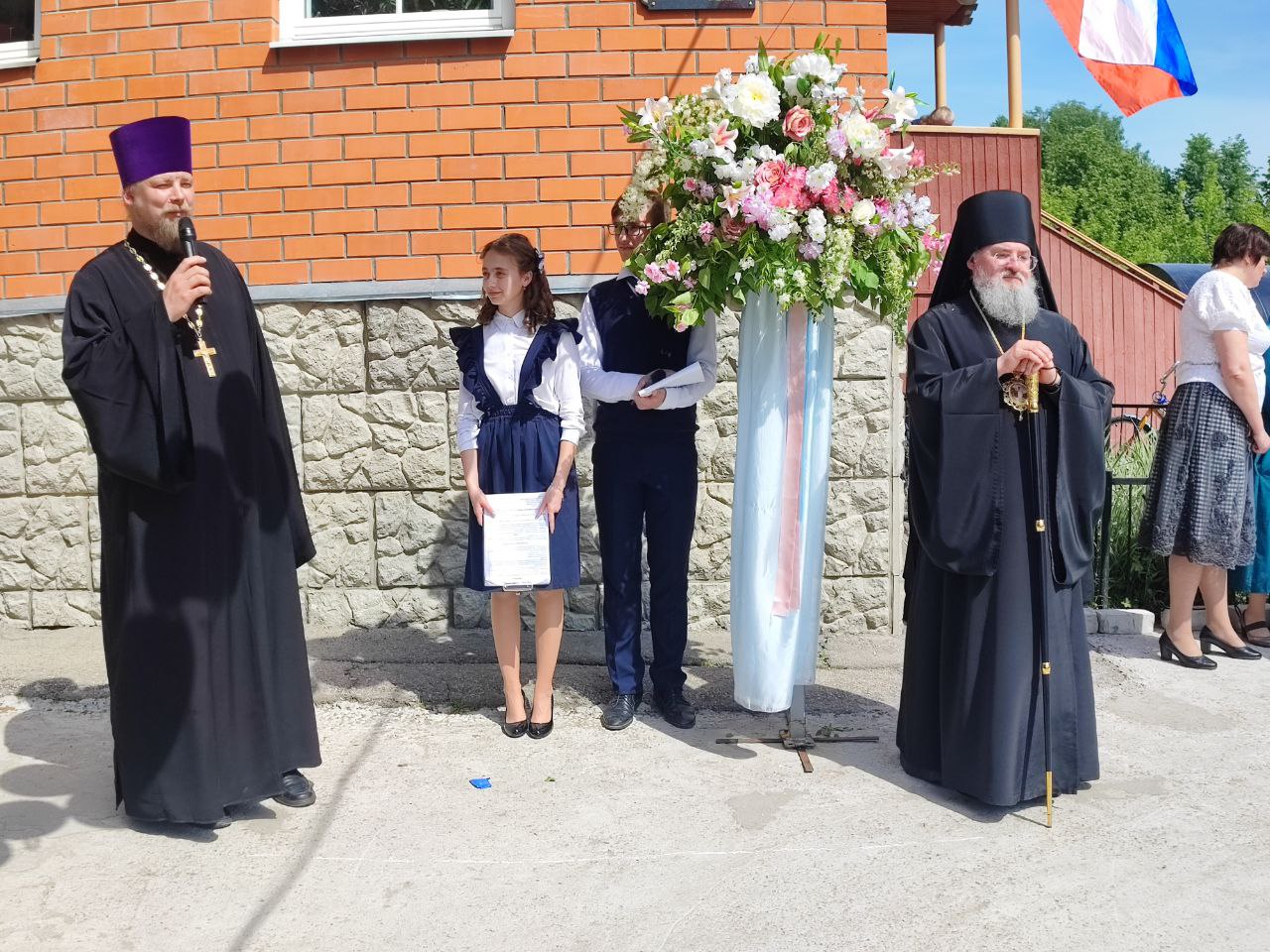 В ответ от выпускников прозвучали песня и благодарственные слова учителям и всем сотрудникам гимназии. По традиции, ребята подарили букеты цветов епископу, директору, духовнику и всем учителям.
