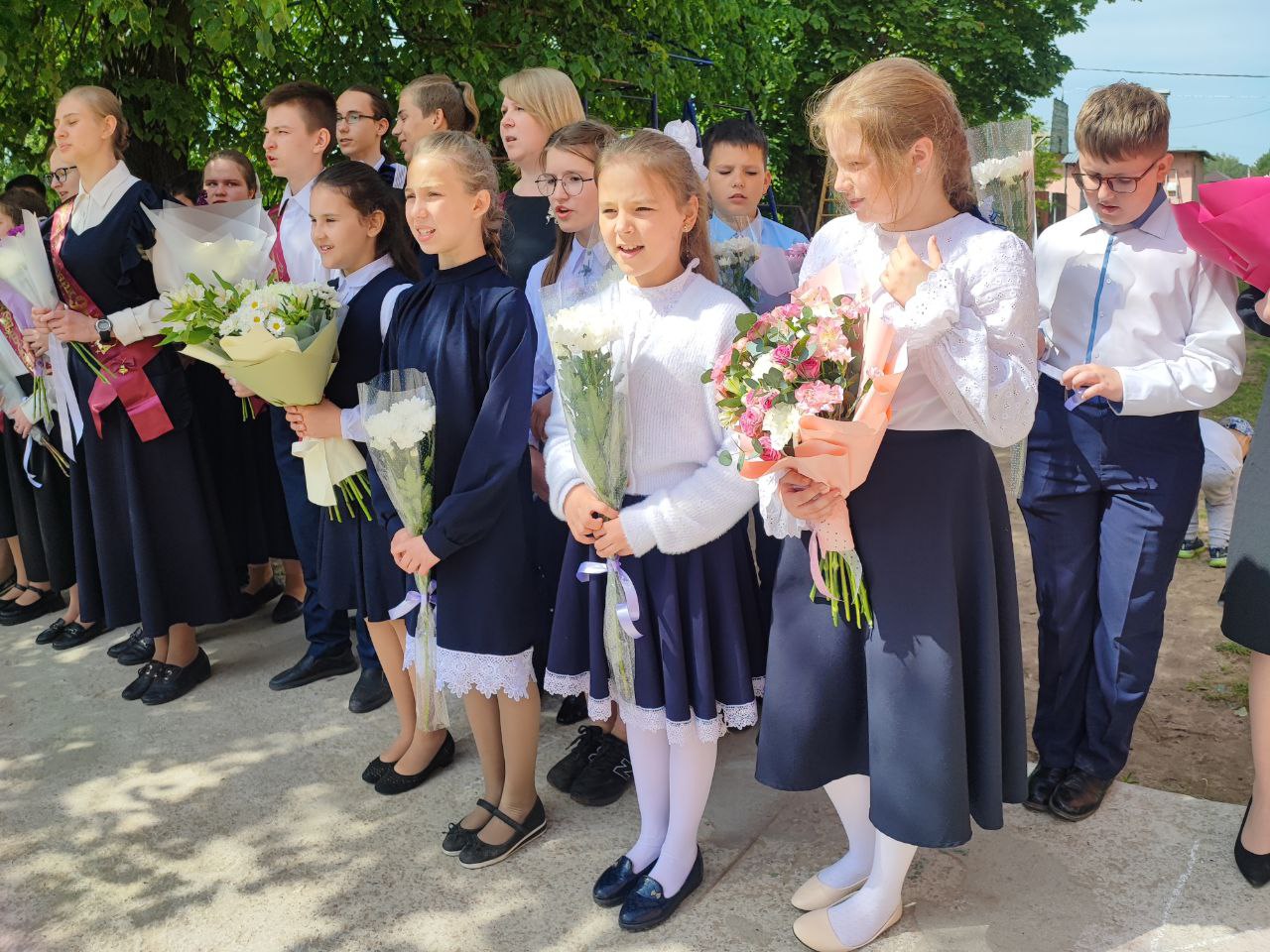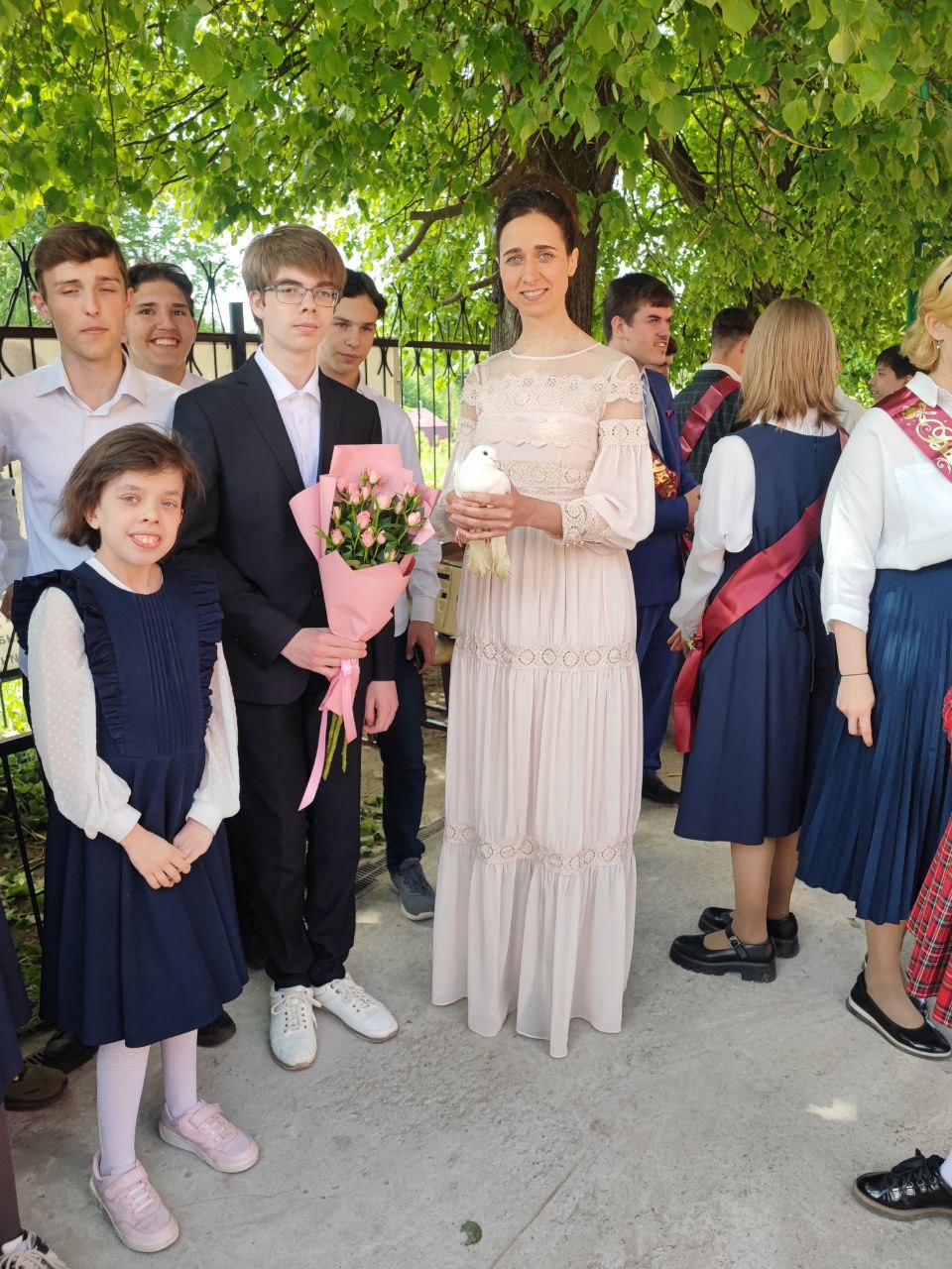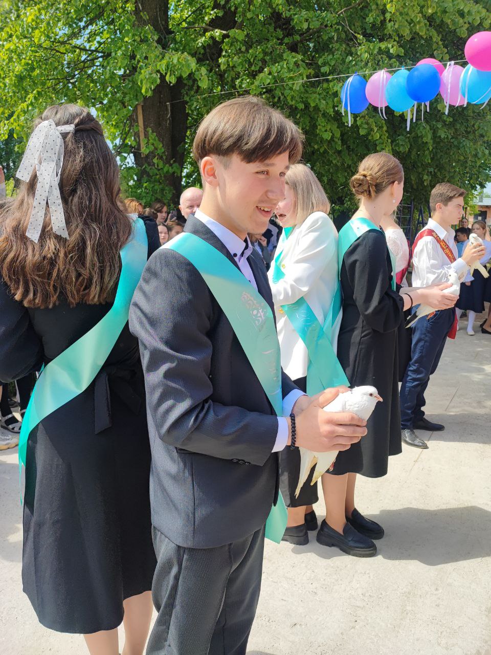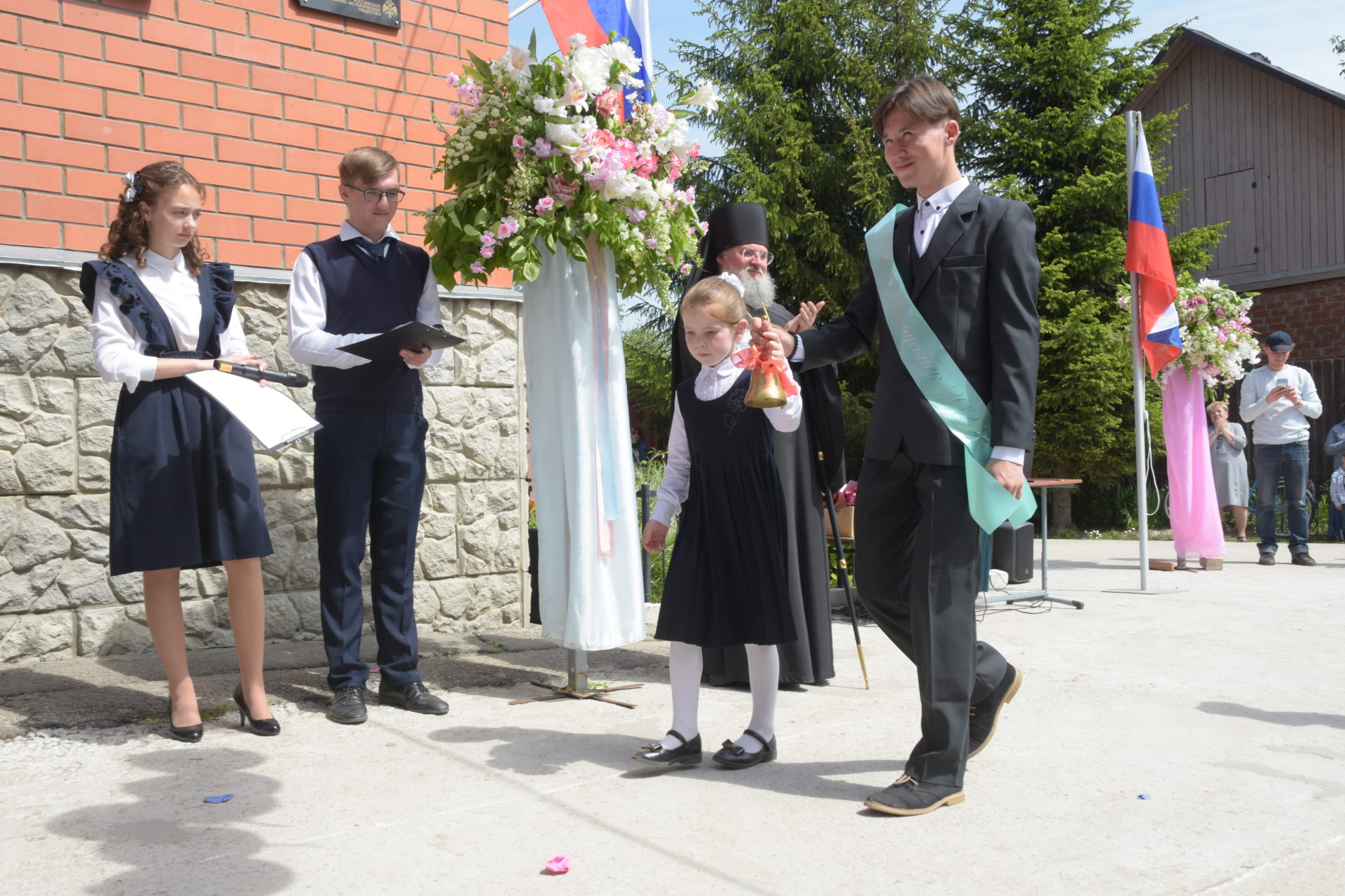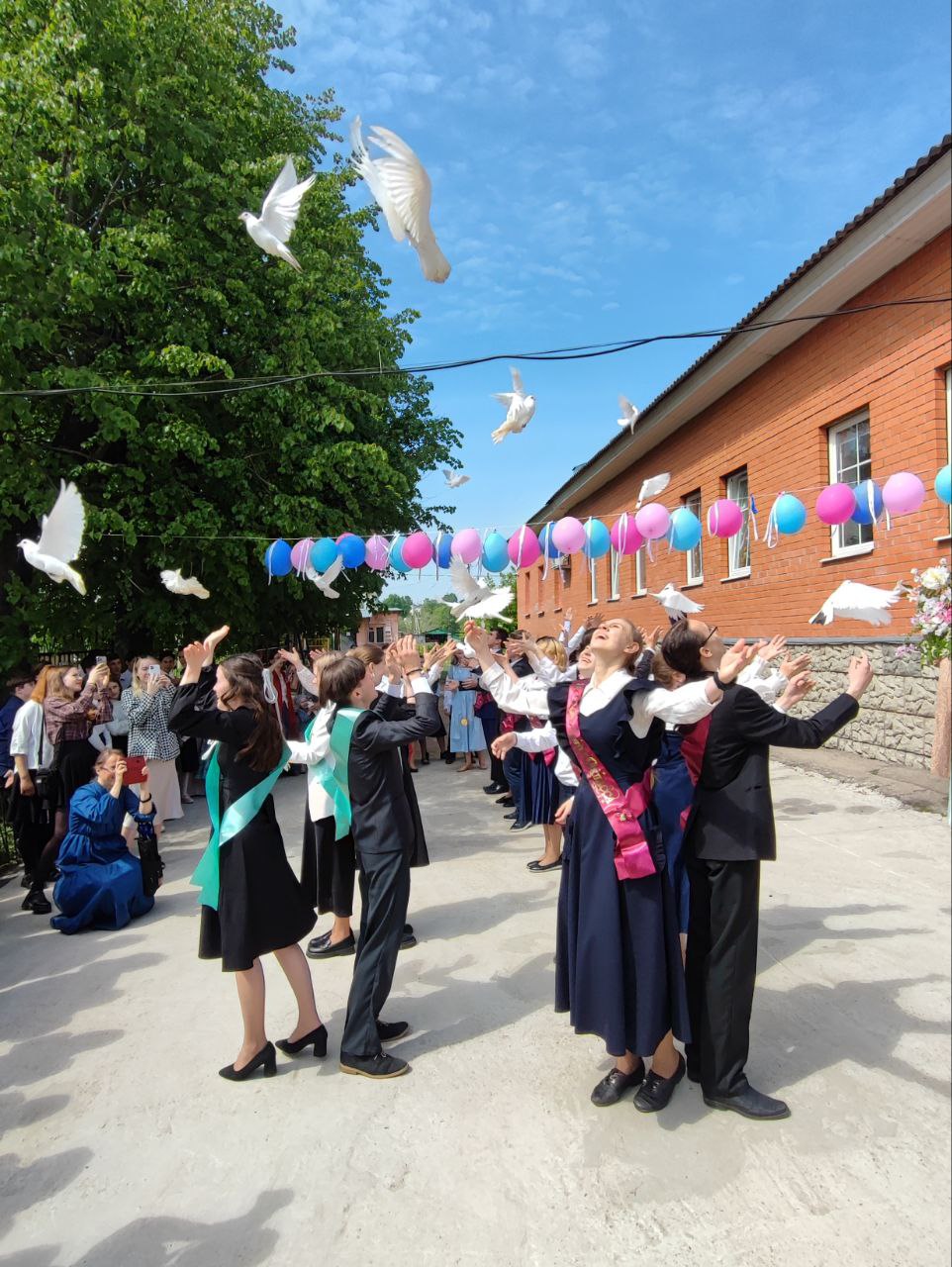 В завершении праздника, по сложившейся традиции, все выпускники выпустили голубей. И вот наступил торжественный момент – прозвучал последний звонок. Это почетное право было предоставлено выпускнику одиннадцатого класса Кузнецову Михаилу и первокласснице Земсковой Марфе.