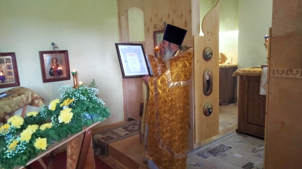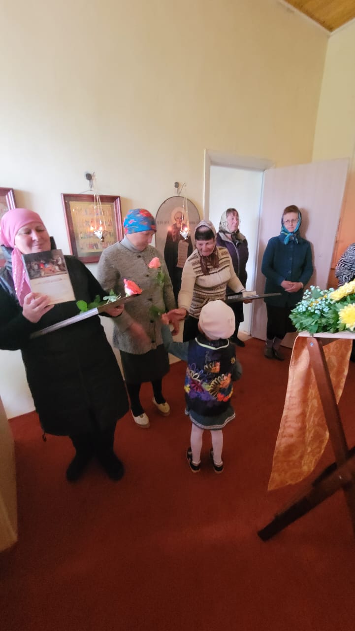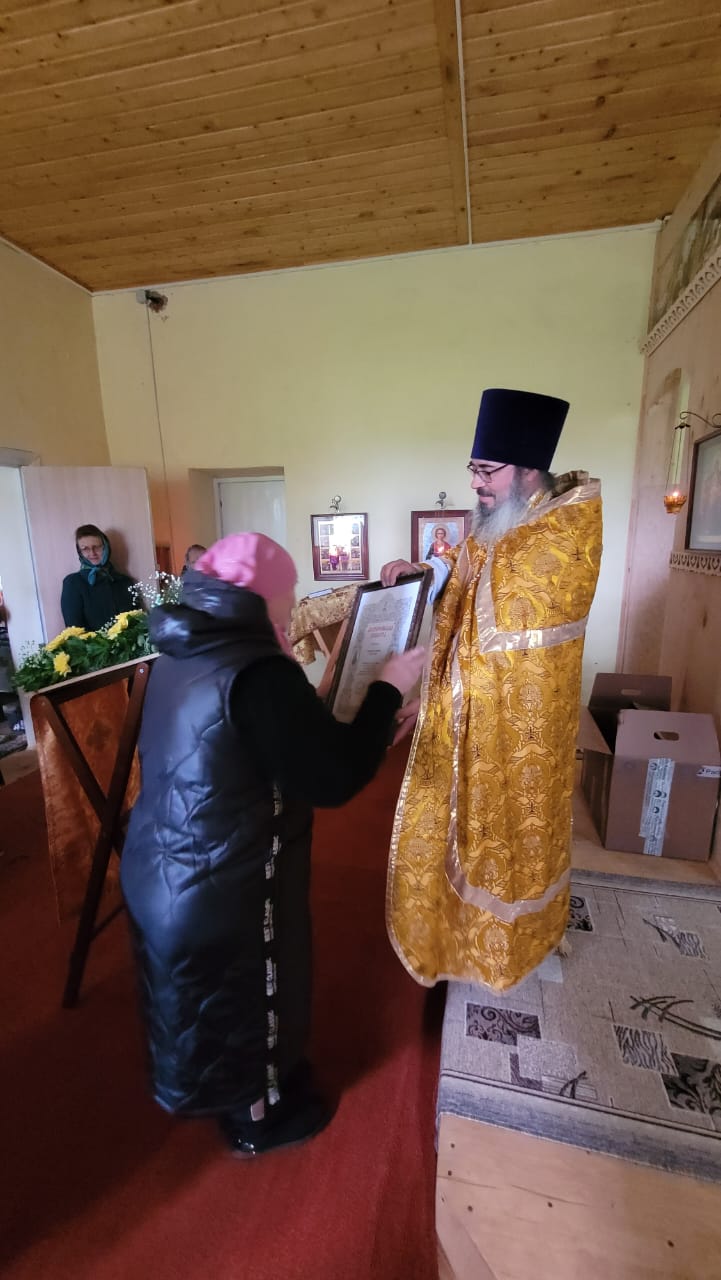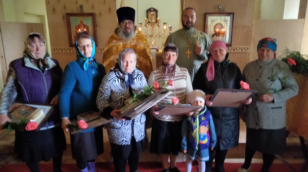 22 мая в селе Кирейково Ульяновского района встретили престольный праздник. Остатки храма в честь святителя Николая архиепископа Мир Ликийских были возвращены верующим пять лет назад и сразу же прихожане начали работу по созданию помещения для молитвы. Был отделен алтарь, облагорожены старинные стены и после освящения весной этого года началась литургическая жизнь. Божественную литургию в престольный день совершили благочинный Ульяновского округа Козельской епархии протоиерей Максим Садовников и настоятель прихода иерей Стахий Гайсин. После первого, за прошедшие 90 лет после разорения, крестного хода, настоятелем были вручены Архиерейские грамоты людям, которые послужили восстановлению храма. А это без малого вся женская часть села Кирейково. Всем им были вручены православные календари и цветы.