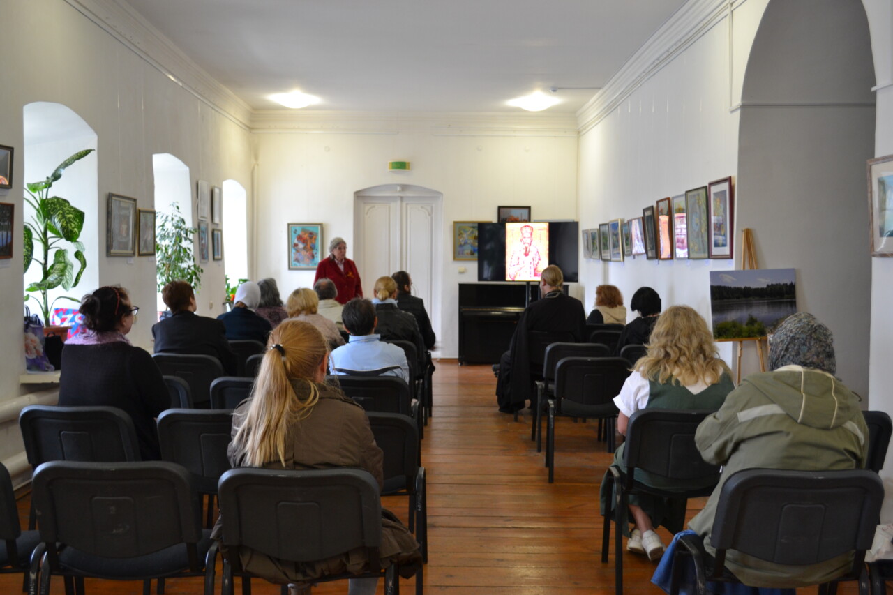 Выступавшая следом Галина Эдуардовна познакомила слушателей с биографией святого, чья «жизнь была сложна, а душа велика». После на экране появились фотографии Николая Сербского и выдержки из его книг.