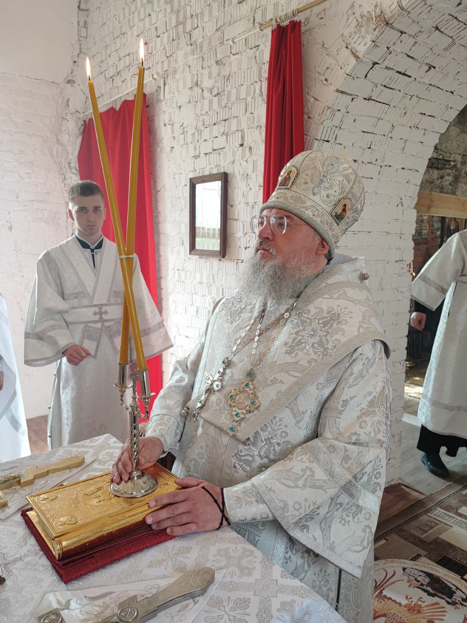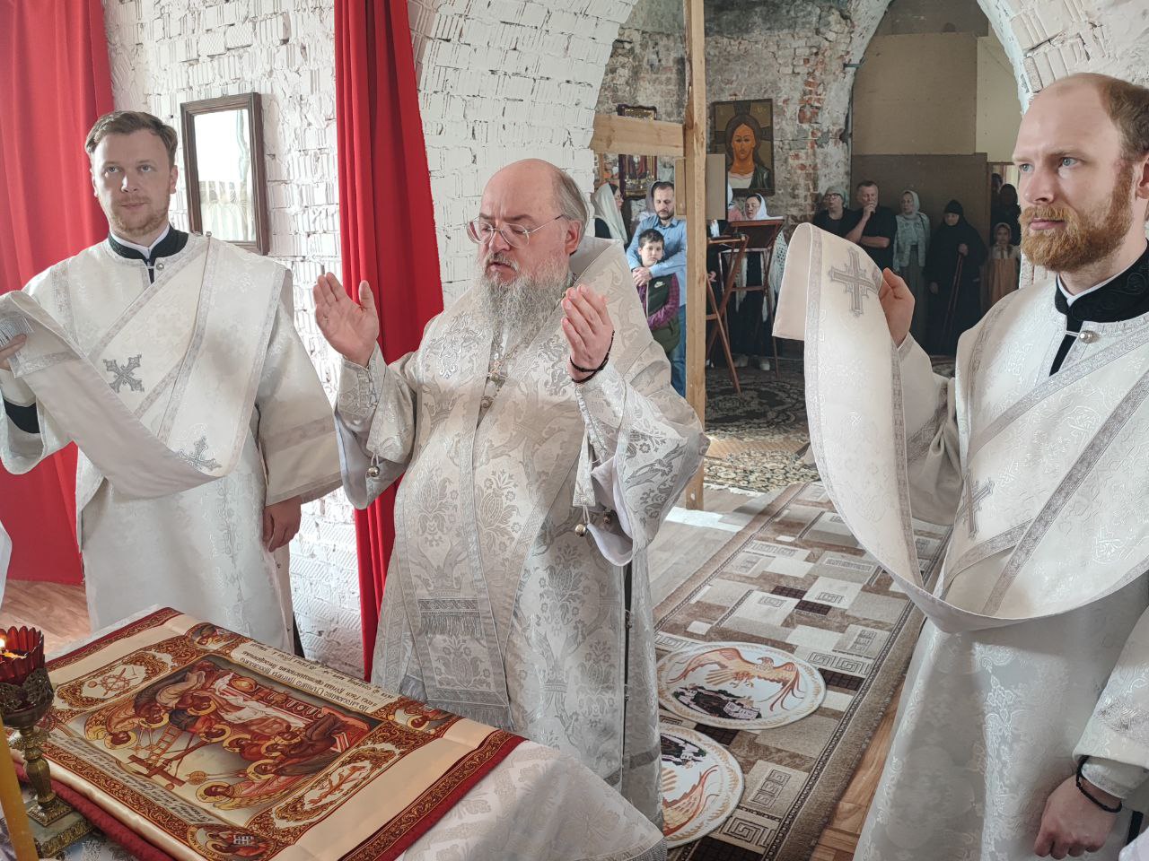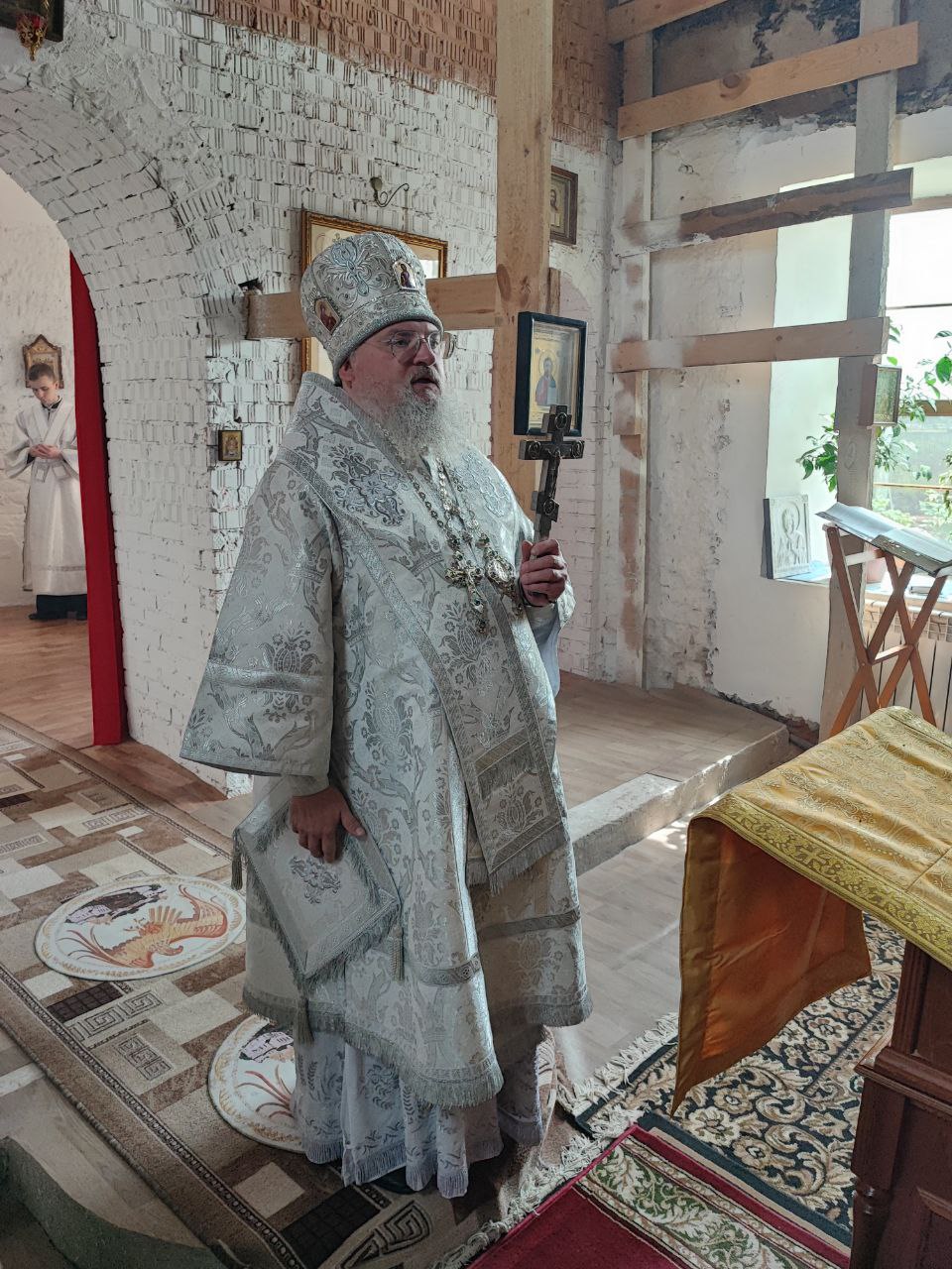 Архипастырю сослужили: протоиерей Антоний Хатунцев, иерей Ярослав Стрельников, диакон Евгений Ковригин и иеродиакон Лука (Старостин).