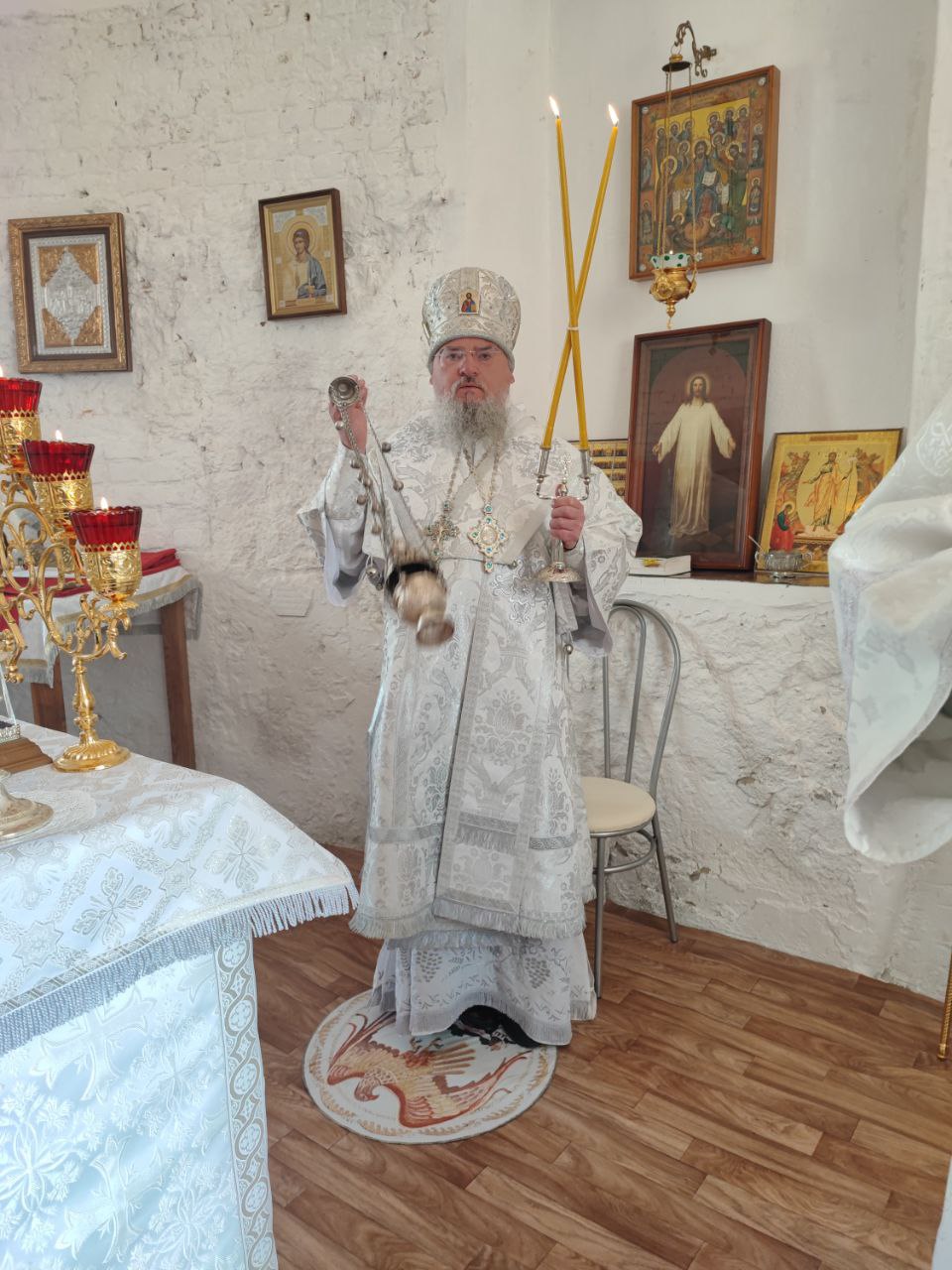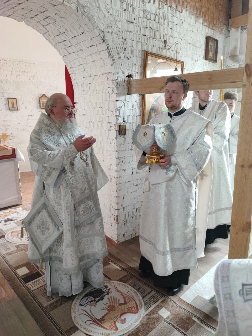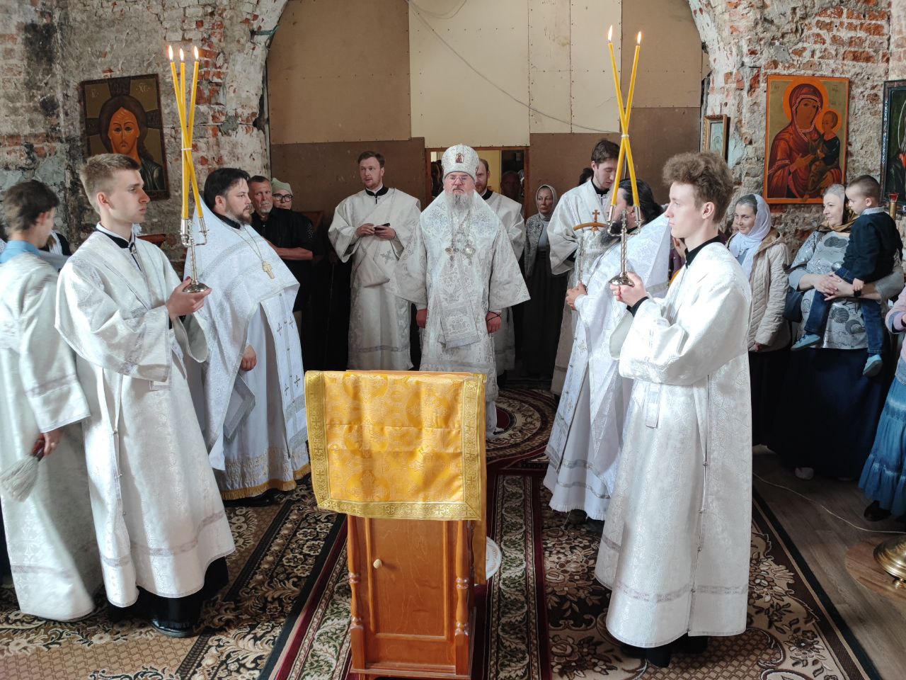 Архипастырю сослужили: протоиерей Антоний Хатунцев, иерей Ярослав Стрельников, диакон Евгений Ковригин и иеродиакон Лука (Старостин).