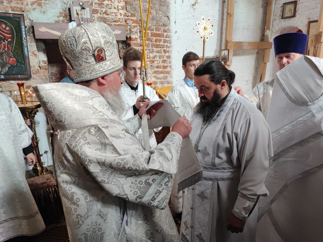 На Малом входе клирик обители иерей Ярослав Стрельников был удостоен права ношения набедренника.