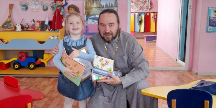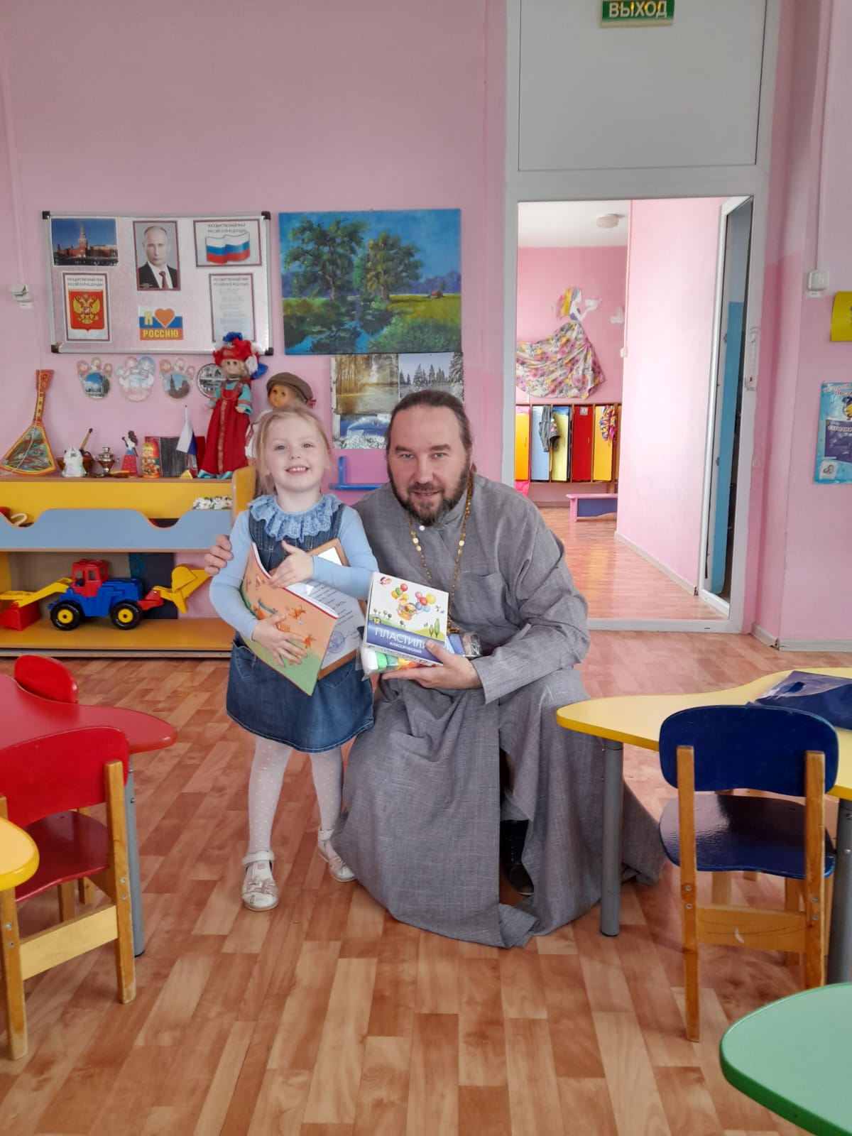 Протоиерей Максим Садовников, настоятель храма Воскресения Христова в селе Ульяново, поблагодарил участницу выставки «Пасхальное Яйцо 2023» Косенкову Ксению, воспитанницу младшей группы «Фиалка» МКДОУ Детский Сад «Солнышко». Священник вручил памятные подарки ребёнку, за самую лучшую поделку. Ксения с бабушкой сделали необычное и интересное Пасхальное яйцо из… макарон! Батюшке очень понравился такой экспонат, а главное тонкая и кропотливая работа. Ксения была очень рада что её поделка принесла ей такие подарки, а остальные детки были очень заинтересованы Пасхальной выставкой.