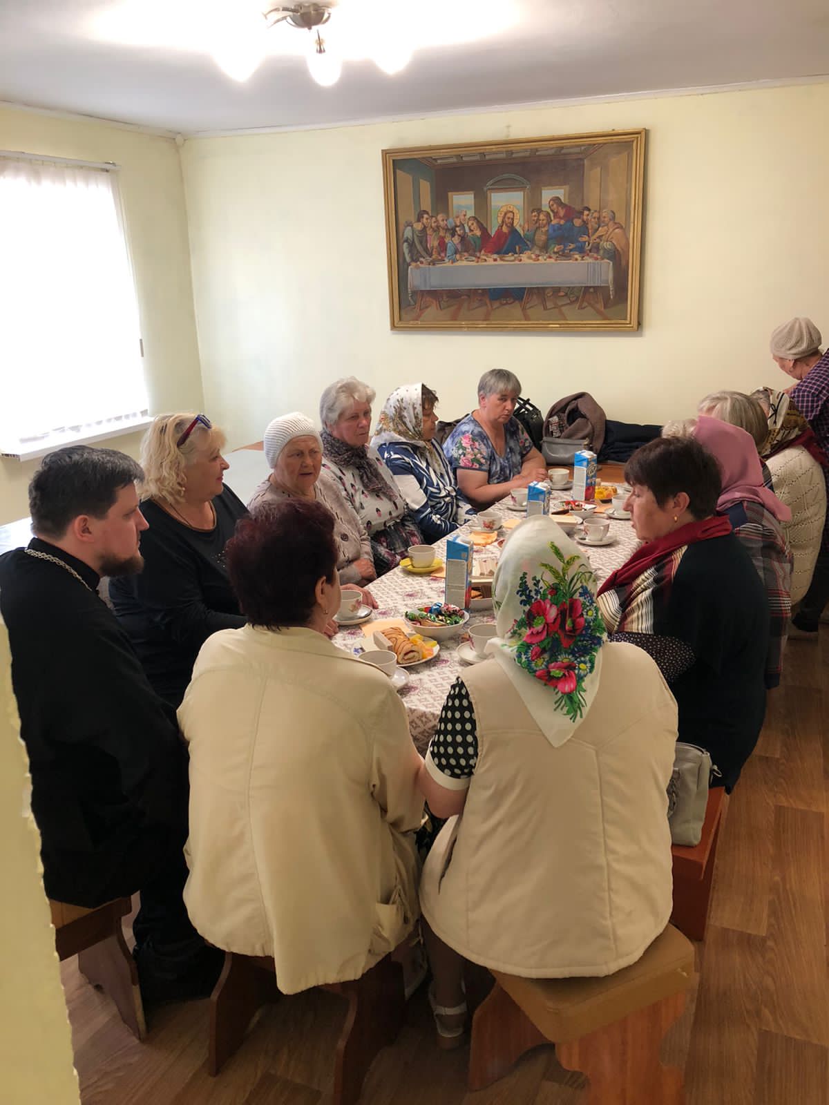 В завершении экскурсии по доброй традиции в приходской трапезной было организовано на чаепитие, где в теплой и радушной обстановке прошло оживленное общение с клириком храма иереем Иоанном Майоровым. В беседе с батюшкой были затронуты темы о вечной жизни после смерти человека, о Священном писании. Священнослужитель также ответил на множественные вопросы присутствующих.