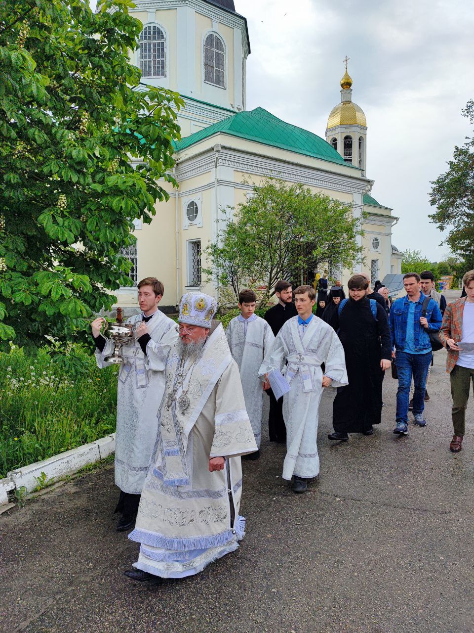 Архипастырю сослужили: наместник монастыря архимандрит Михаил (Семенов), благочинный округа протоиерей Владимир Бахаев, иеромонах Амвросий (Косоруков), протоиерей Антоний Хатунцев, иеросхимонах Кукша (Никитин), иеромонах Филарет (Пчелов), иеромонах Ефрем (Ястребов), иерей Георгий Грачев, диакон Евгений Ковригин и иеродиакон Лука (Старостин).
