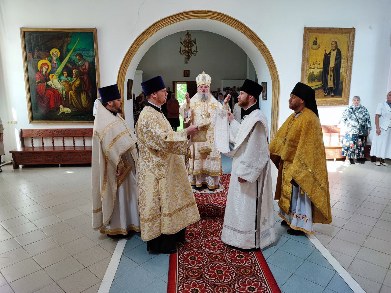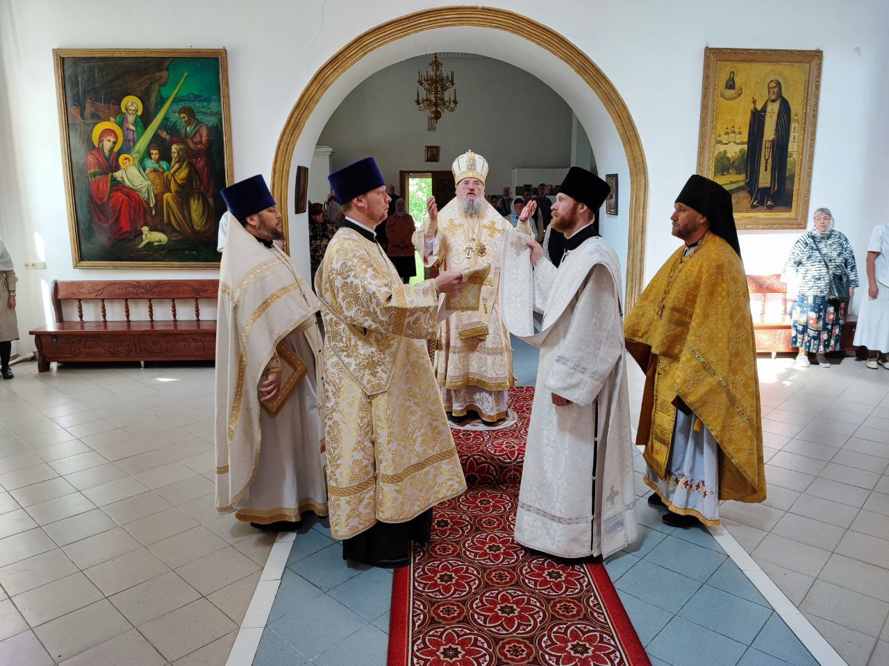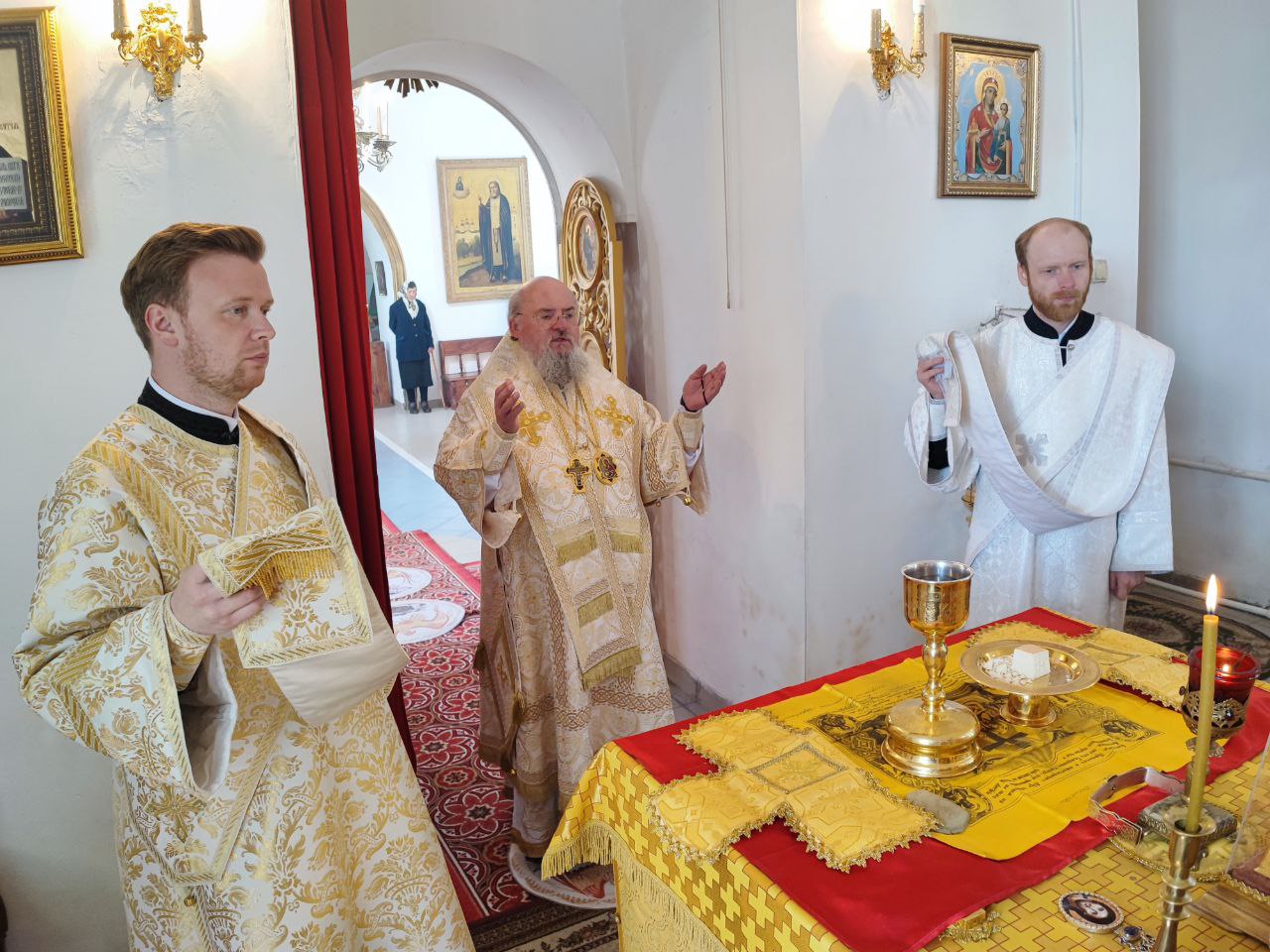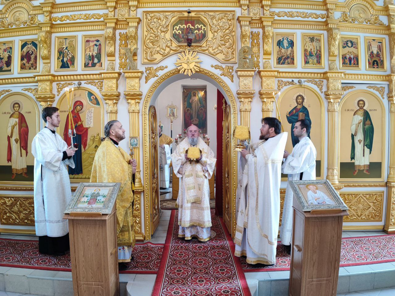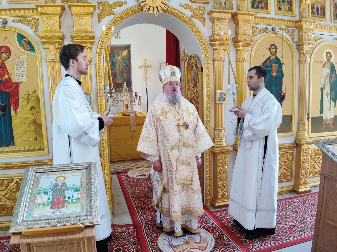 Архипастырю сослужили: протоиерей Антоний Хатунцев, иеромонах Иеремия (Ильченко) – настоятель прихода, диакон Евгений Ковригин и иеродиакон Лука (Старостин).