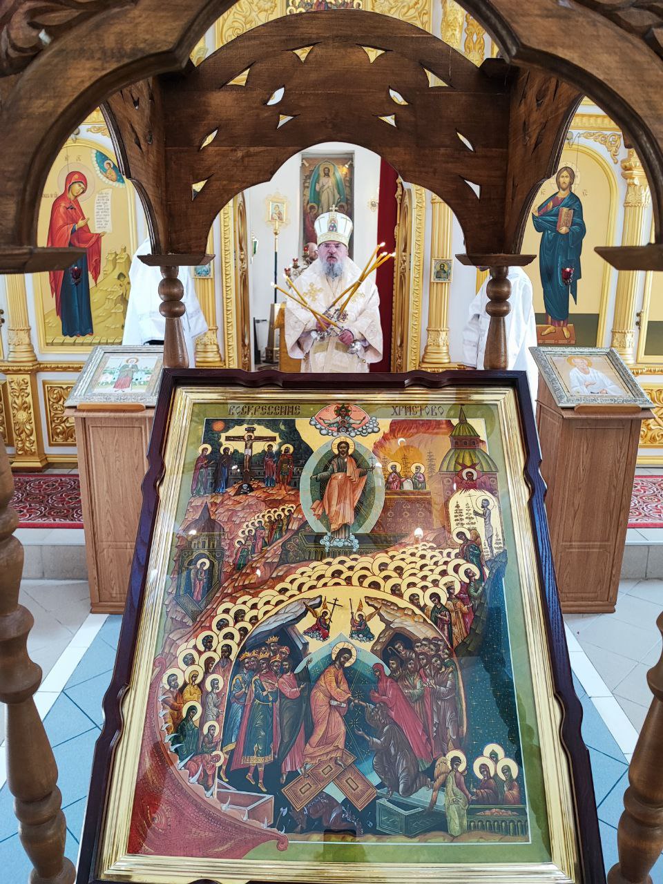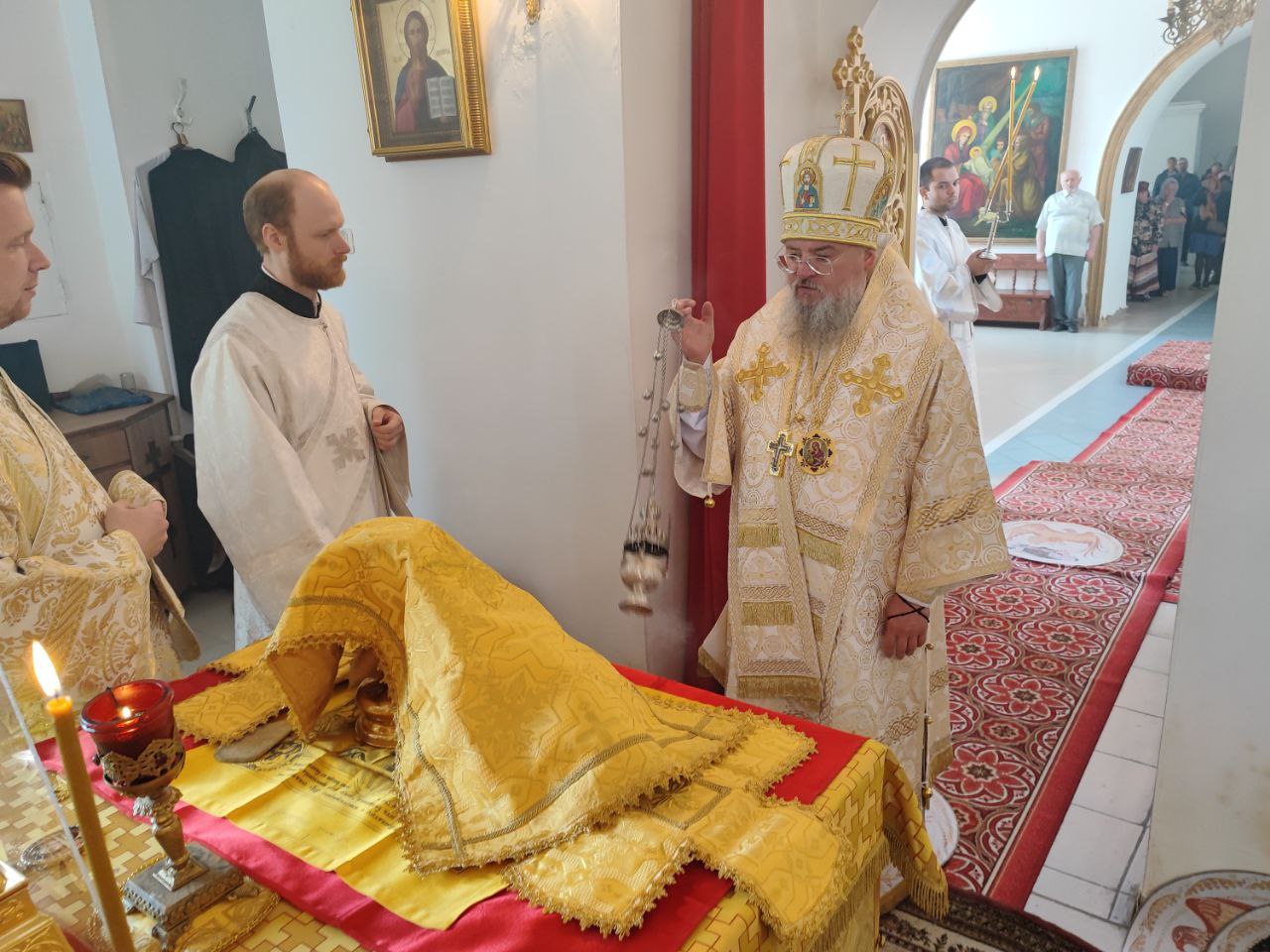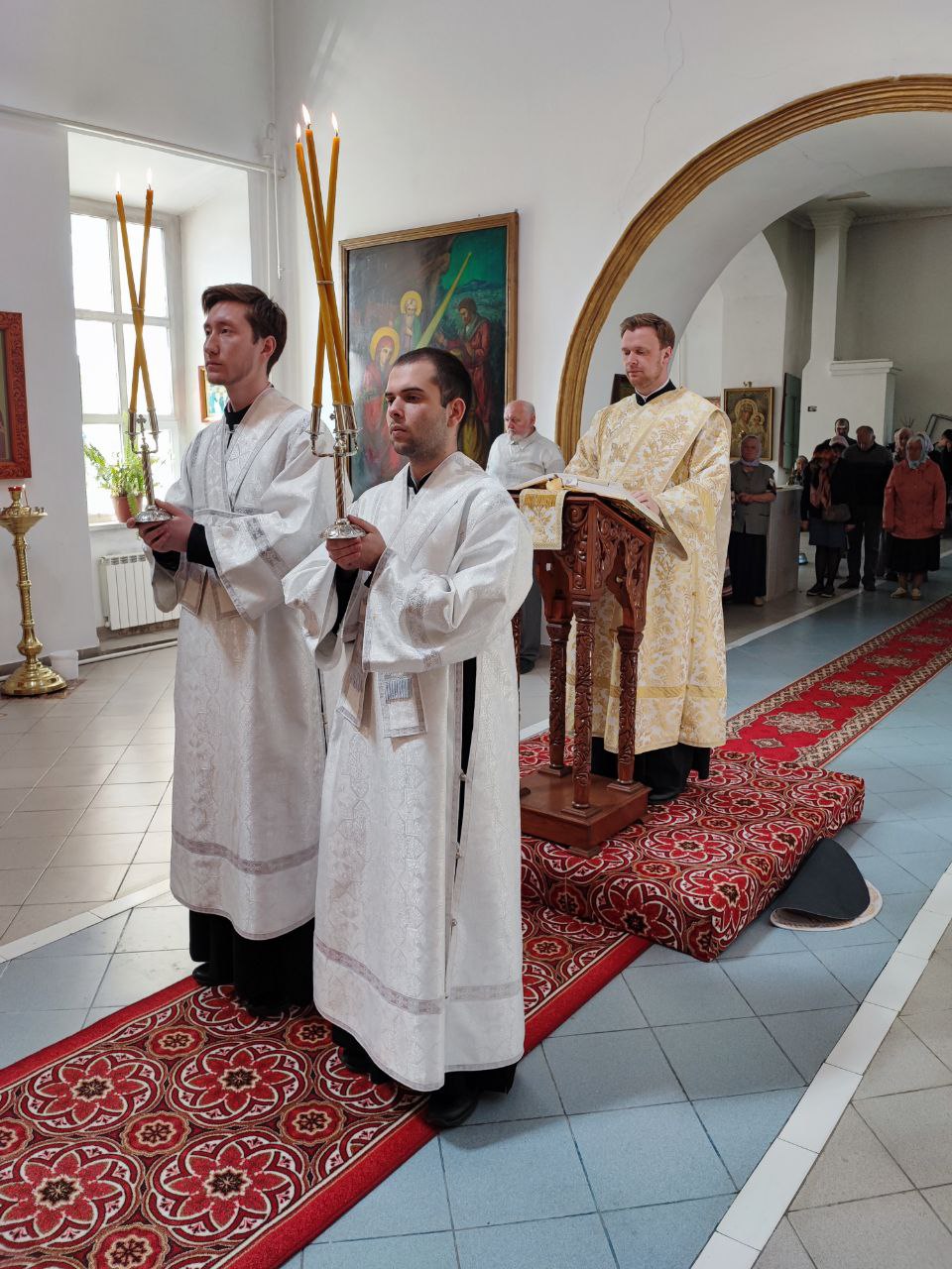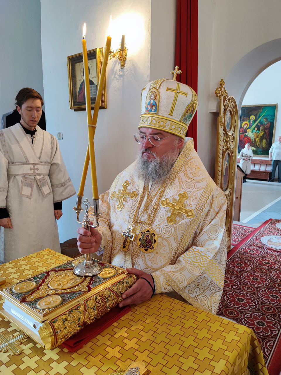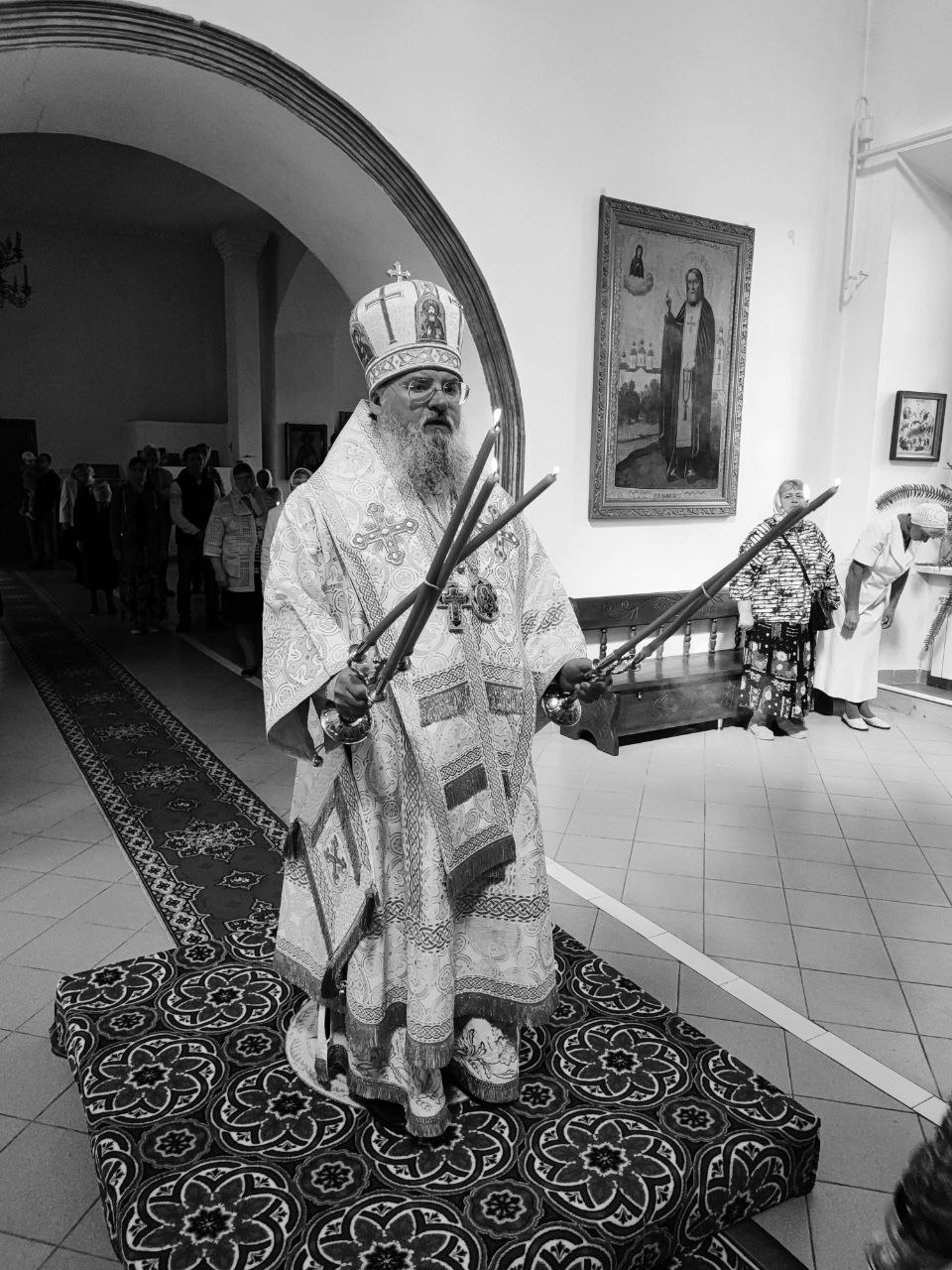 Архипастырю сослужили: протоиерей Антоний Хатунцев, иеромонах Иеремия (Ильченко) – настоятель прихода, диакон Евгений Ковригин и иеродиакон Лука (Старостин).