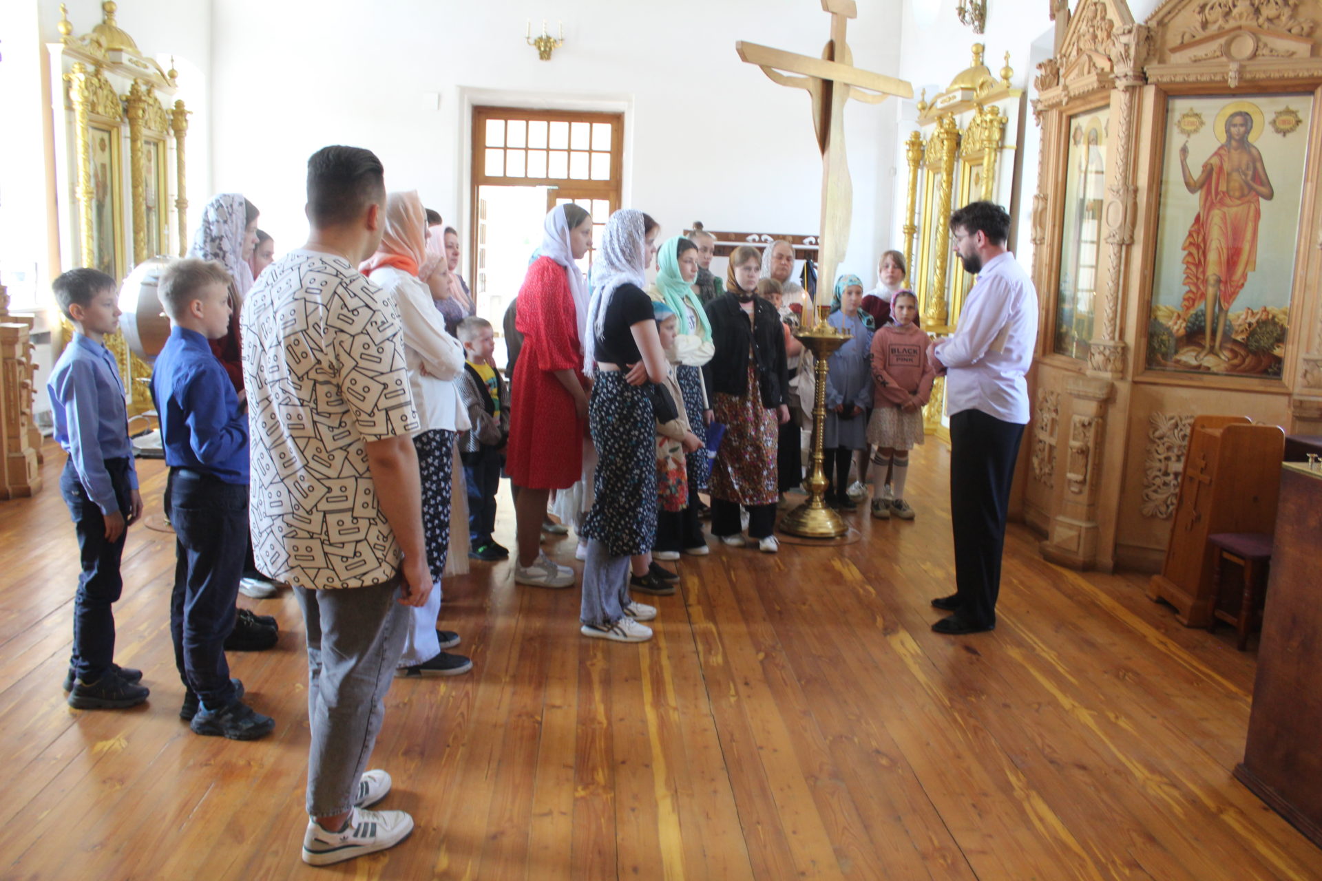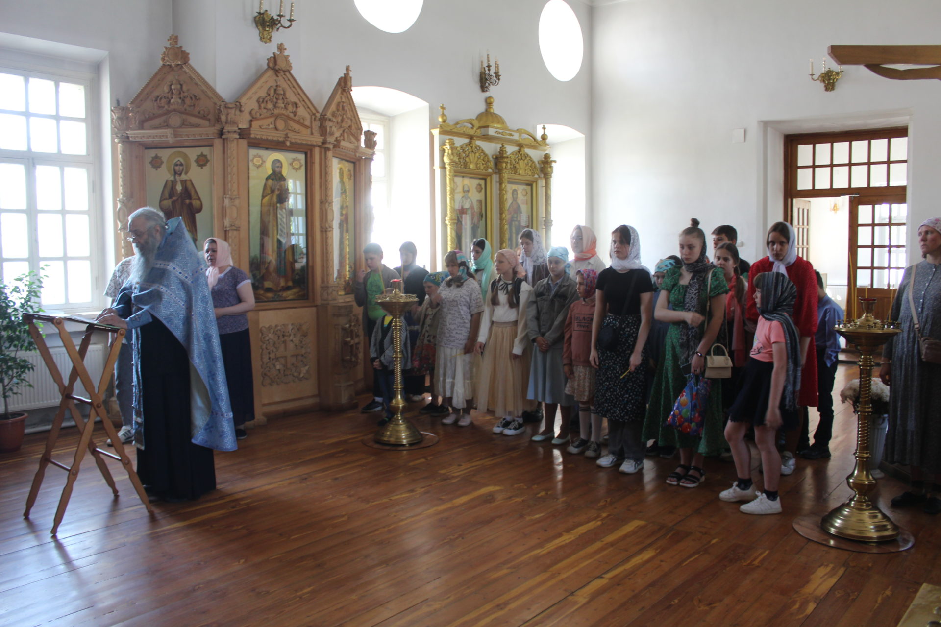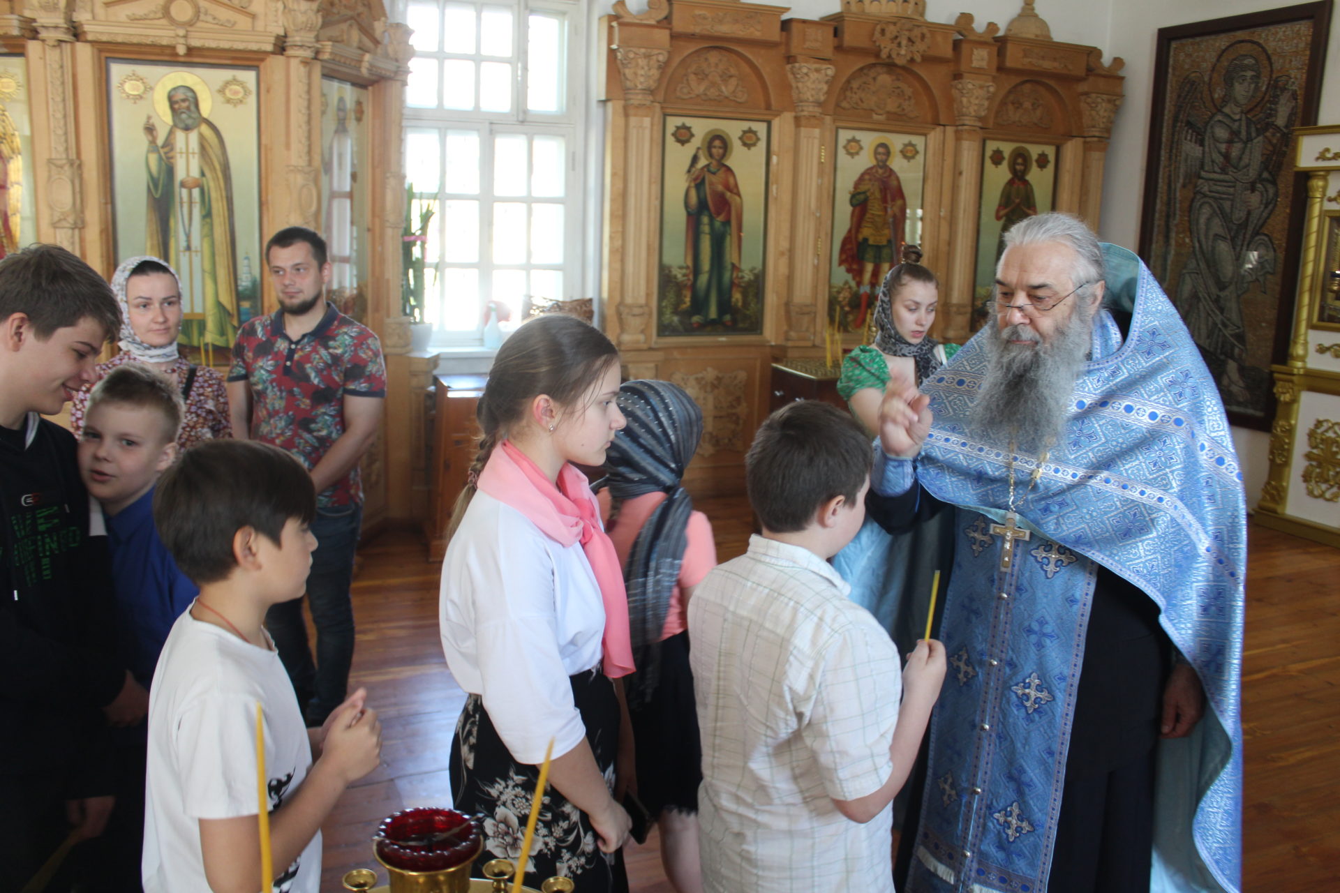 В первую очередь ученики со своим учителем Клячиной Татьяной Ивановной  вошли в Спасский храм  монастыря,   где был совершен молебен. Дети участвовали  в песнопениях молебна. По завершении молебного пения иеросхимонах Кукша  благословил паломников и пожелал всем здравия и благоденствия. Дети подали записки, поставили свечи , приложились к главной святыни храма  иконе Спаса Нерукотворного и другим святыням храма, помолились о самом сокровенном.