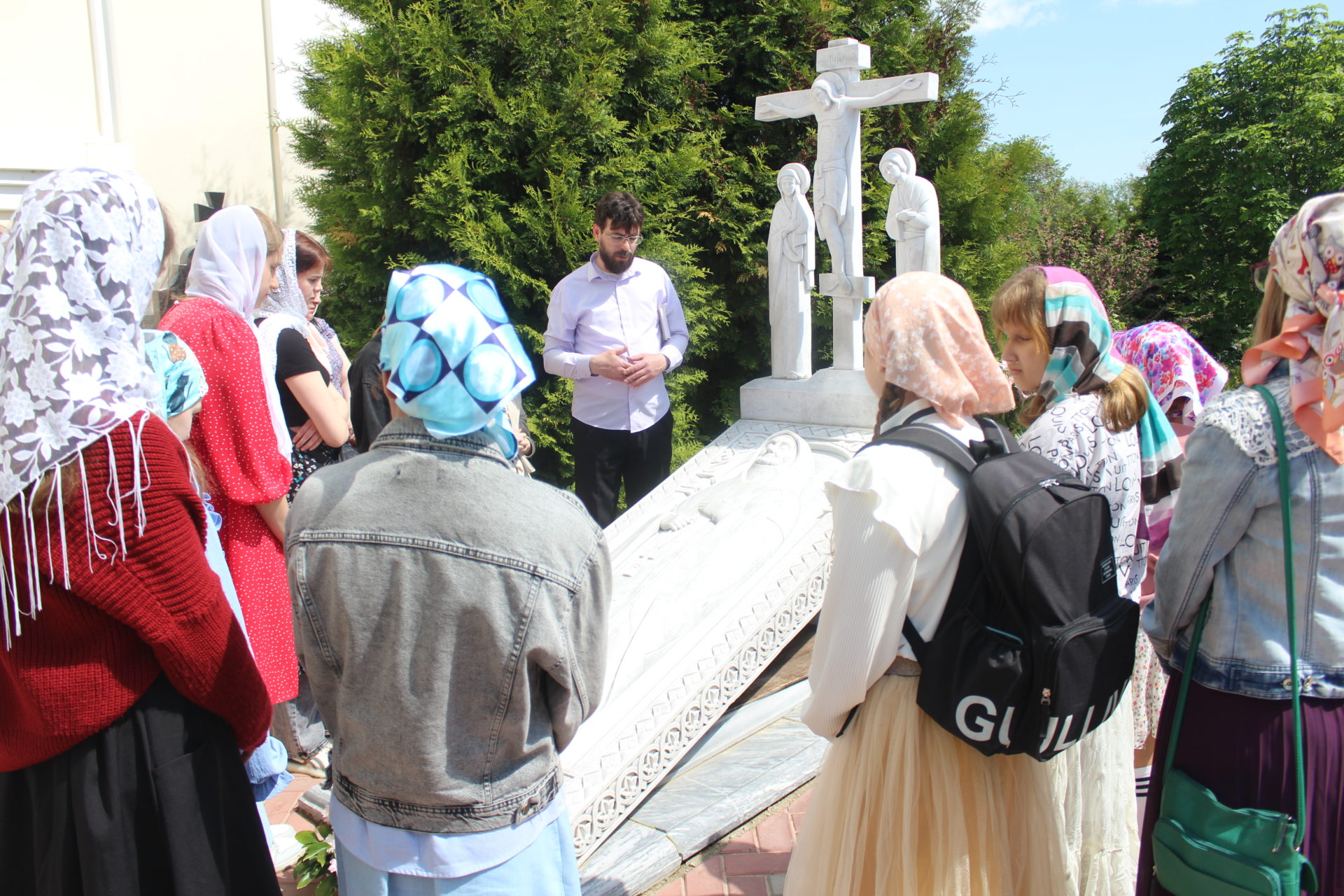 Затем началась экскурсия, в ходе которой экскурсовод Александр рассказал об истории создания монастыря, о его восстановлении и о значении схимонахини Сепфоры в организации новой истории монастыря