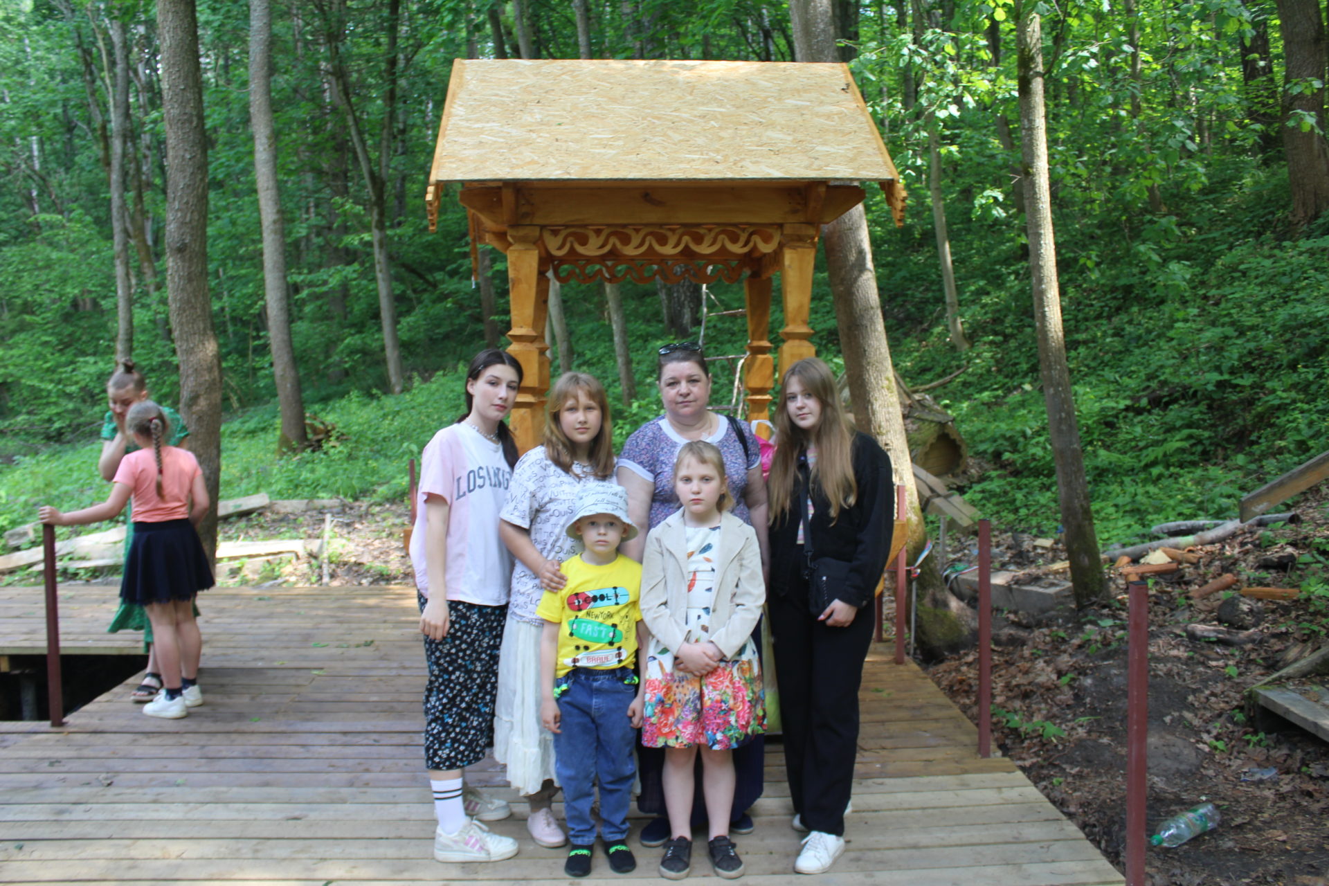 На подъезде к монастырю дети увидели памятник  преподобному  Кукше — Просветителю вятичей, проповедовавшего христианскую веру среди язычников-вятичей. Войдя на территорию монастыря, перед  паломниками открылся завораживающий пейзаж   монастыря  в лучах восходящего солнца.  Господь подарил нам чудесный солнечный день.