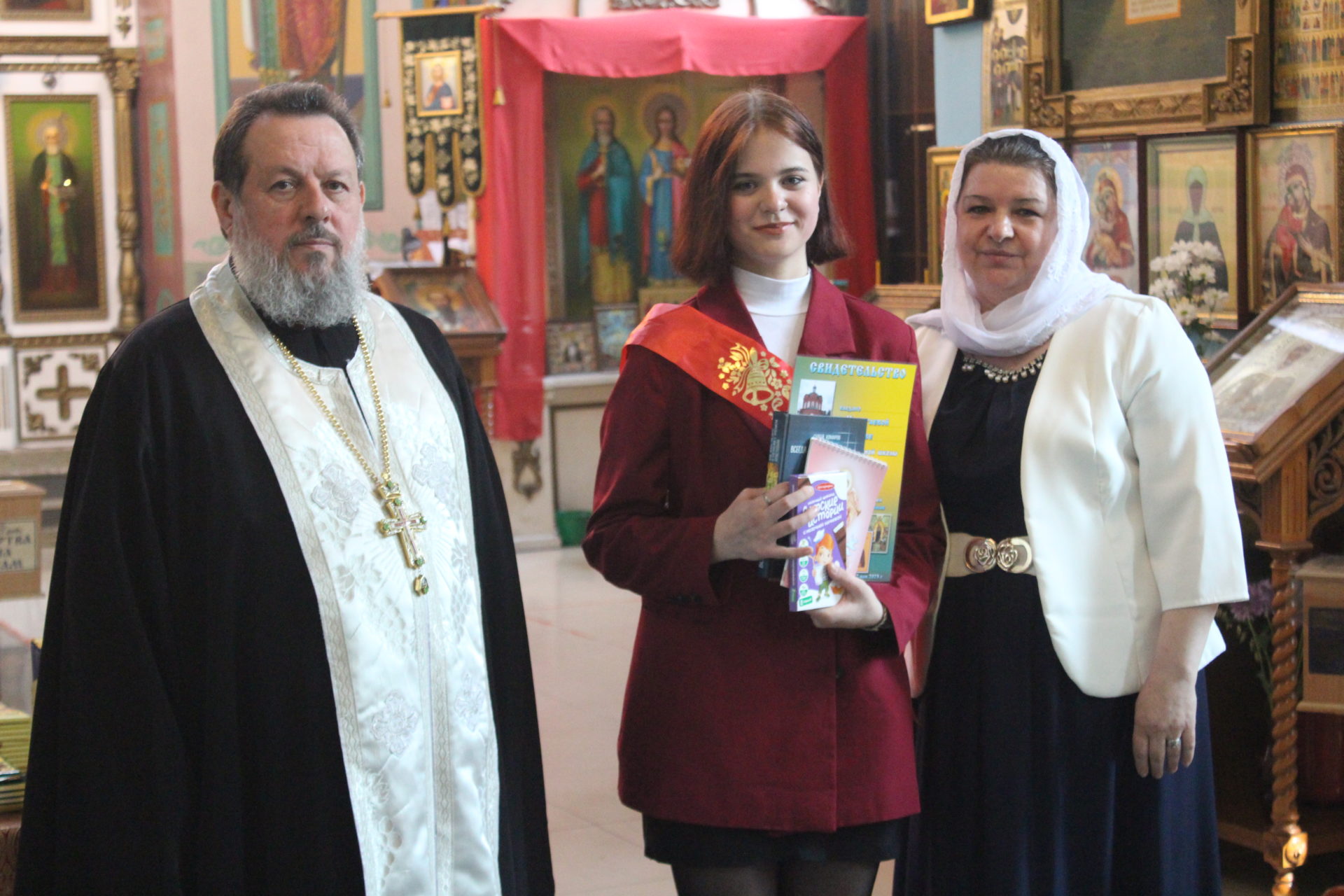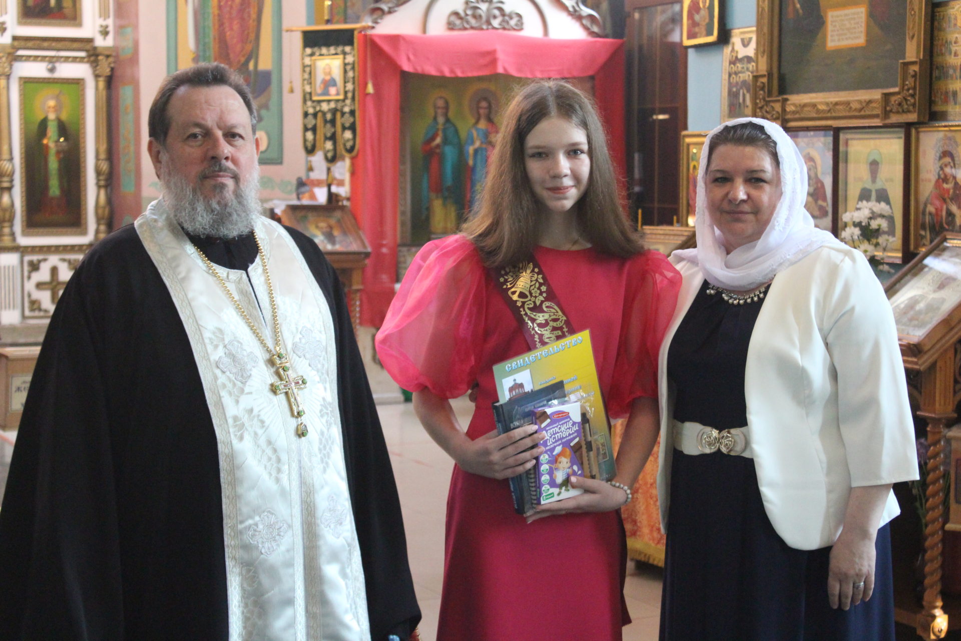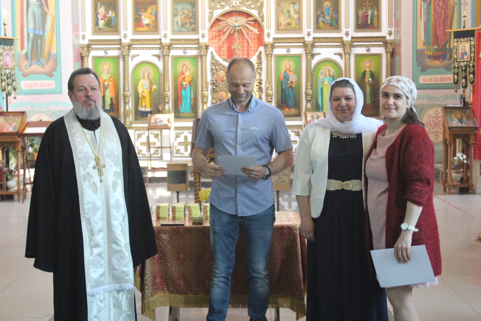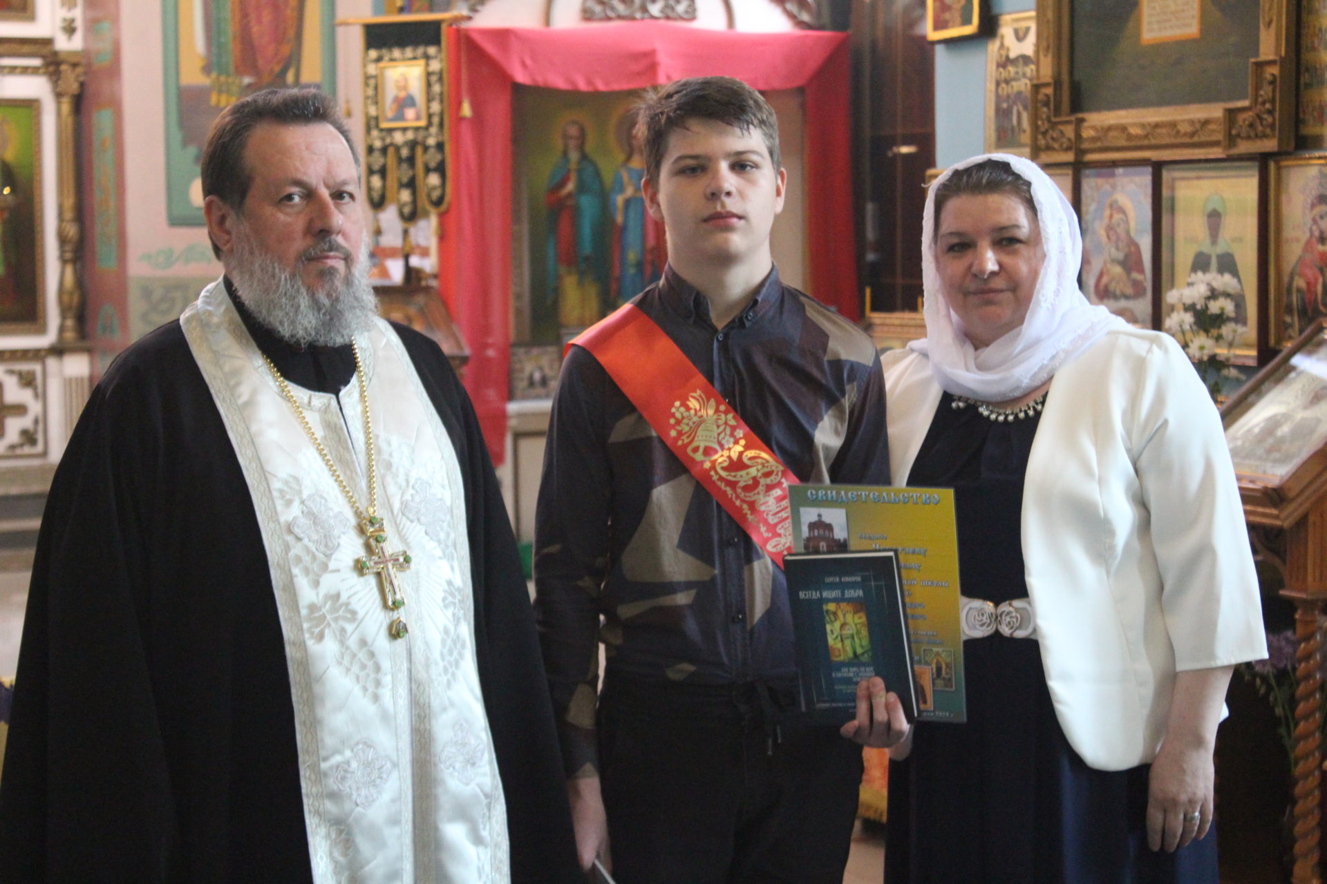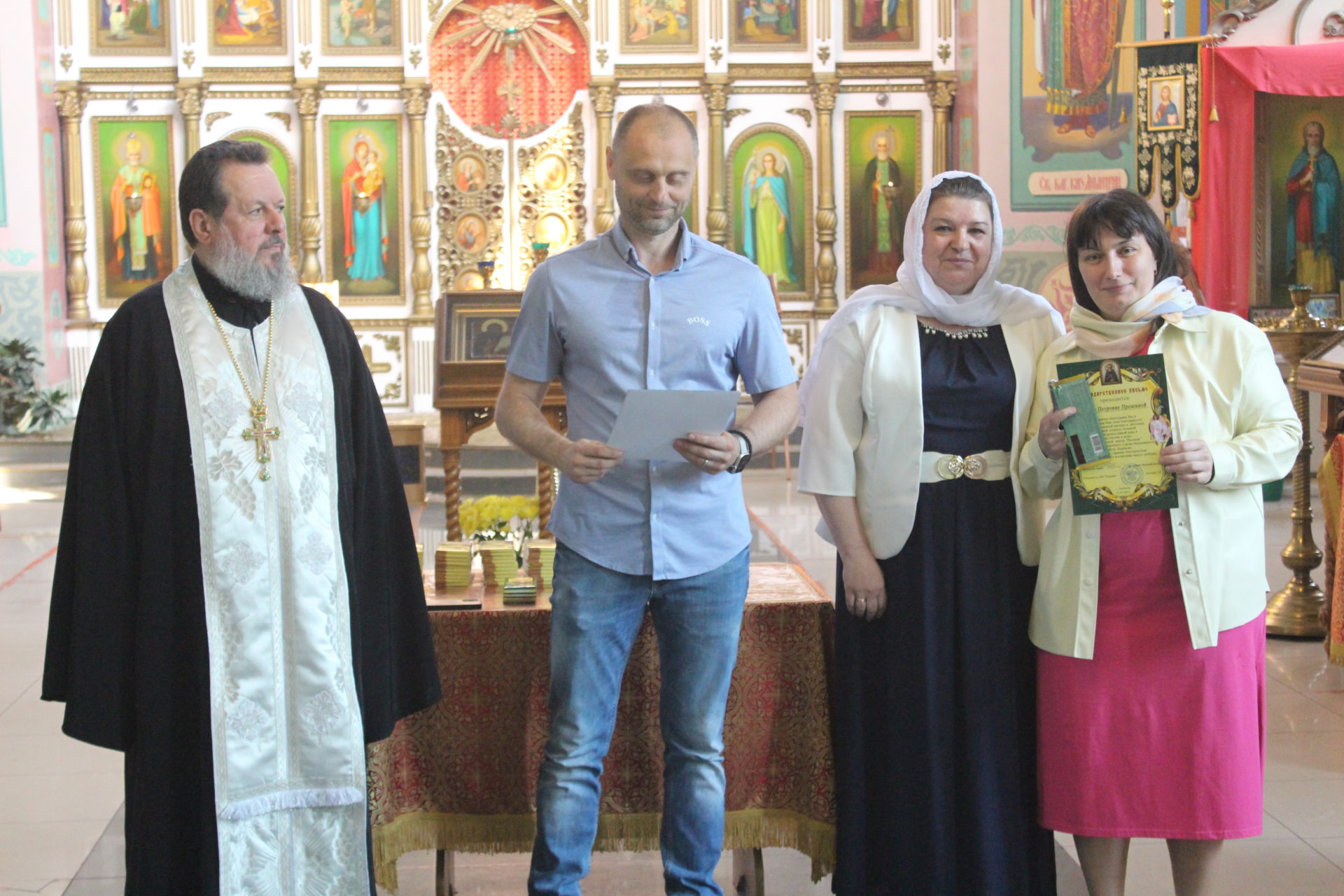 Отец Василий, поздравляя выпускников, пожелал им благословения Божиего, успешной сдачи экзаменов, счастья и всегда оставаться верующими людьми и посещать храм. Алексей Владимирович Моисеенков поблагодарил всех за удивительный праздник в Воскресной школе и сказал о том, что эти ребята, находясь под Божией защитой, могут многого добиться в жизни, а выпускникам пожелал реализовать свои мечты и быть достойными гражданами нашей страны. Торжественной минутой праздника стало вручение свидетельств об окончании Воскресной школы. Вместе с добрыми напутствиями ребята получили сладкие  угощения и сувениры. Родителям выпускников настоятелем храма были вручены благодарственные письма за достойное воспитание детей и активное участие в жизни воскресной школы.
