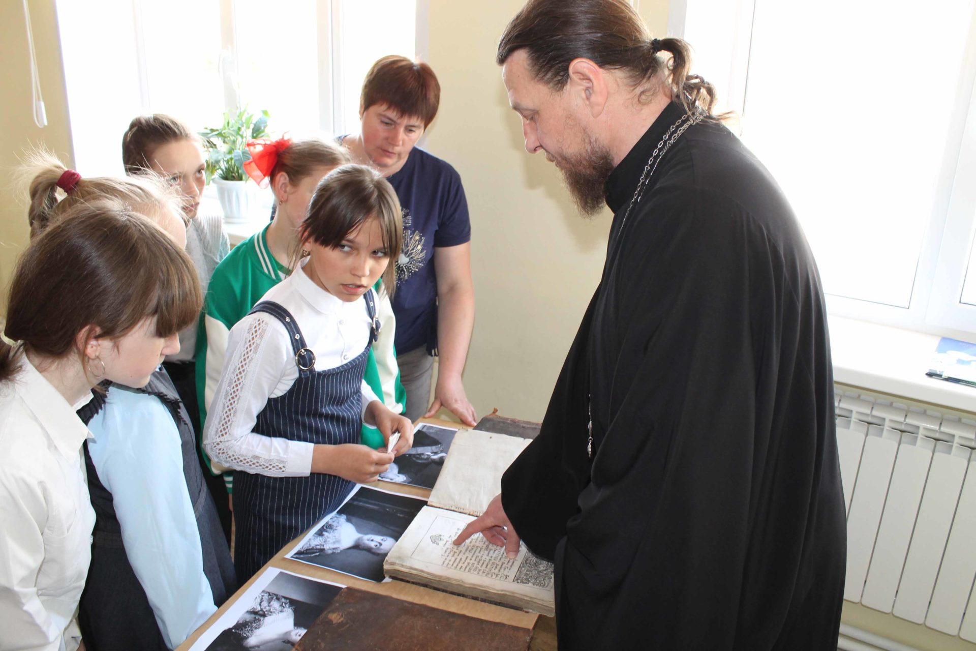 В заключительной части мероприятия, после выступления детей, отец Алексий обратился к молодым слушателям с добрым наставлением.  Затем дети смогли познакомиться со старинными  книгами  вживую, а также самостоятельно попробовать читать, писать и считать на церковнославянском языке.