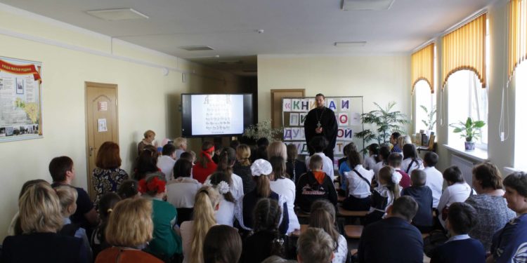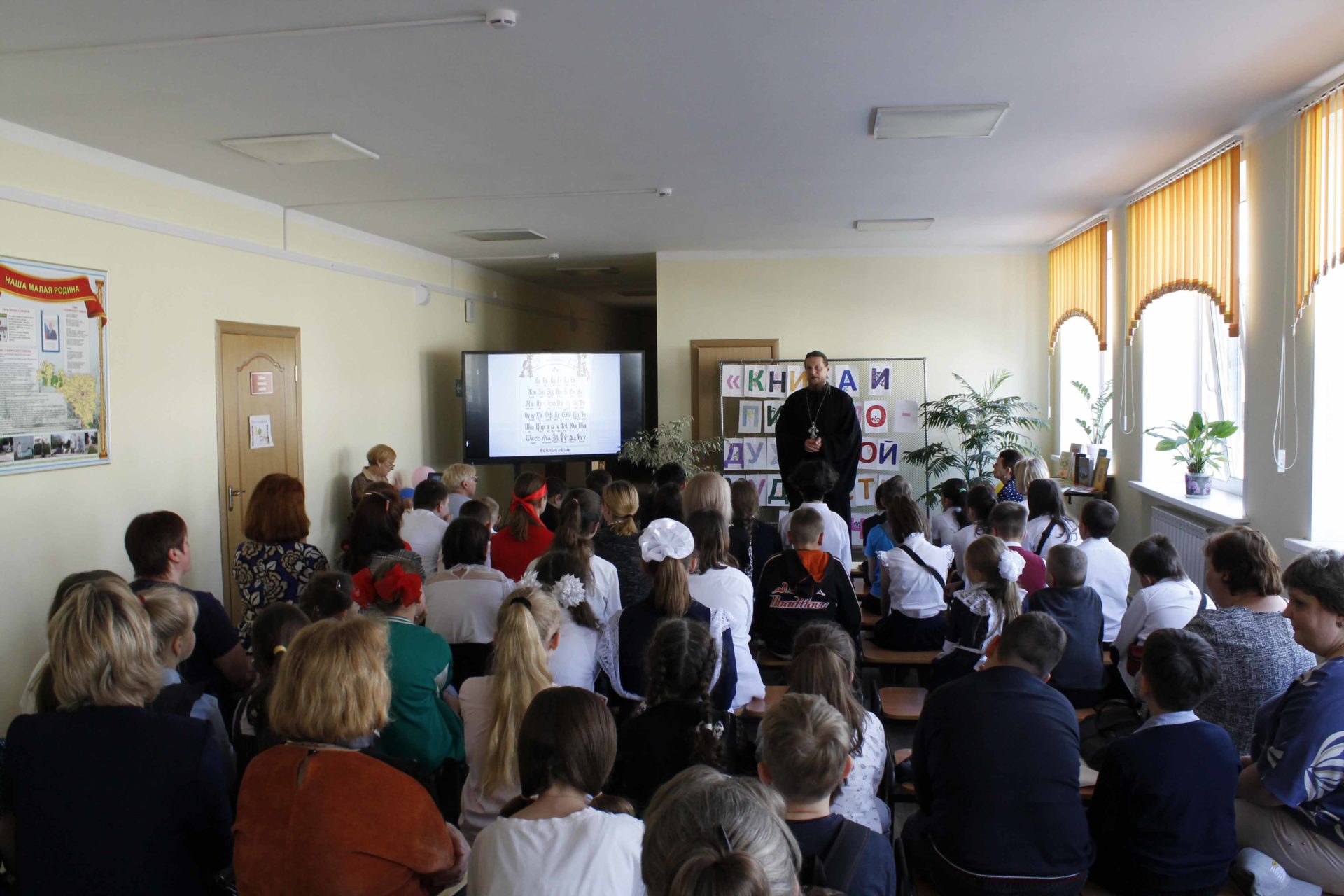 26 мая в Средней школе № 12 города Сухиничи прошло мероприятие «Славянская письменность и православная книга — духовной мудрости ключи». В нем участвовали дети со всех  школ района.  Мероприятие организовала и возглавила заведующая методическим кабинетом  Лаврова Нина Ивановна. Активное содействие в проведении открытого урока оказал протоиерей Алексий Казаков, настоятель храма в честь Смоленской иконы Божией Матери.