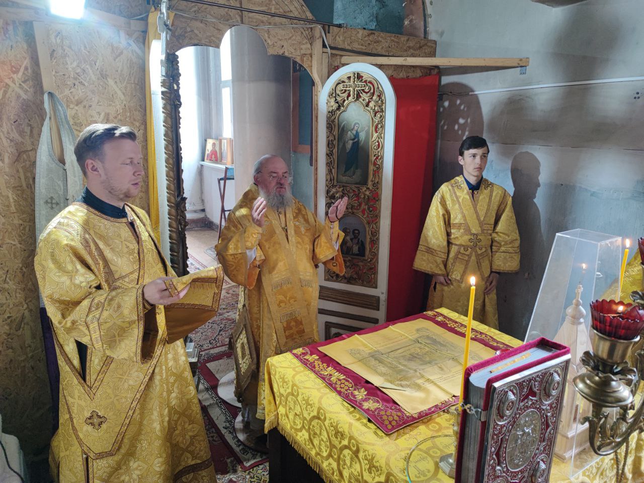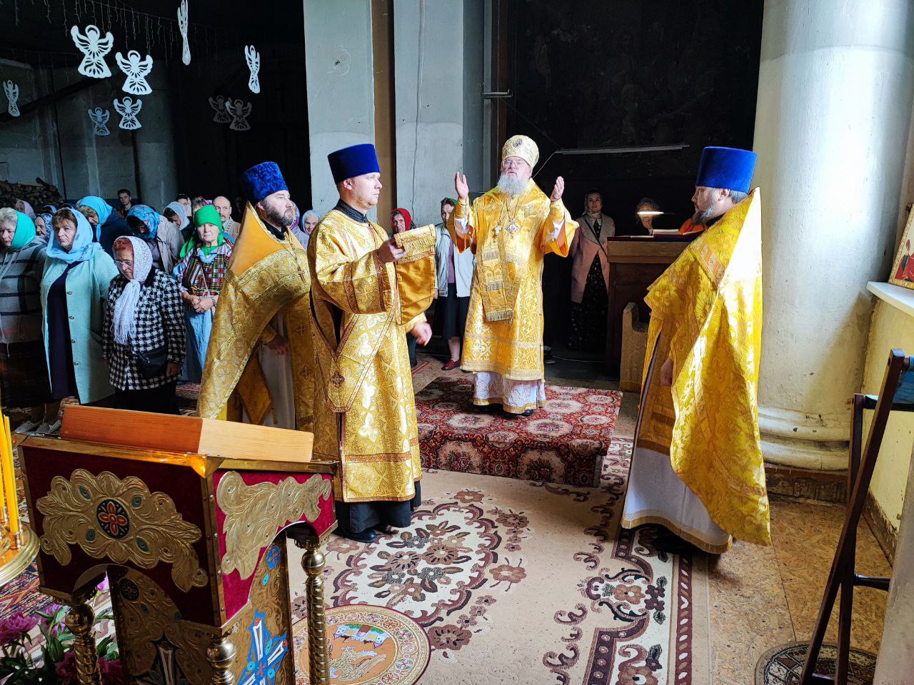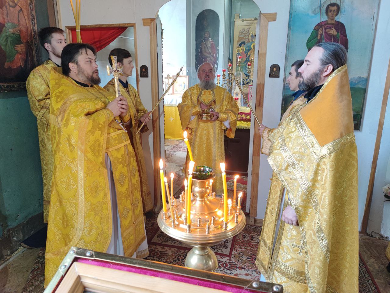 Архипастырю сослужили: настоятель прихода протоиерей Максим Садовников, протоиерей Антоний Хатунцев и диакон Евгений Ковригин.