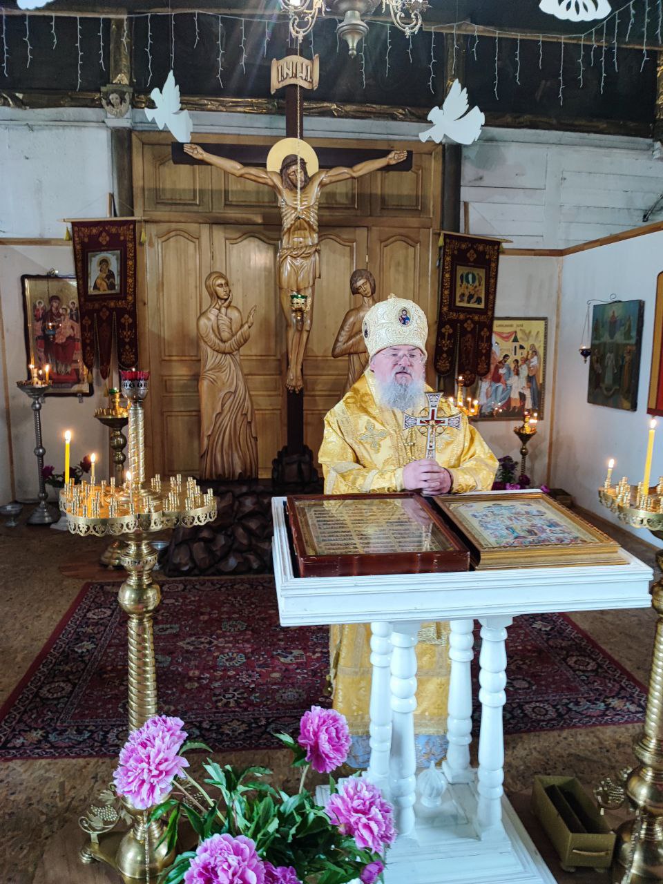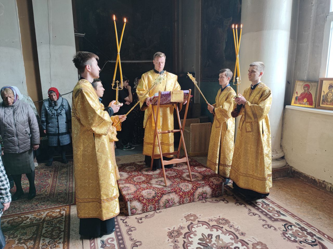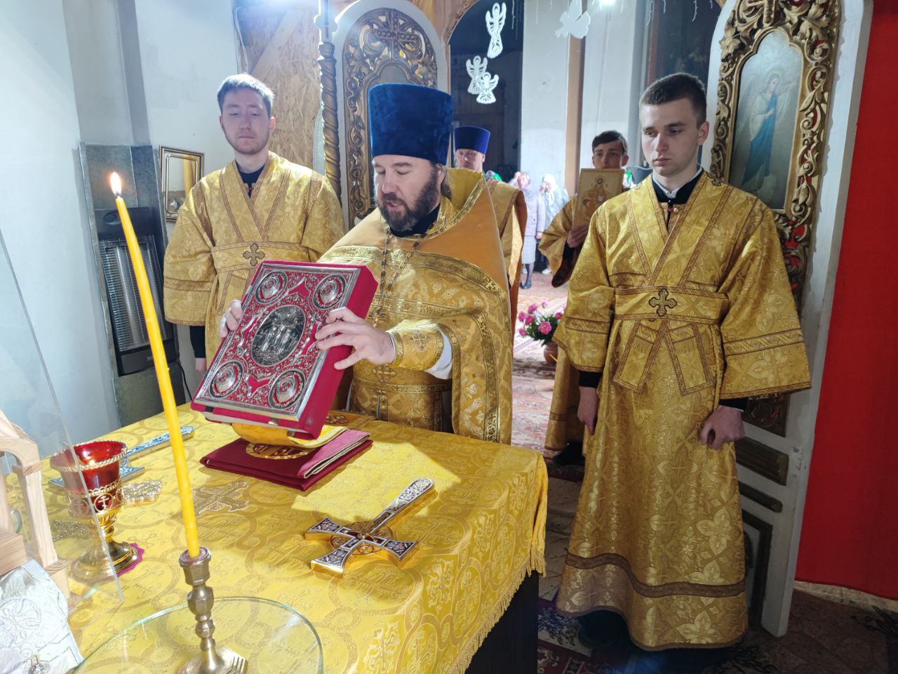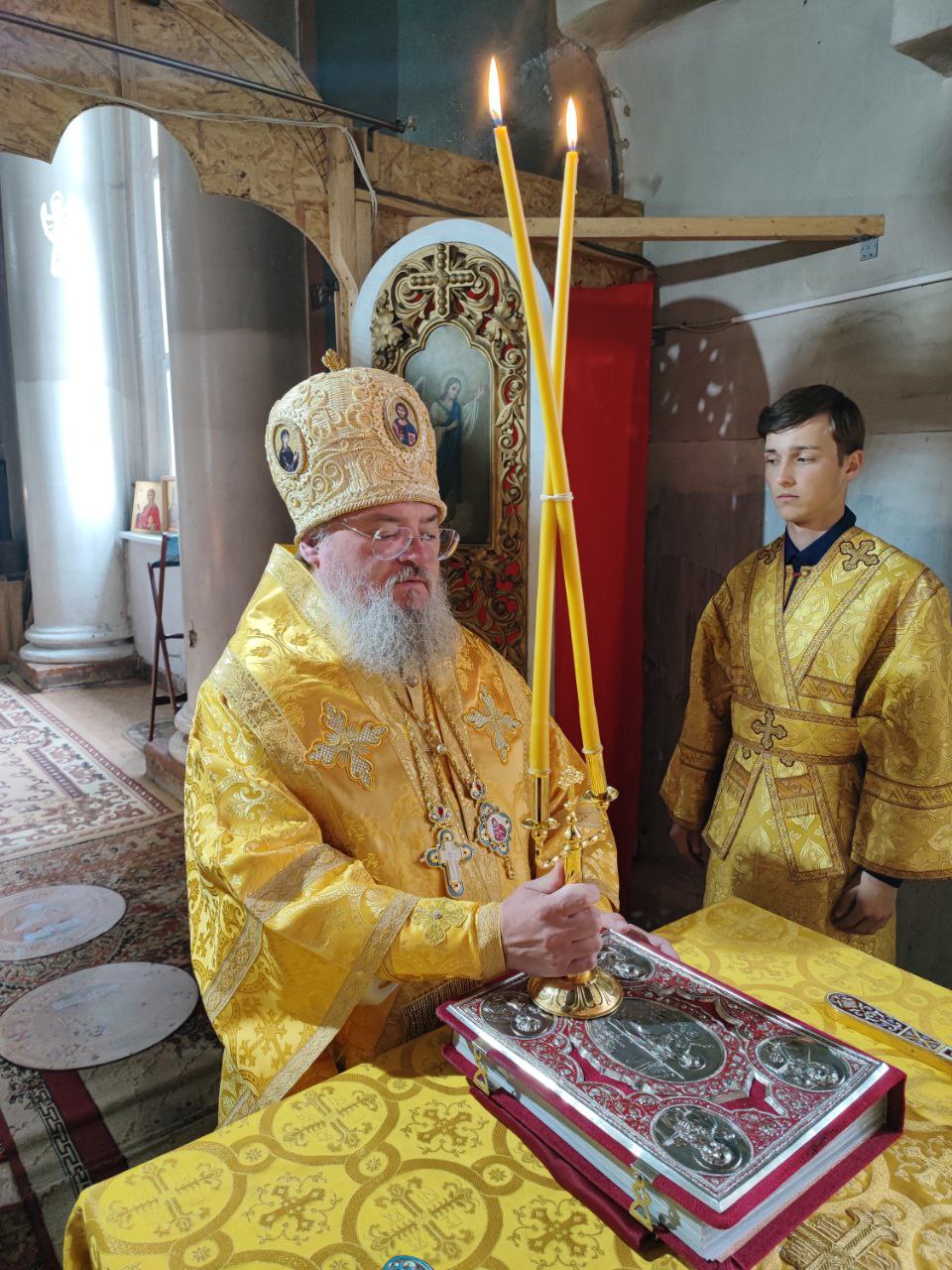 Архипастырю сослужили: настоятель прихода протоиерей Максим Садовников, протоиерей Антоний Хатунцев и диакон Евгений Ковригин.