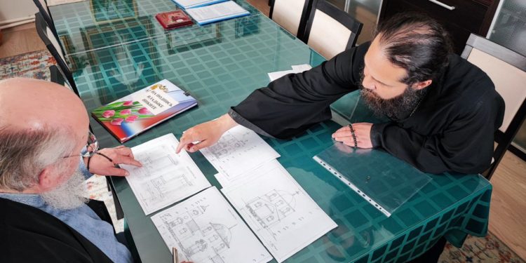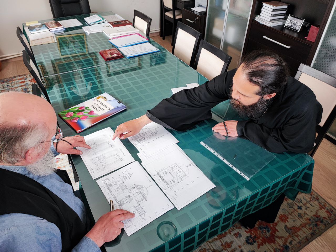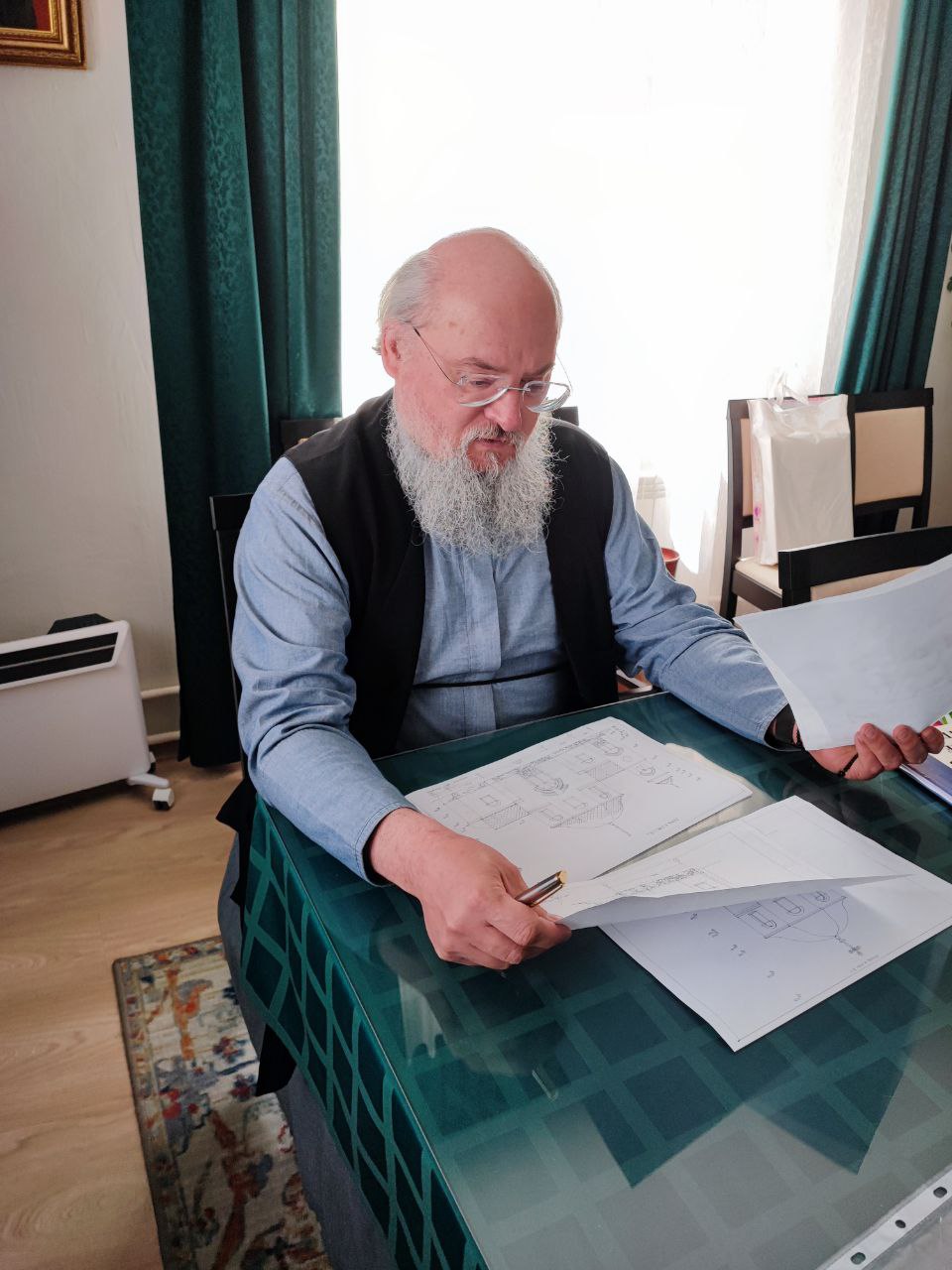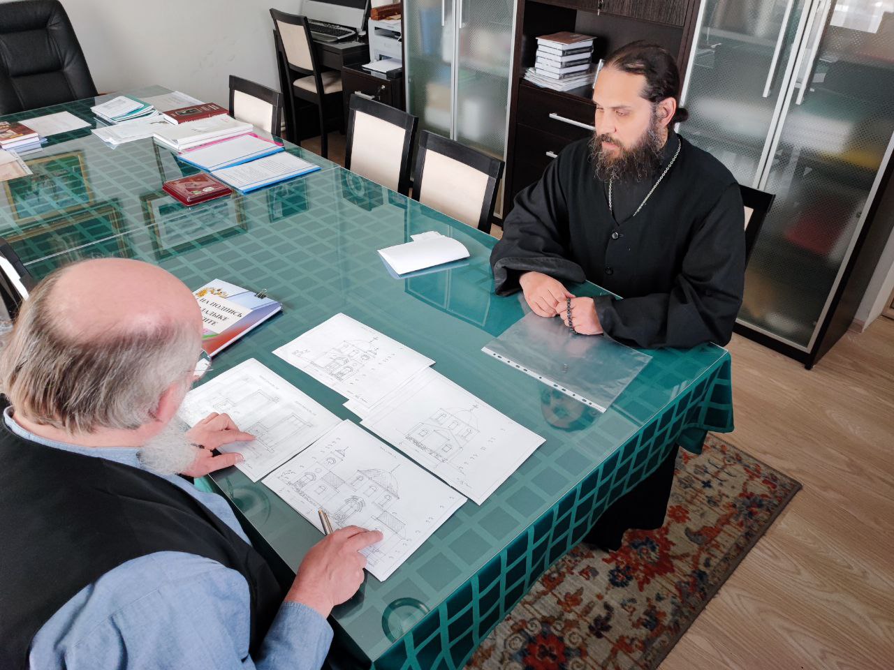 Отец Максим познакомил владыку с эскизами храма  с его будущем устройством. Обсуждались сроки освящения закладки нового Дома Божия.