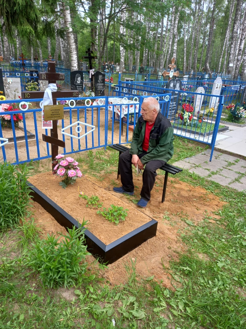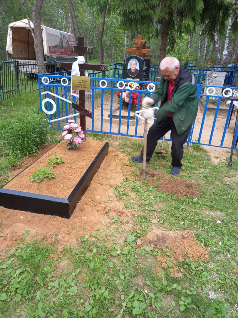 Добровольные помощники Андрей с Пашей установили гробницу и скамейку подопечной, одинокой бабуле.