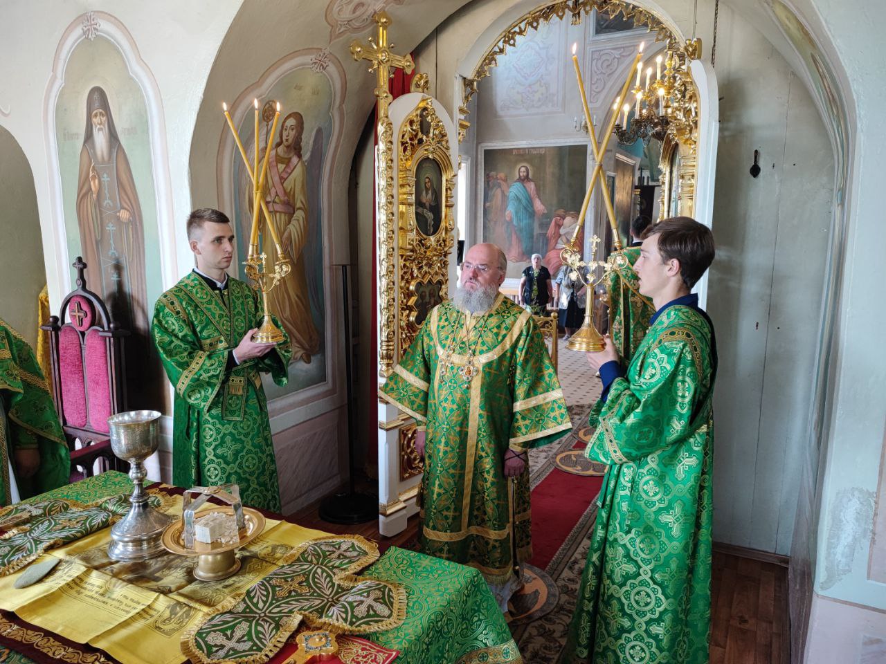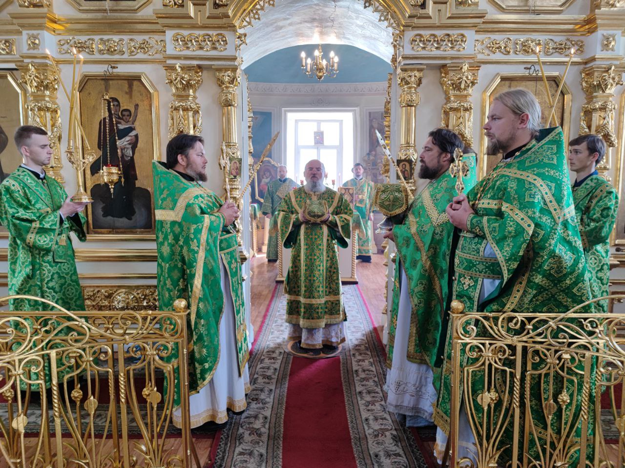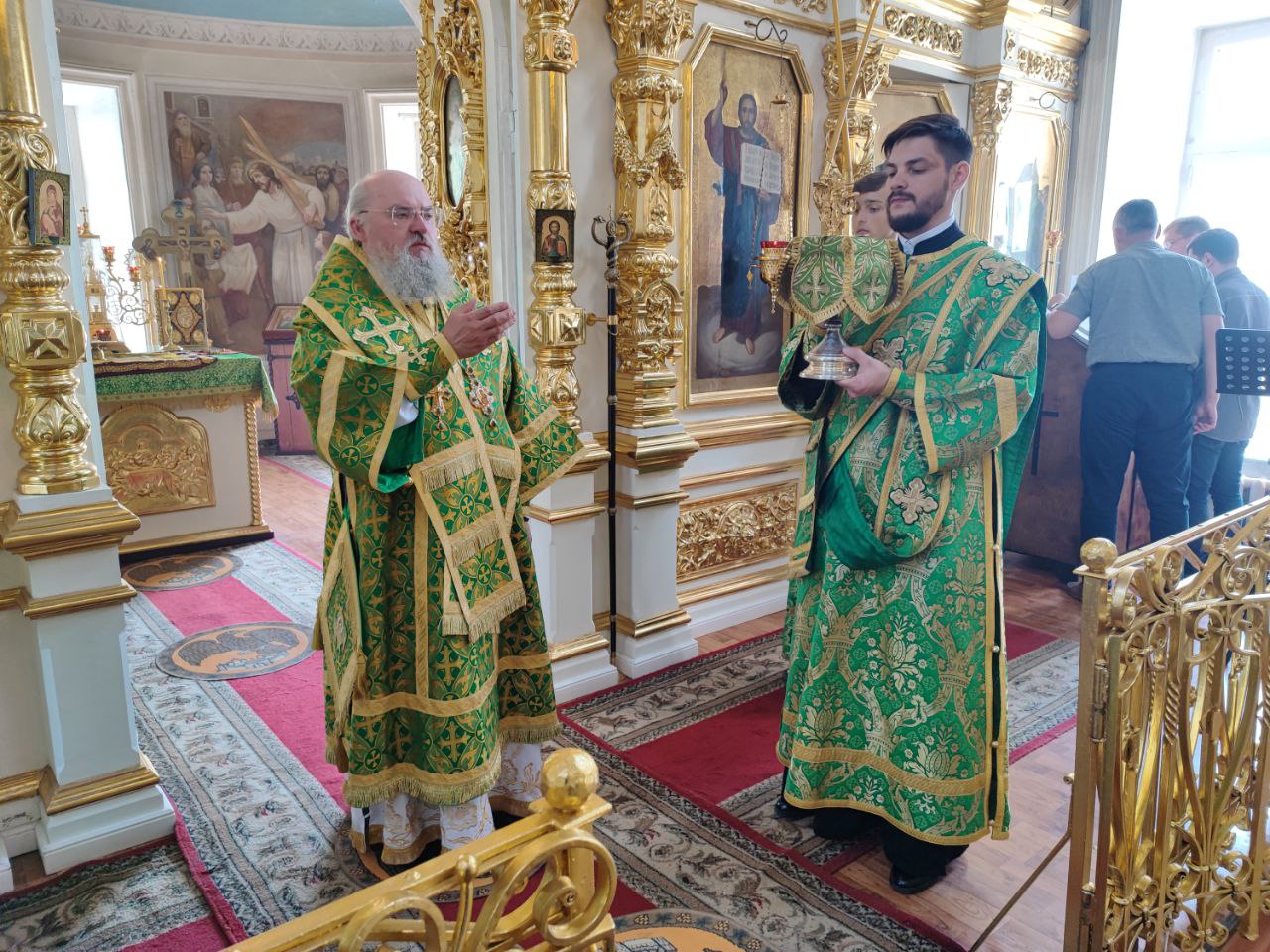 Его преосвященству сослужили: секретарь епархии, благочинный округа протоиерей Владимир Бахаев, протоиерей Павел Морозов, протоиерей Антоний Хатунцев, иерей Сергий Барыкин – настоятель храма, диакон Евгений Васильев и иеродиакон Лука (Старостин).