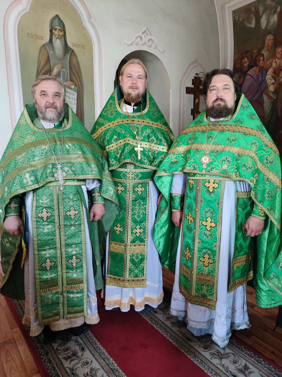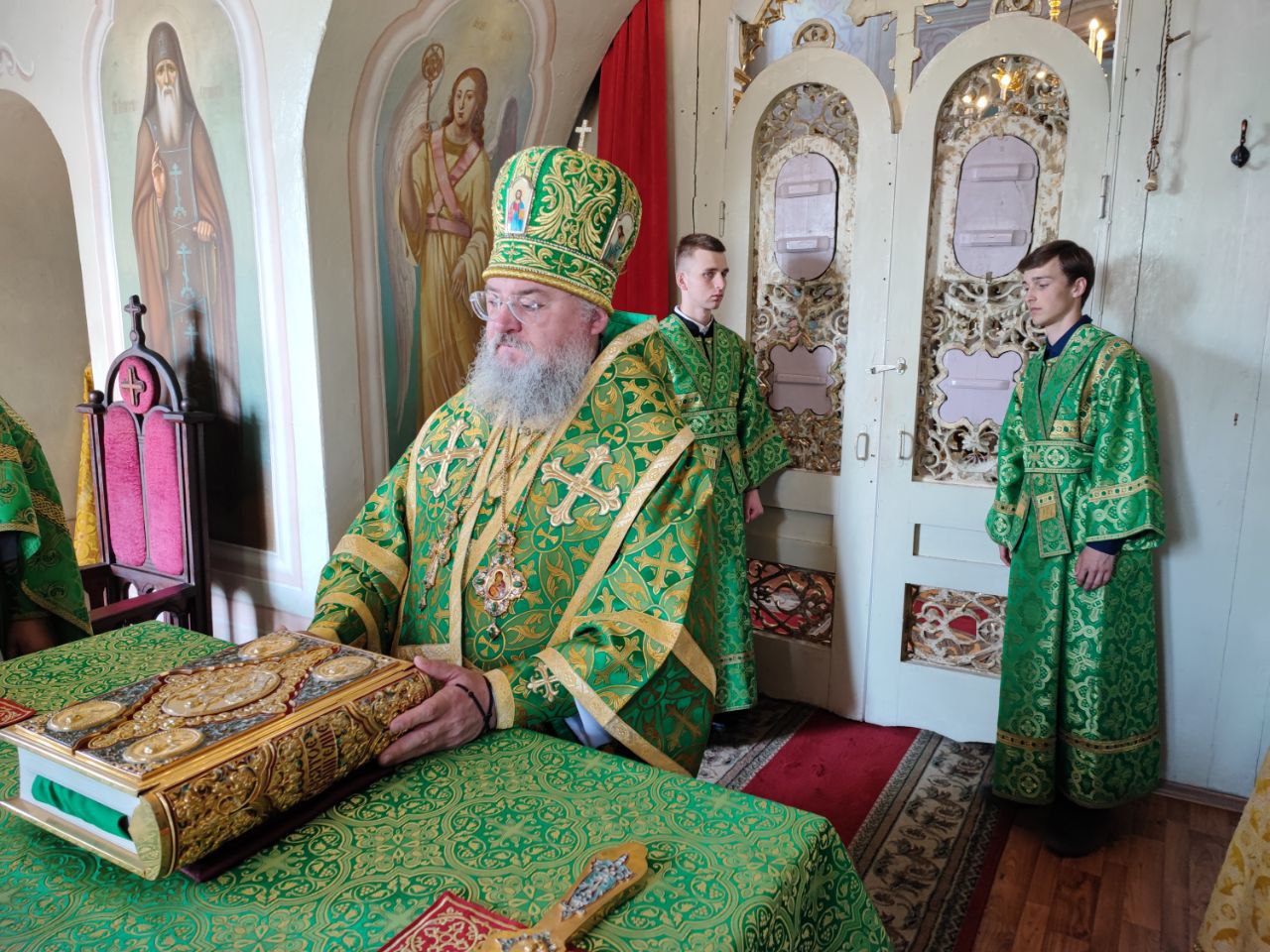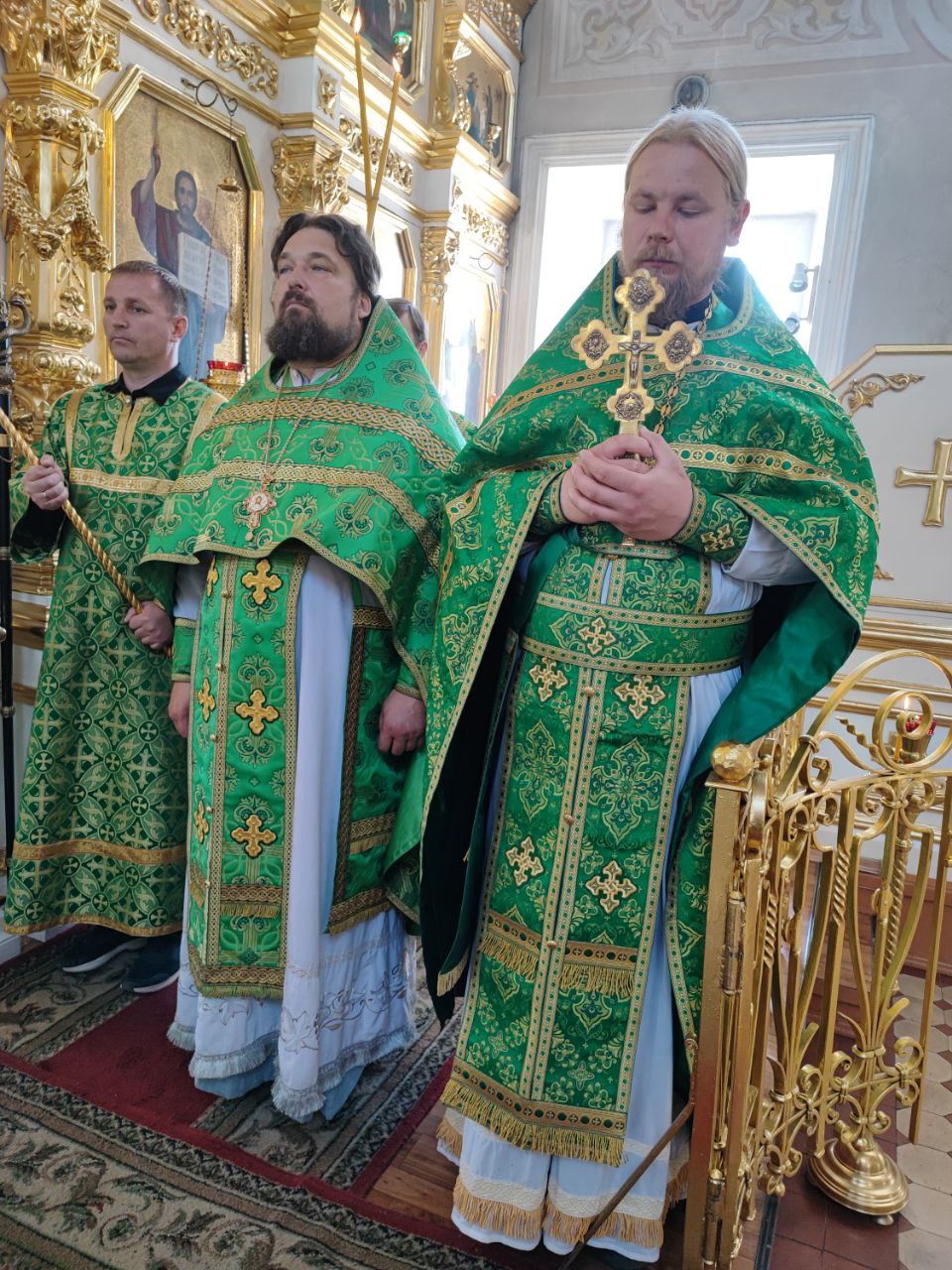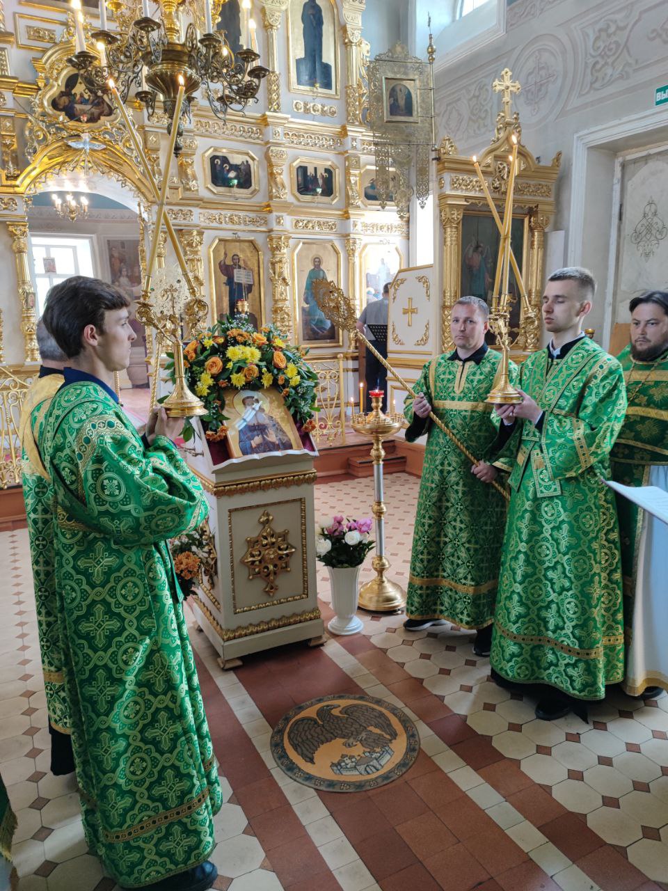 Его преосвященству сослужили: секретарь епархии, благочинный округа протоиерей Владимир Бахаев, протоиерей Павел Морозов, протоиерей Антоний Хатунцев, иерей Сергий Барыкин – настоятель храма, диакон Евгений Васильев и иеродиакон Лука (Старостин).