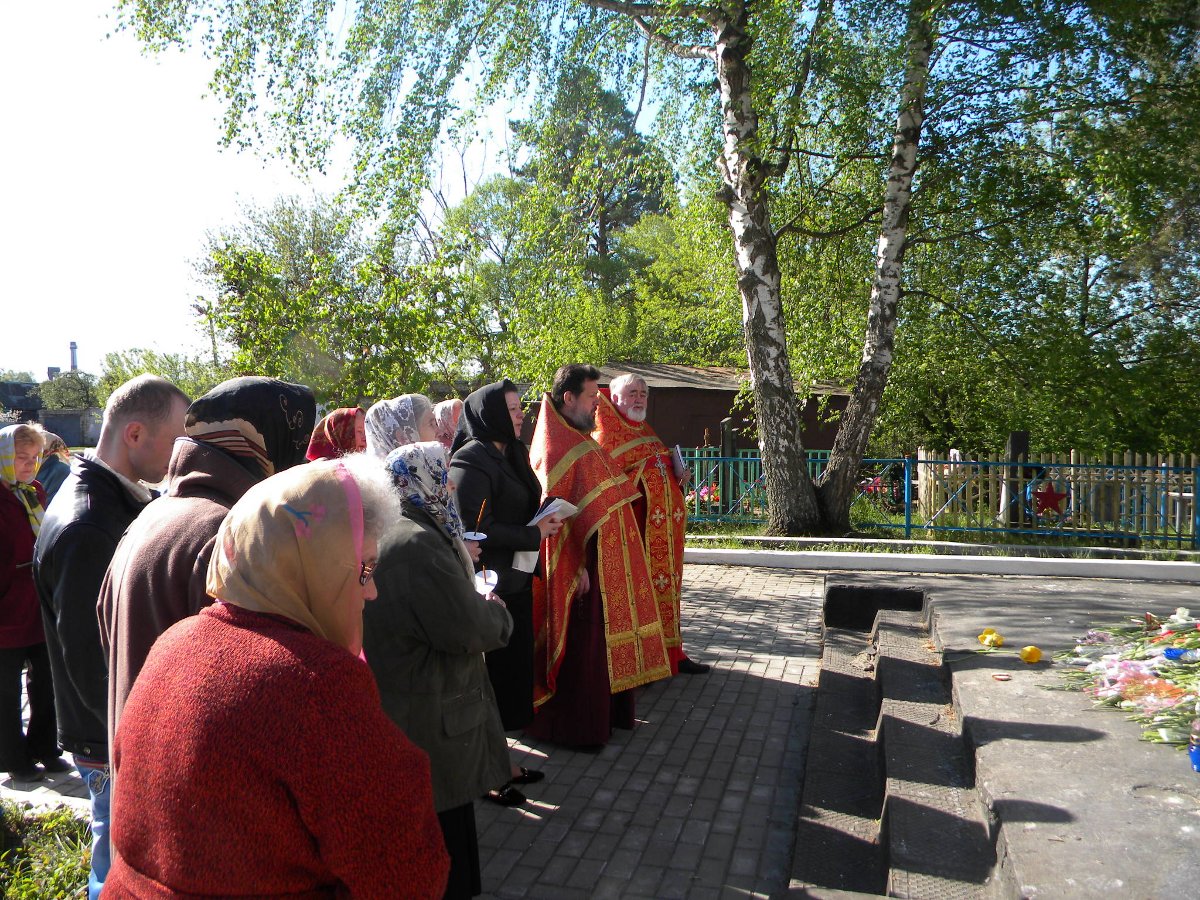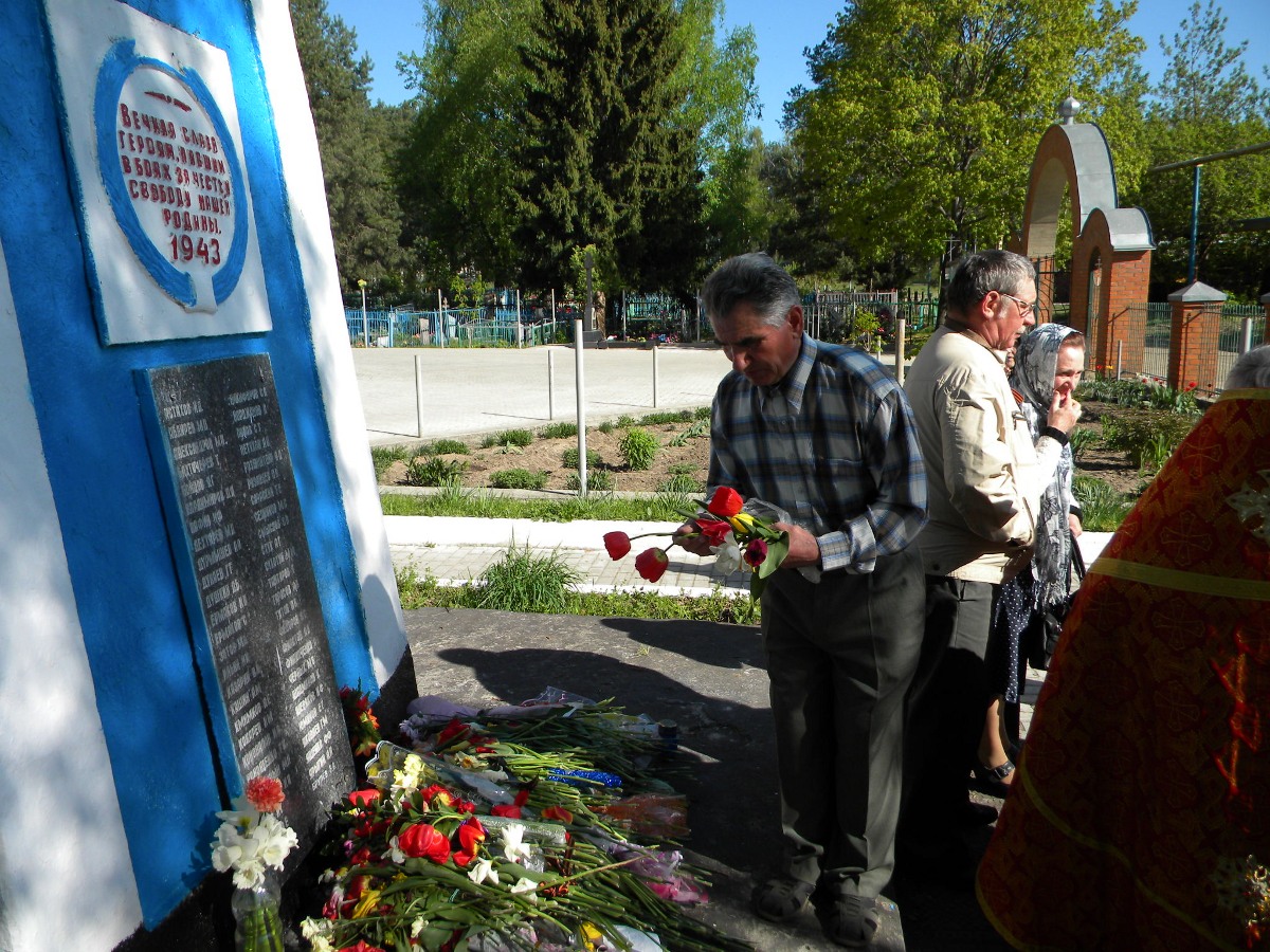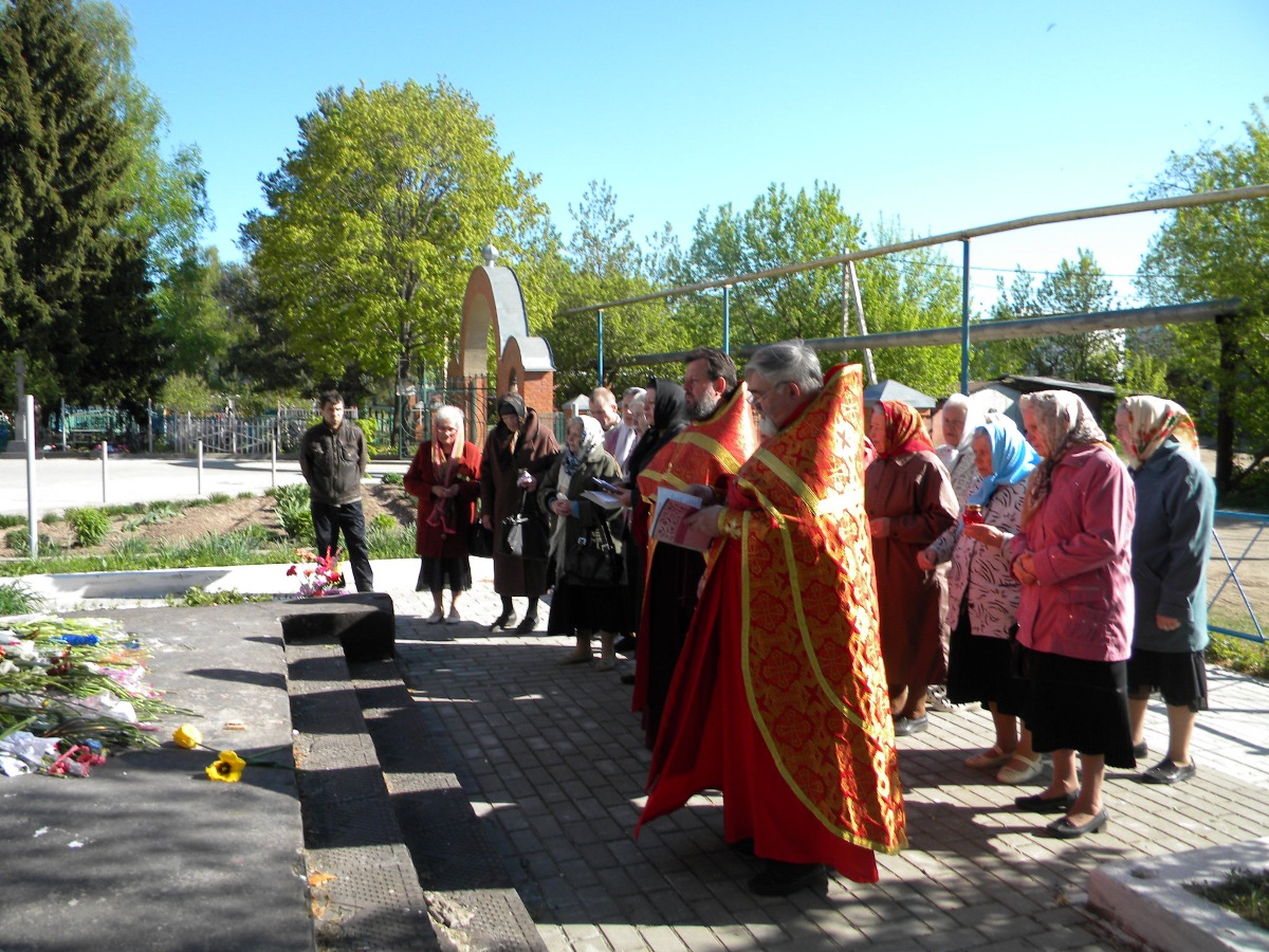 В слове к верующем настоятель храма протоиерей Василий Биляк поздравил всех с Днем Победы и призвал собраться для совместной молитвы об усопших воинах на братской могиле у стен храма. На панихиде поминались воины, которые положили свою жизнь за мир и благополучие страны и всего народа.