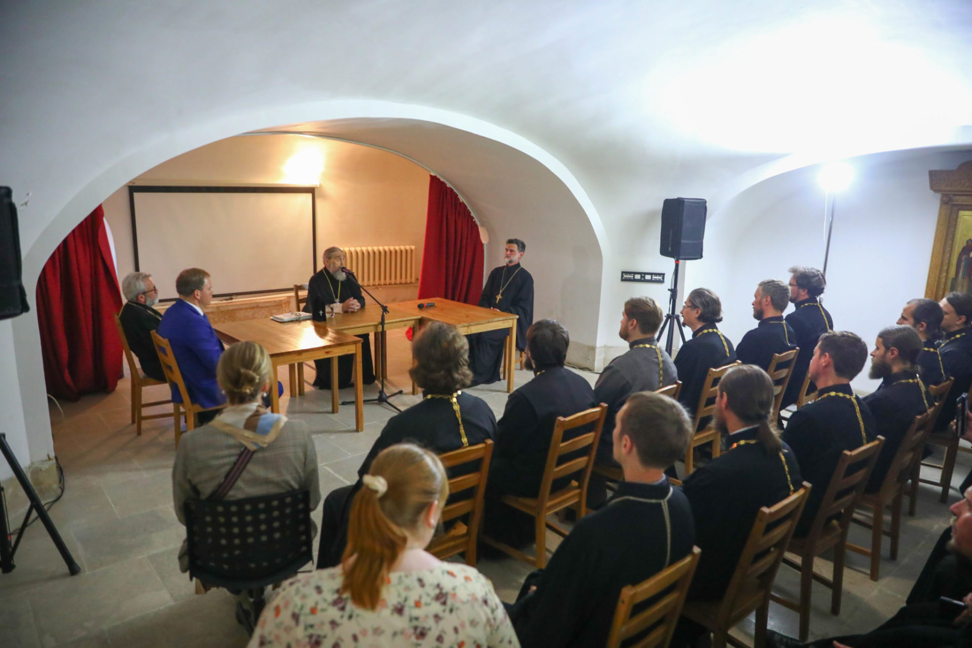 По окончании Божественной Литургии прошла встреча участников Коллегии с митрополитом Тульским и Ефремовским Алексием, а также стратегическая сессия «Направления молодежной политики. Соработничество Церкви и государства».